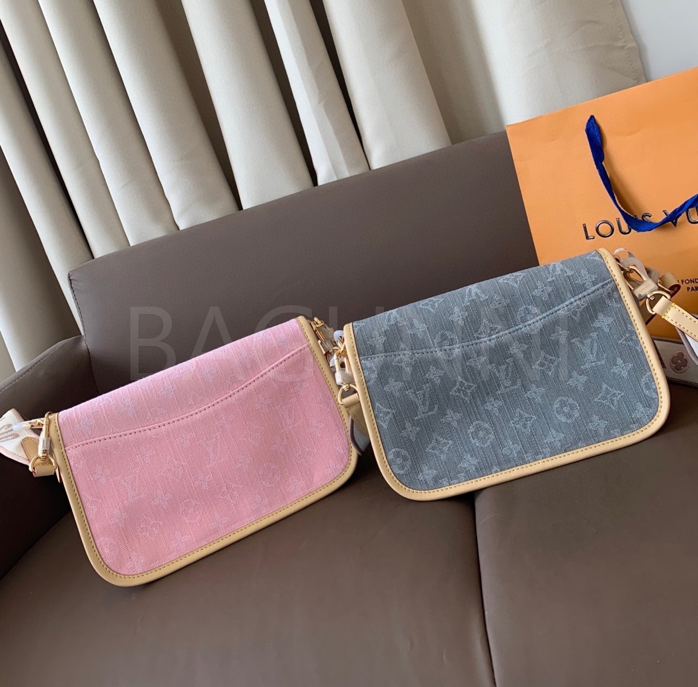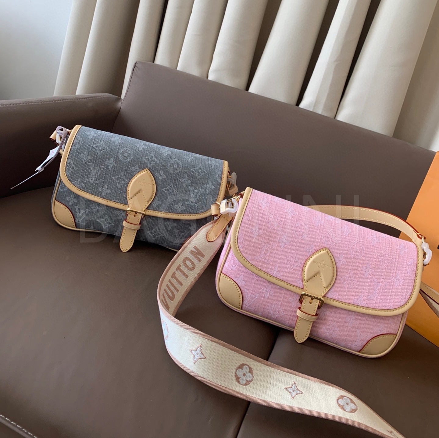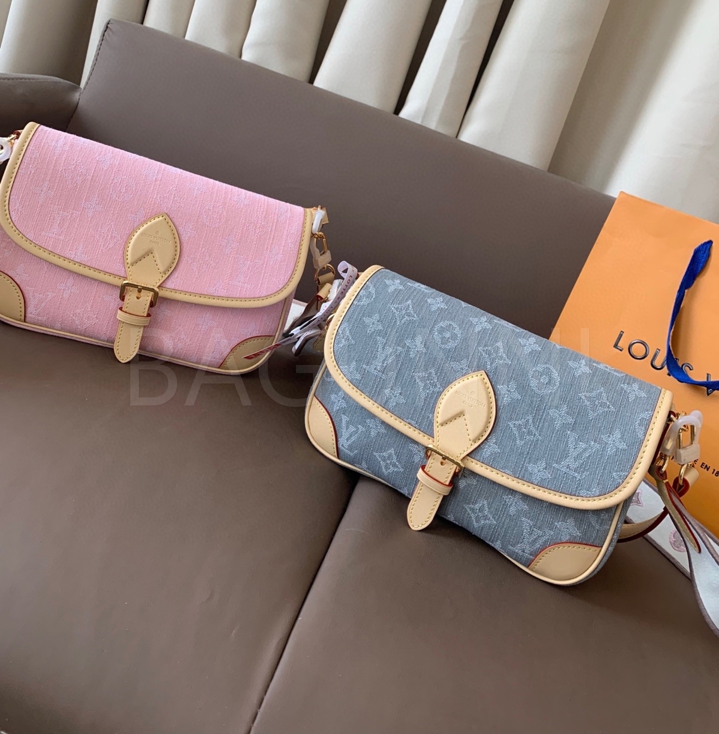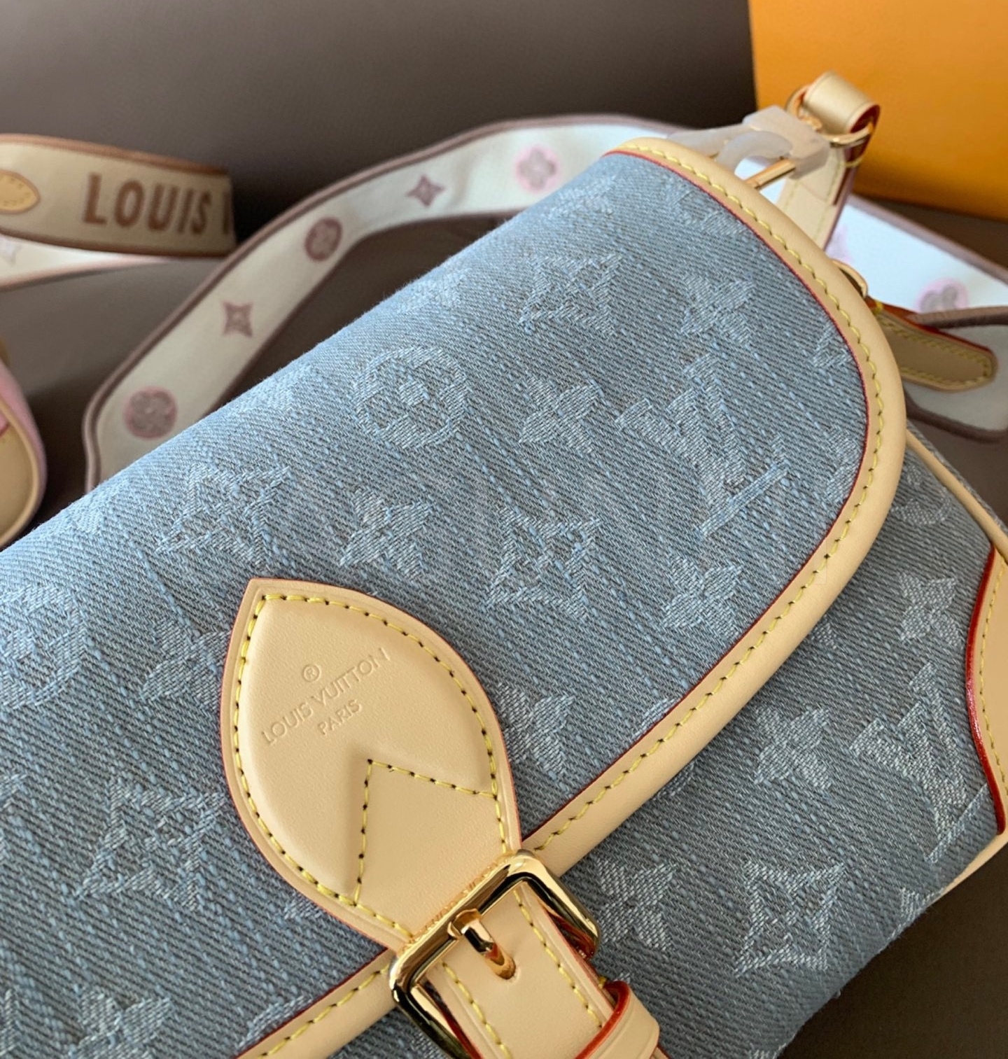 데님 특유의 캐주얼한 무드가 돋보이는 루이비통 데님 다이앤 숄더백입니다.
