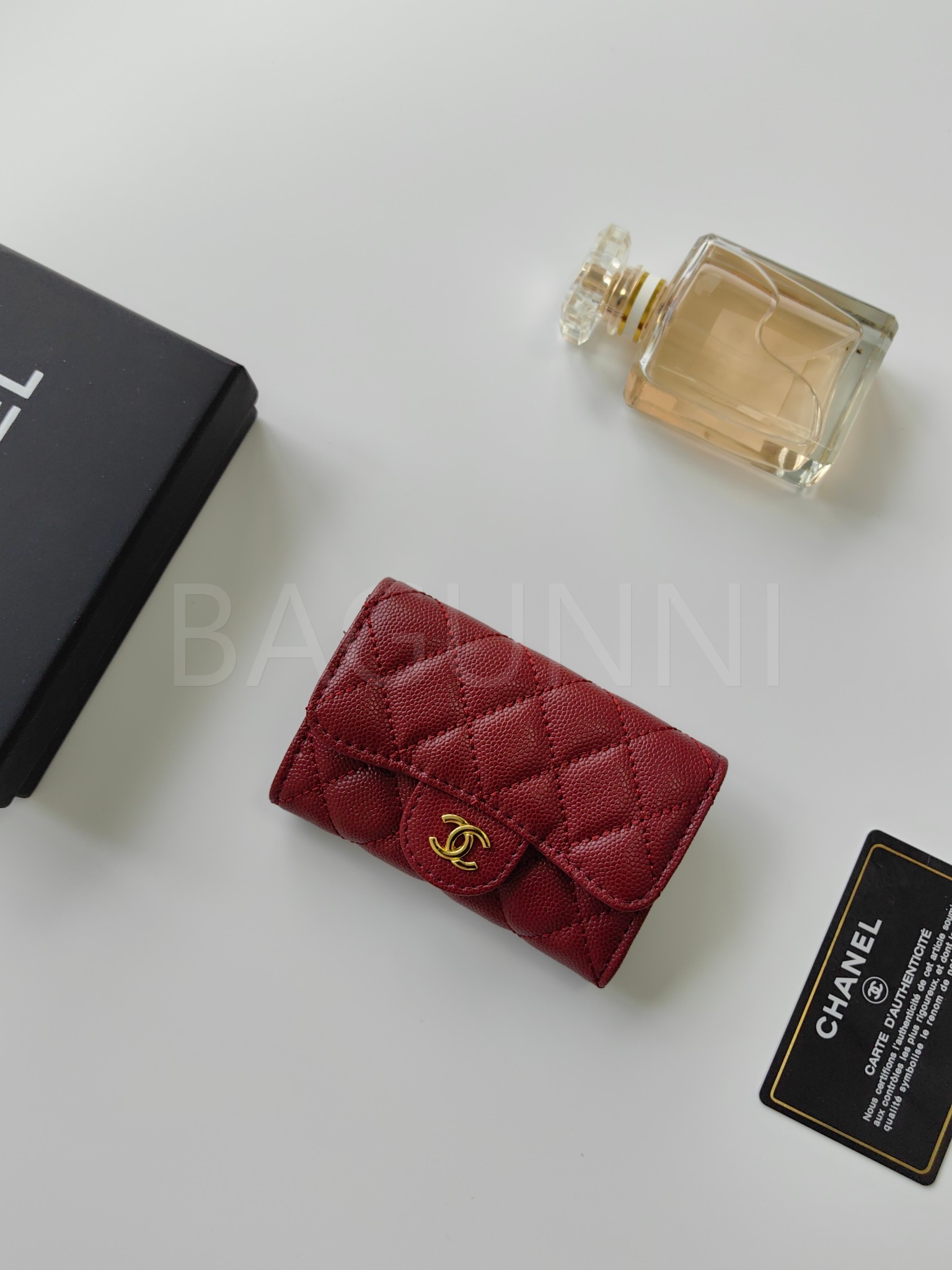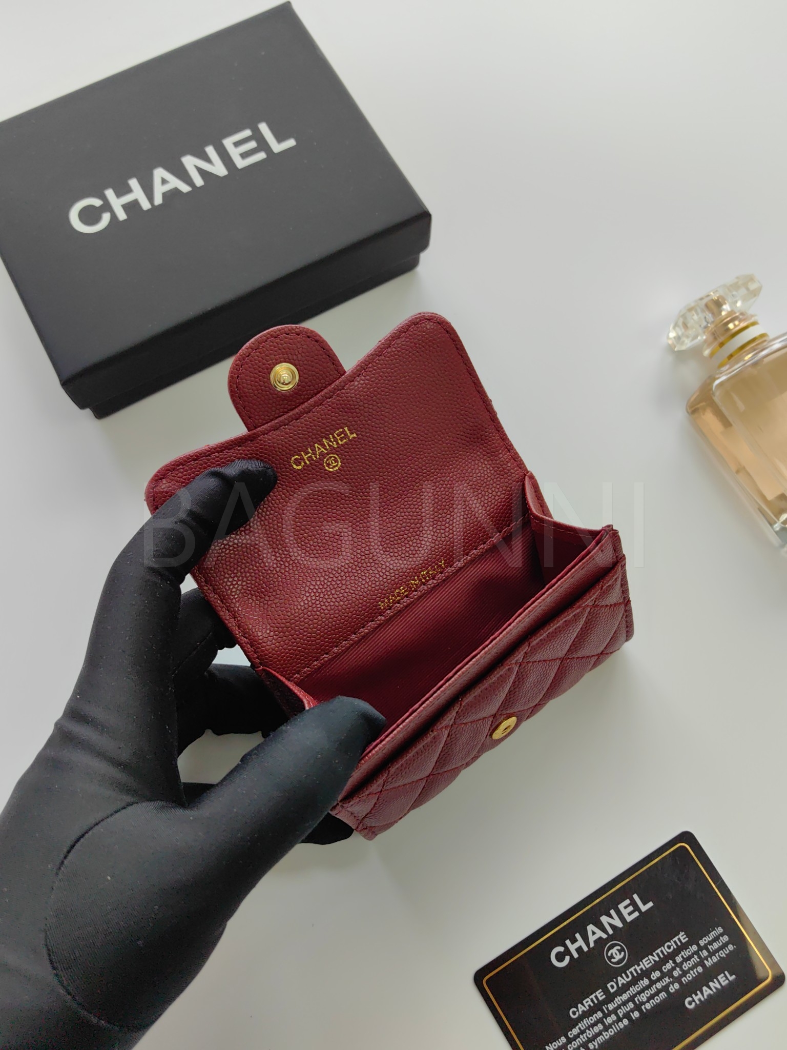 카프스킨의 질감이 돋보이는 샤넬 클래식 플랩 카드지갑입니다.