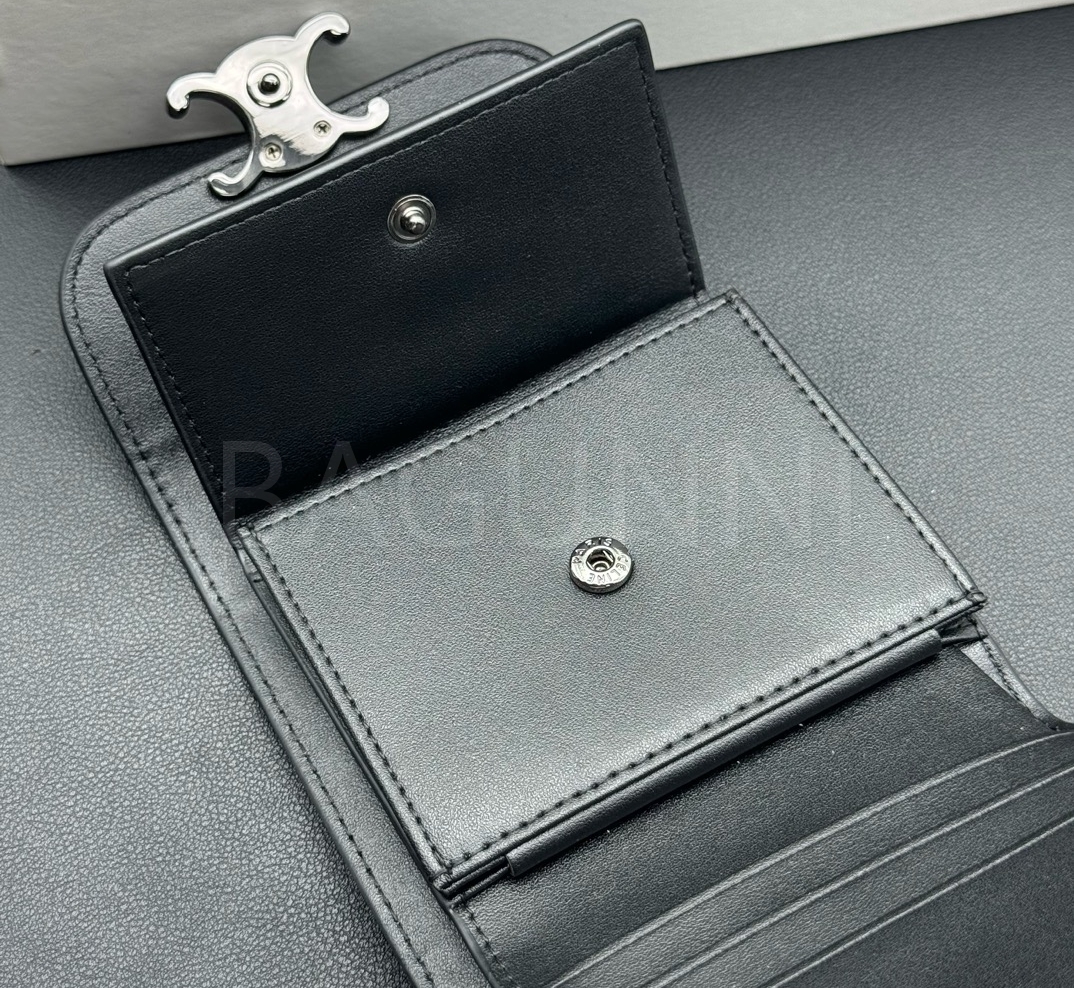 카프스킨의 질감이 돋보이는 셀린느 트리폴드 반지갑입니다.
