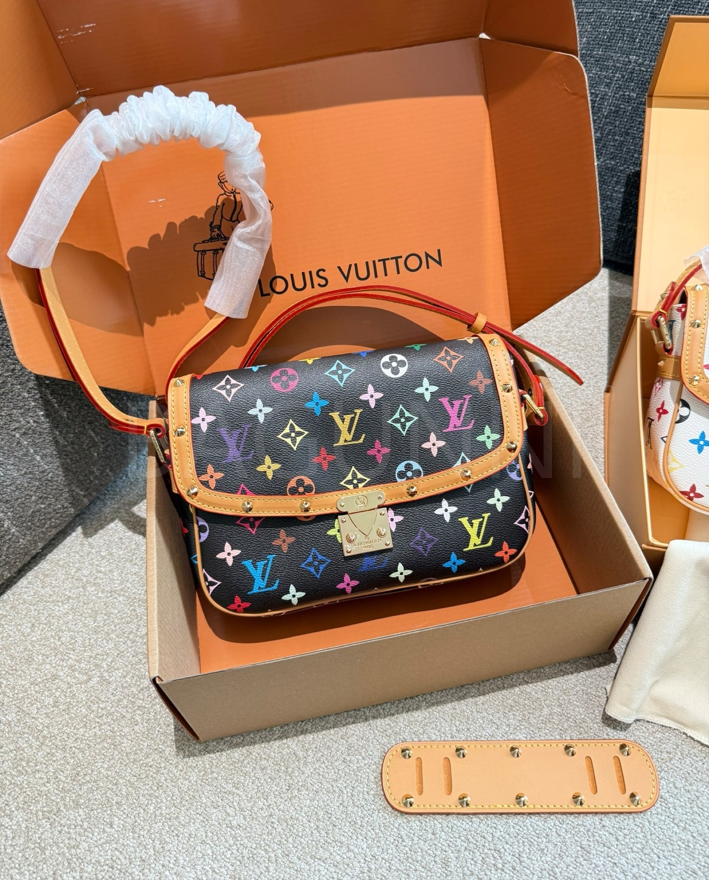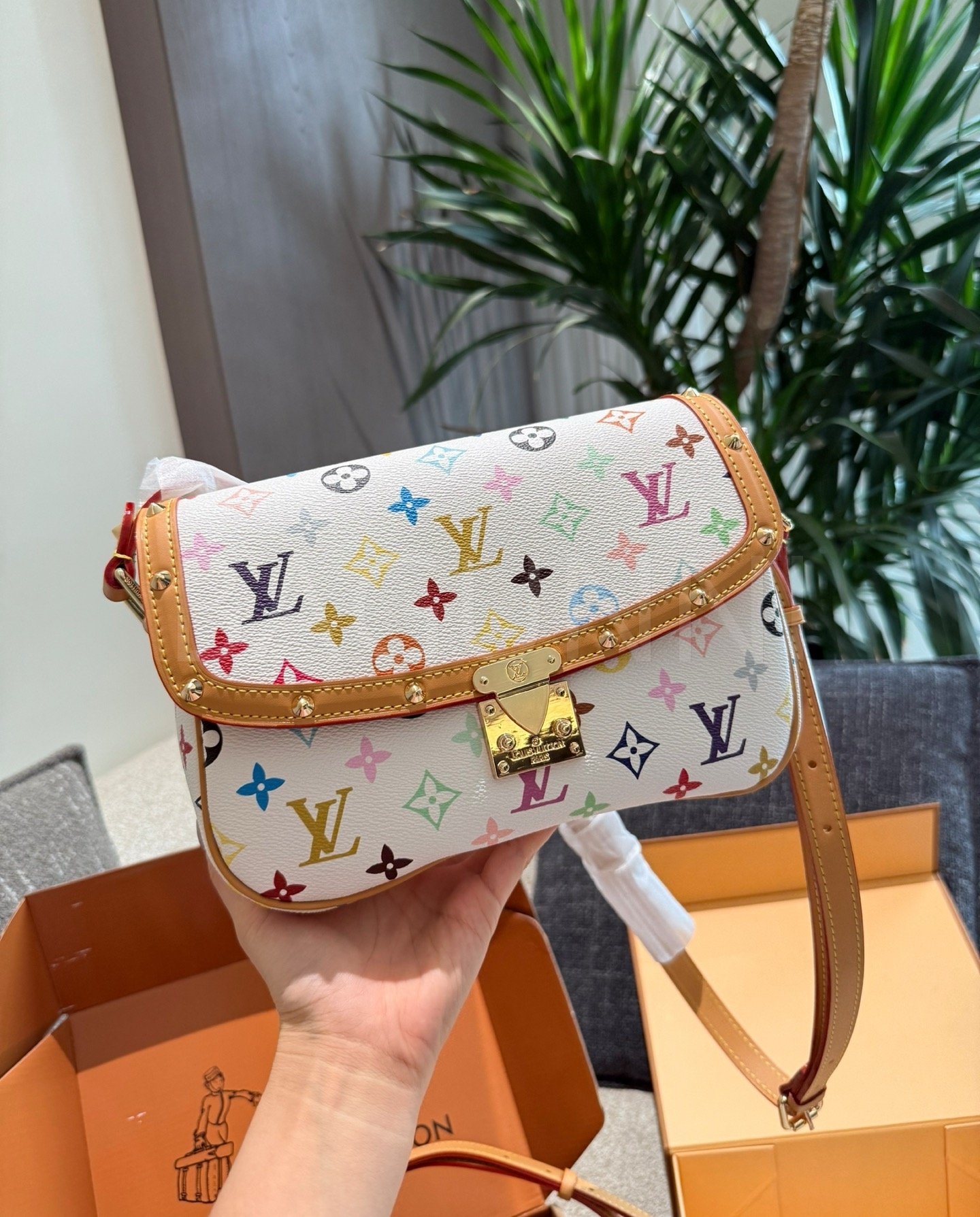 클래식한 캔버스 무드가 돋보이는 루이비통 멀티컬러 메신저 백입니다.