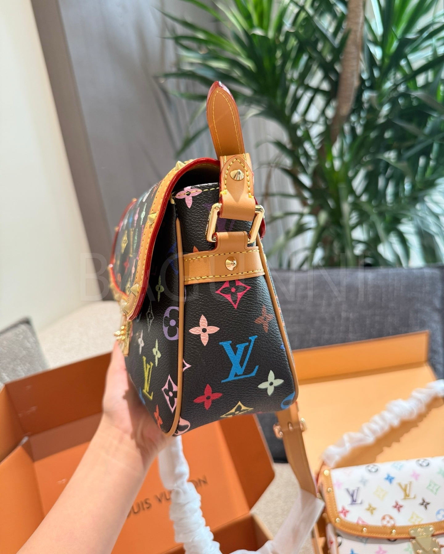 블랙, 화이트 컬러 구성이 감각적인 분위기를 완성해줍니다 멀티컬러 모노그램 디테일이 조화롭게 어우러져 완성도를 높여줍니다