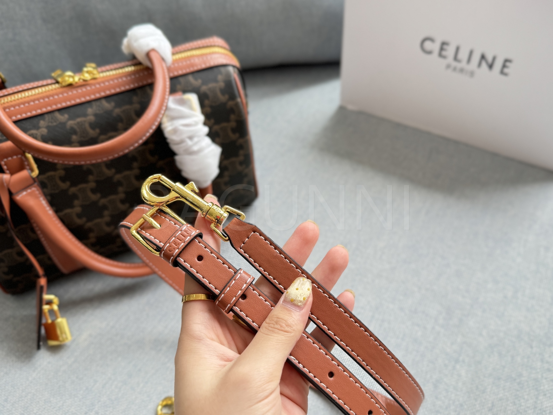 셀린느 탕부르 보스턴백입니다. 가죽 특유의 질감이 자연스럽게 살아 있으며 블랙, 레드 톤이 어우러져 브랜드 특유의 분위기를 편하게 즐기기 좋습니다.