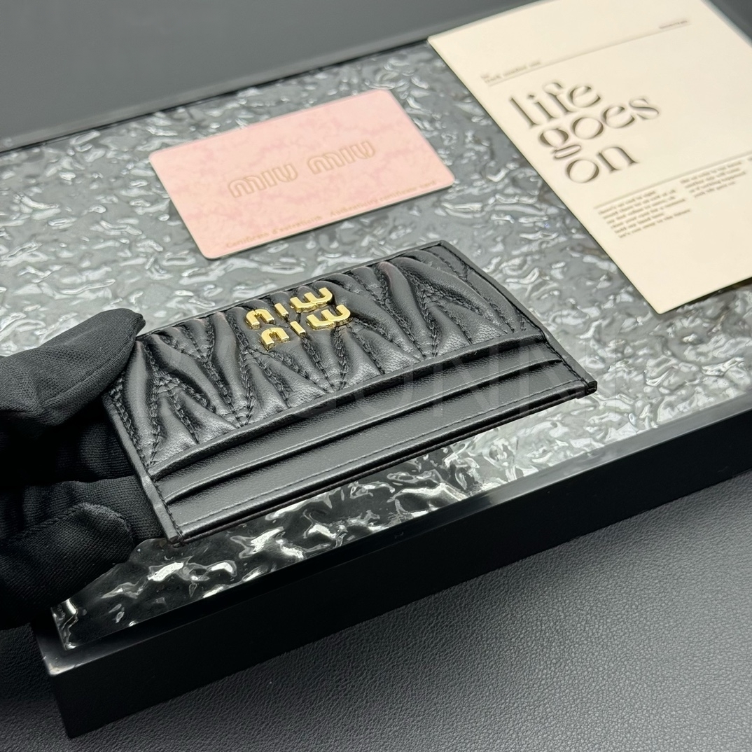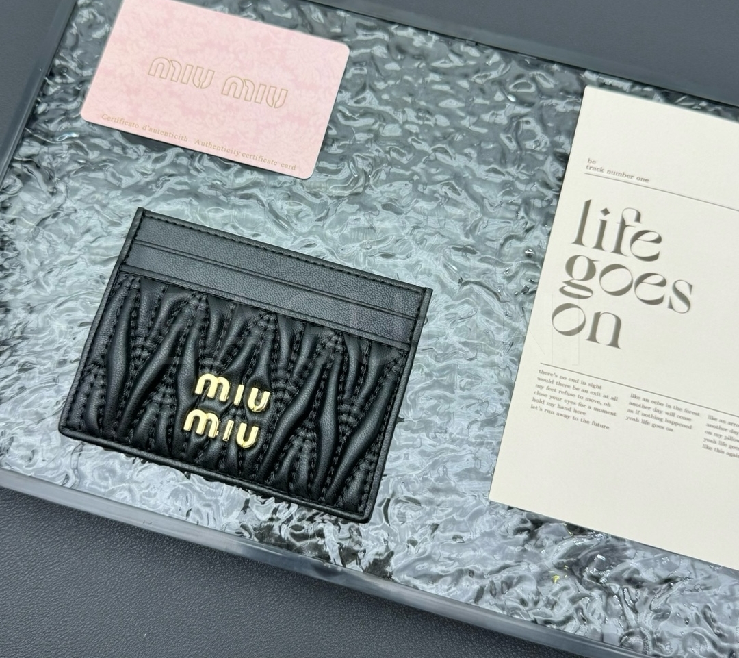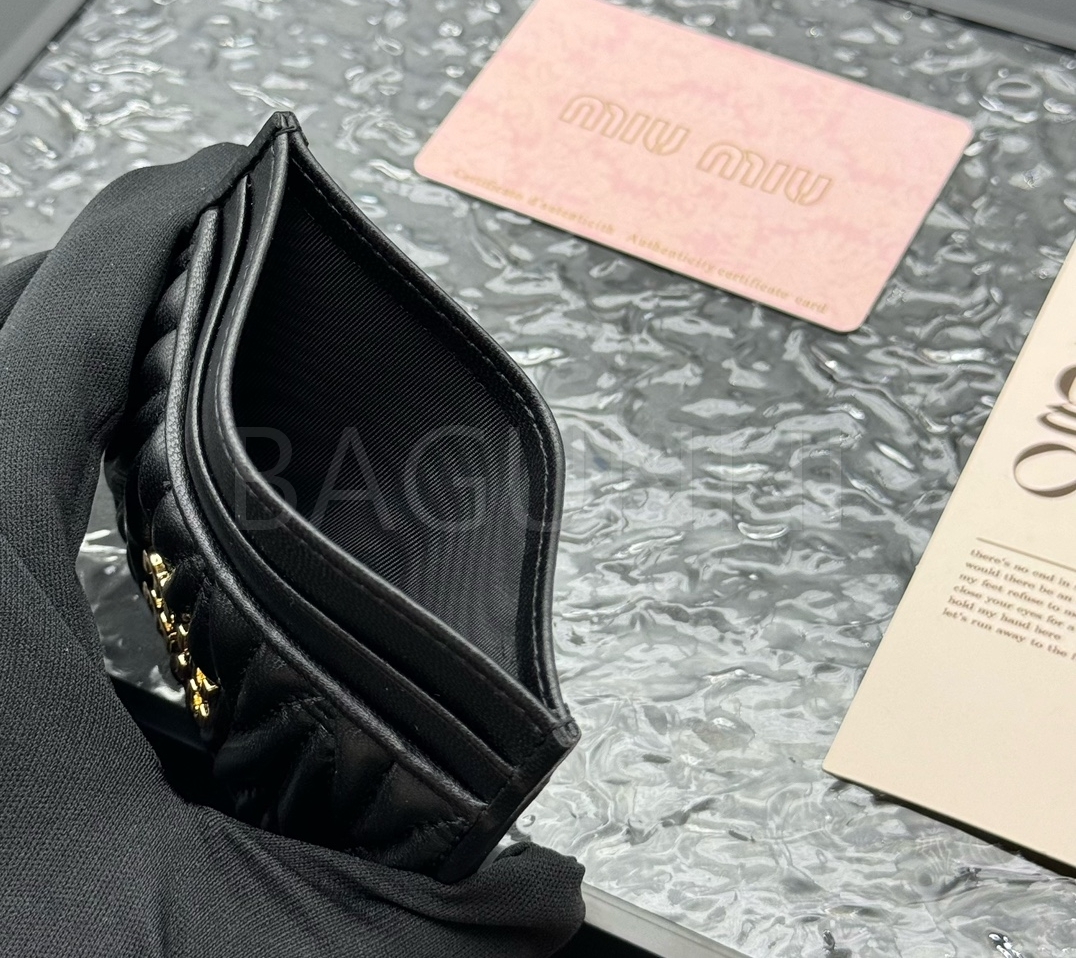 카프스킨의 질감이 돋보이는 미우미우 마테라쎄 카드지갑입니다.