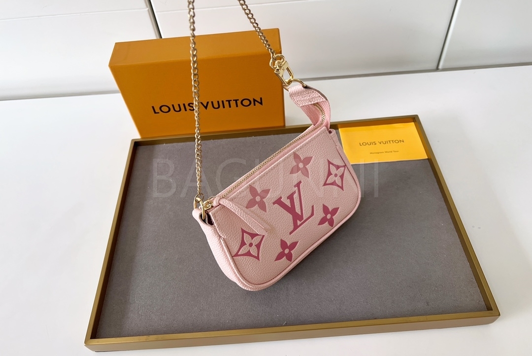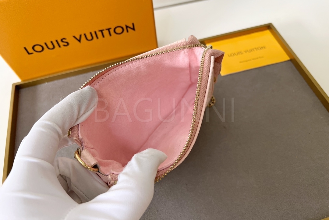 모노그램 앙프렝뜨 레더와 체인 연출 가능으로 데일리로 쓰기 좋고, 작은 소지품을 깔끔하게 정리하기 좋습니다.
