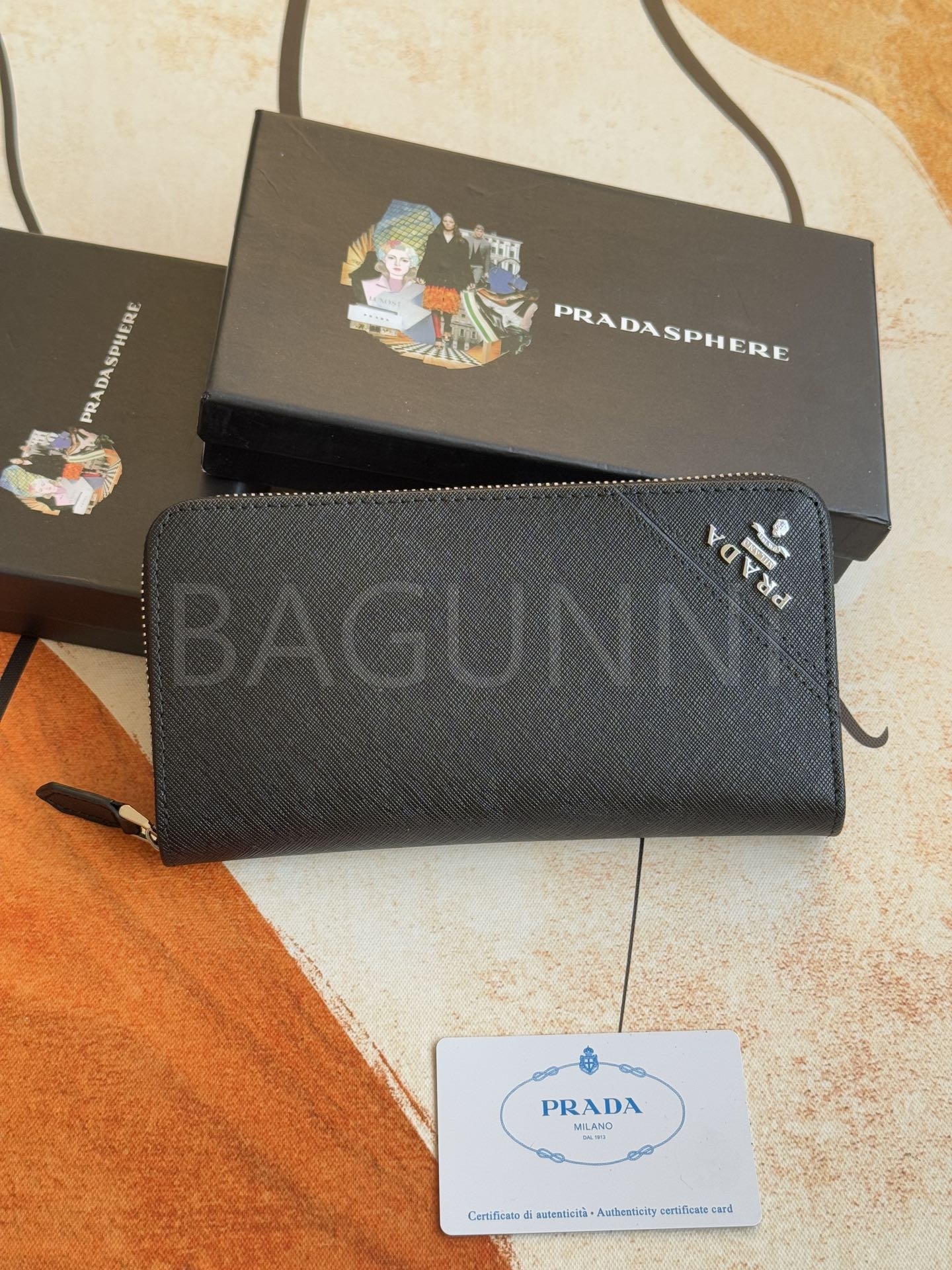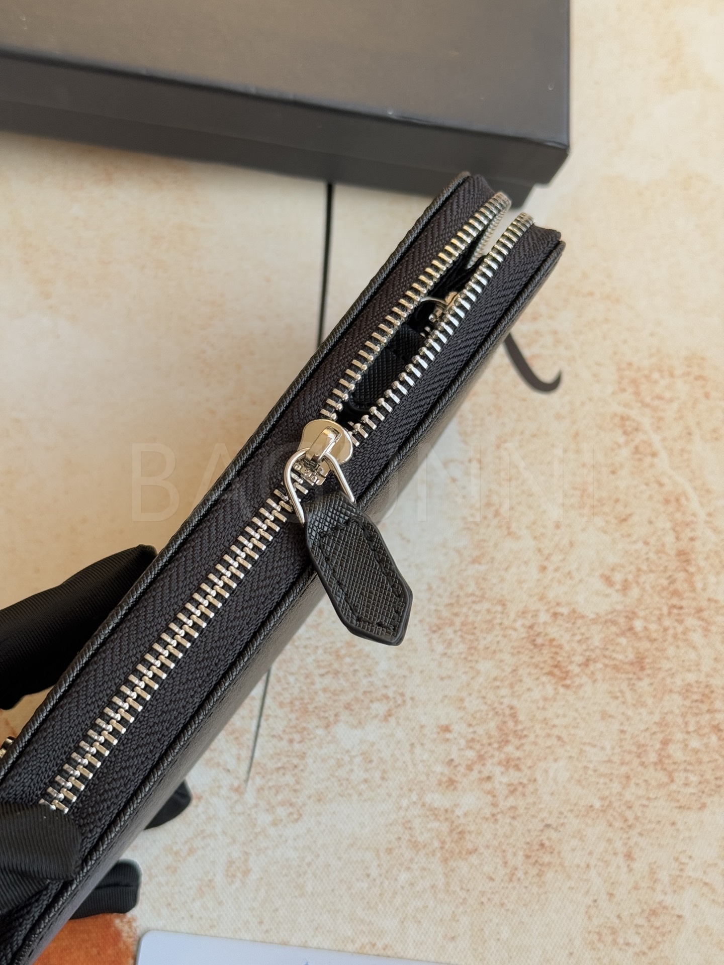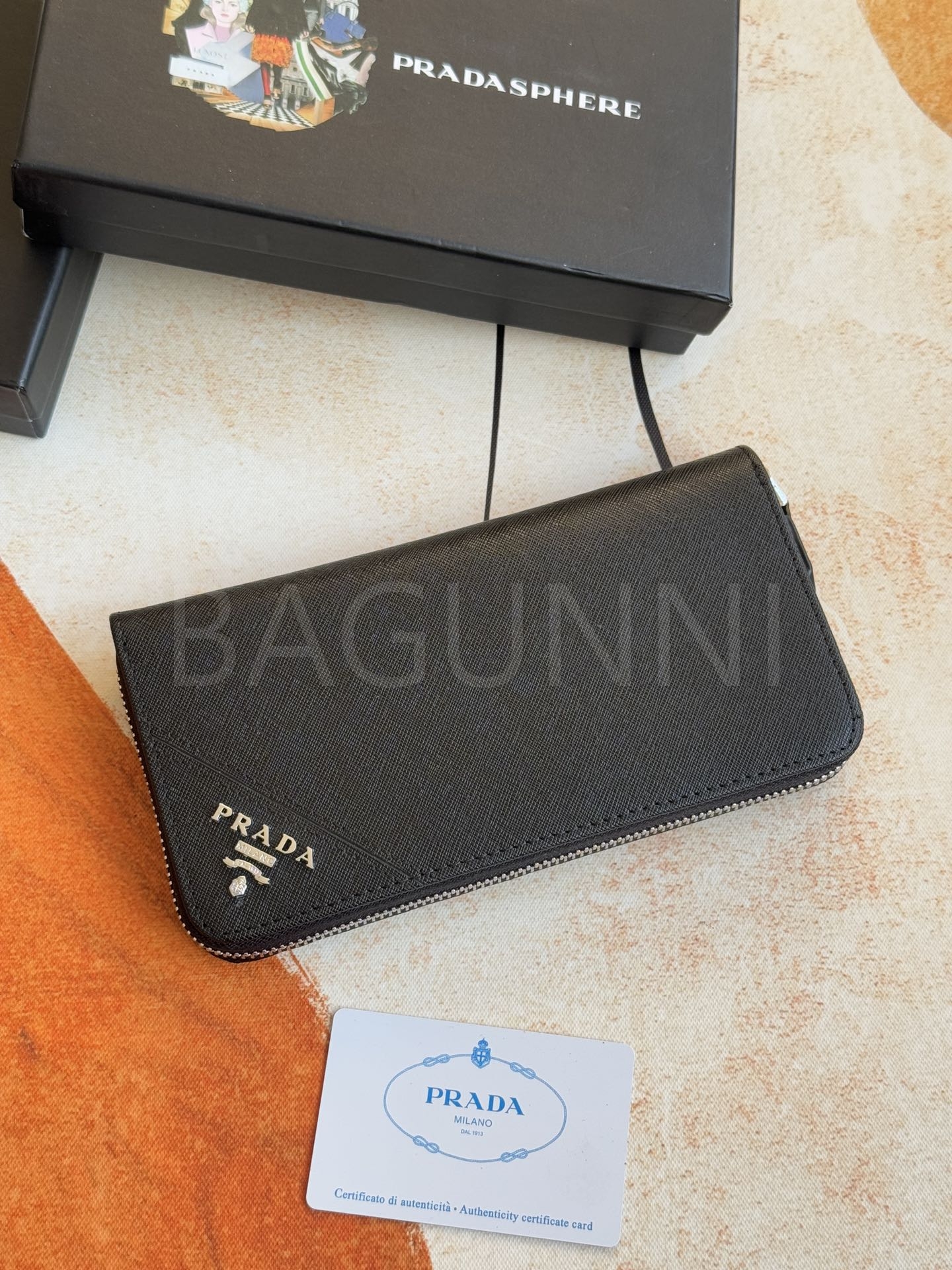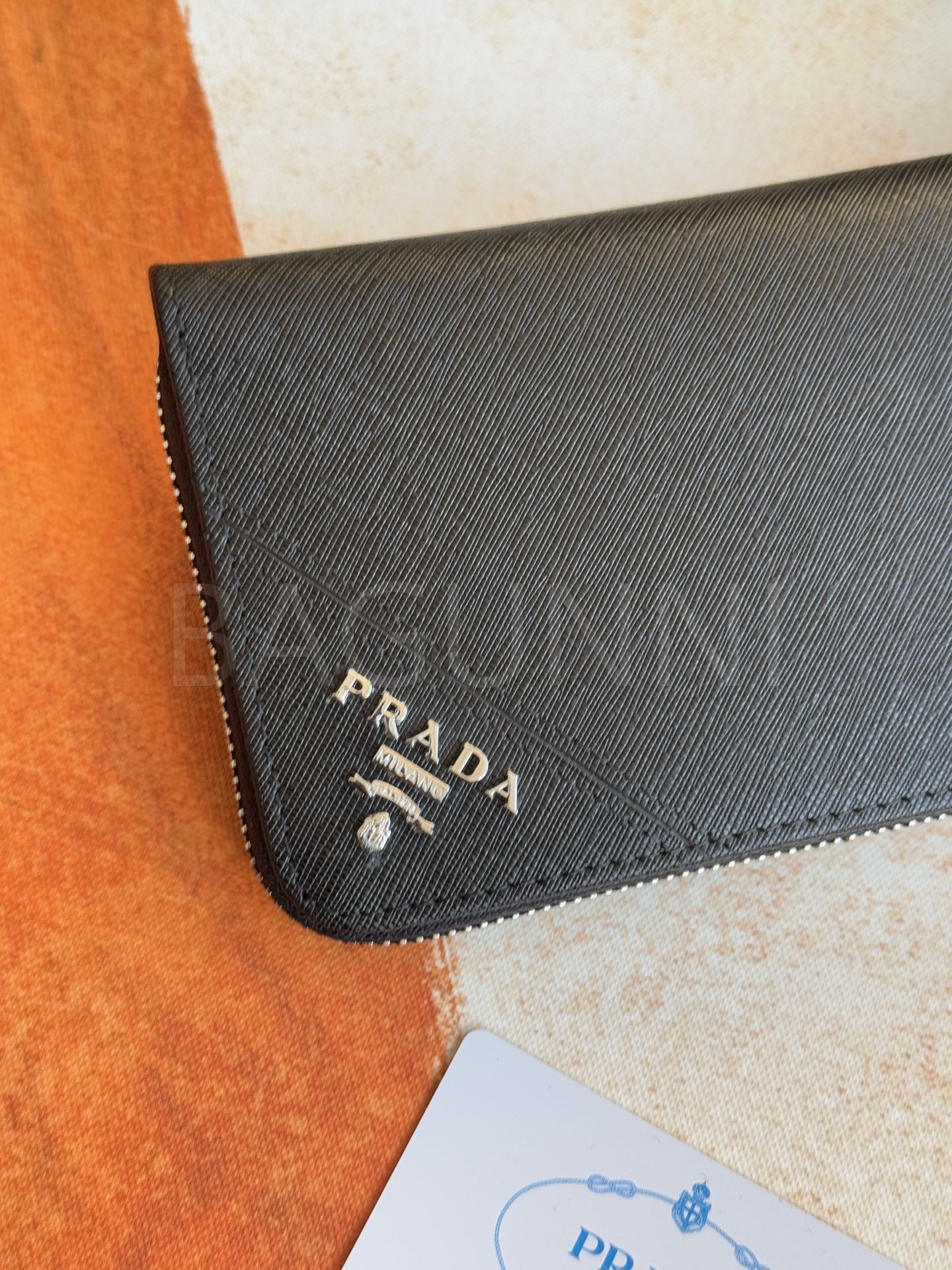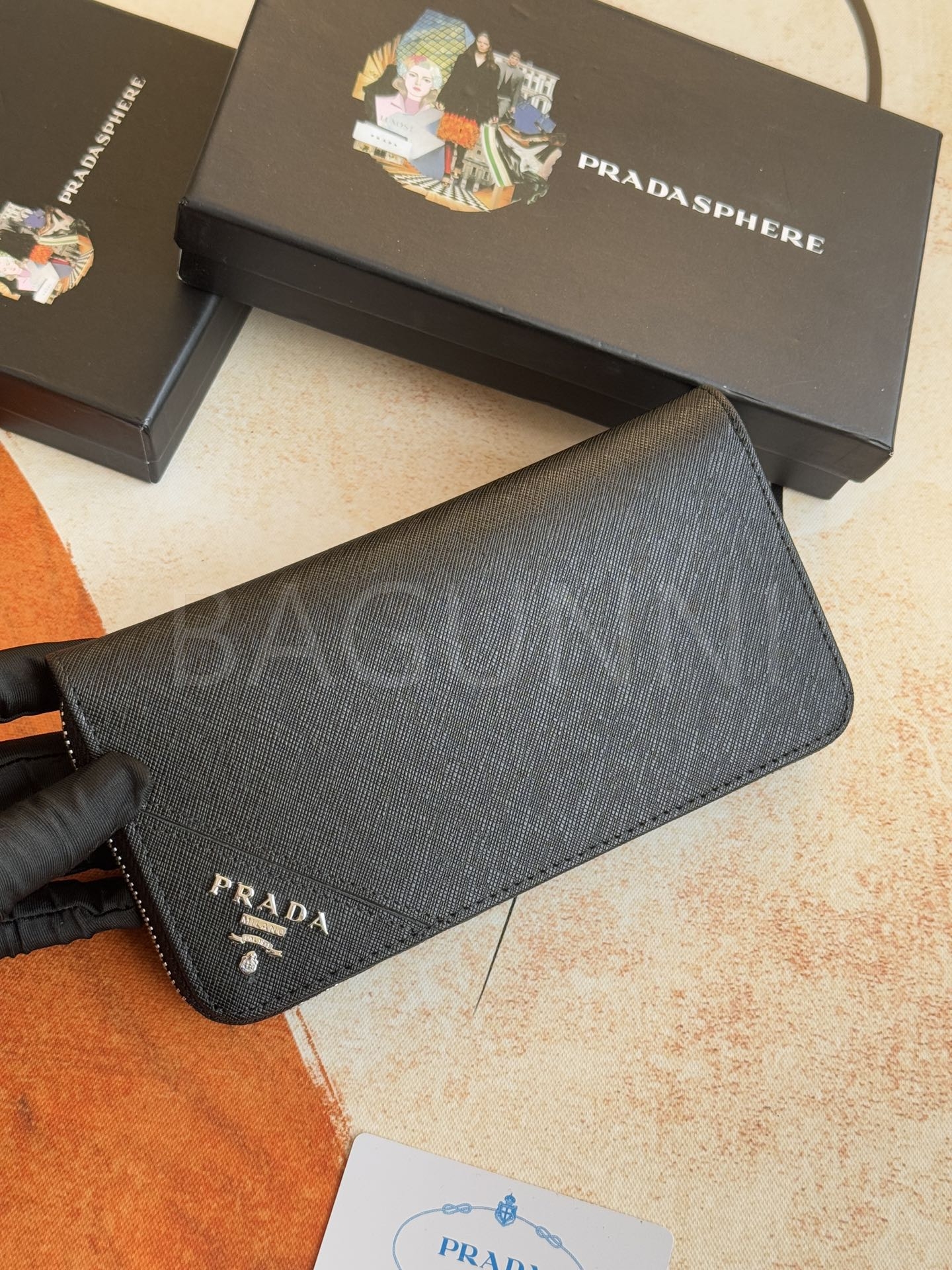 사피아노 질감이 깔끔하게 살아있는 프라다 사피아노 지퍼 장지갑입니다.