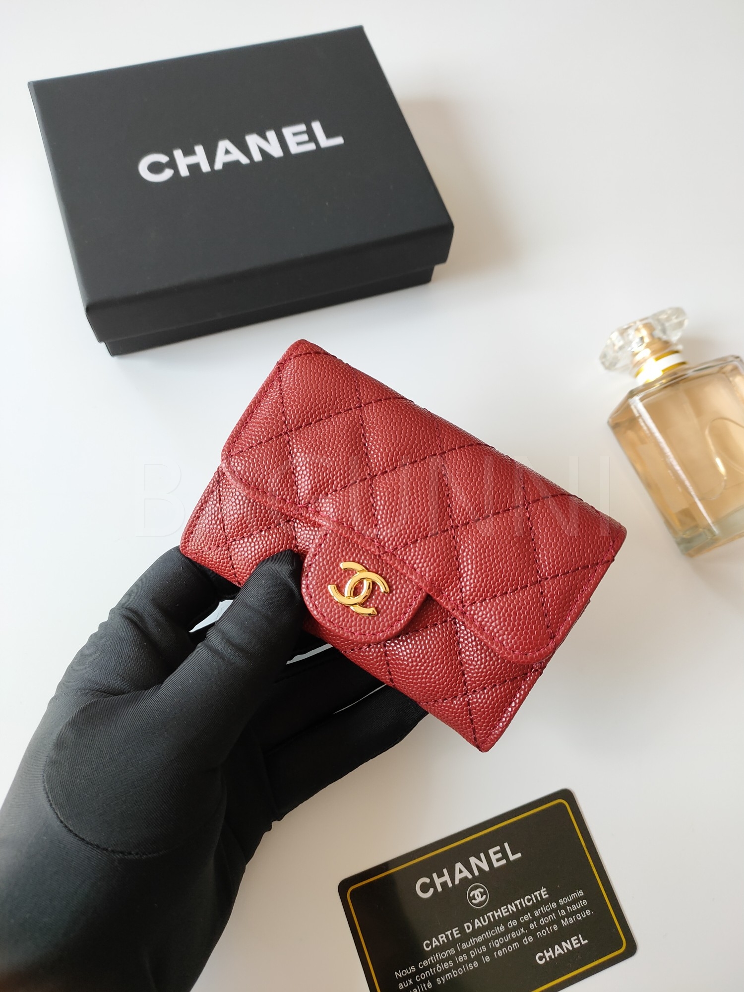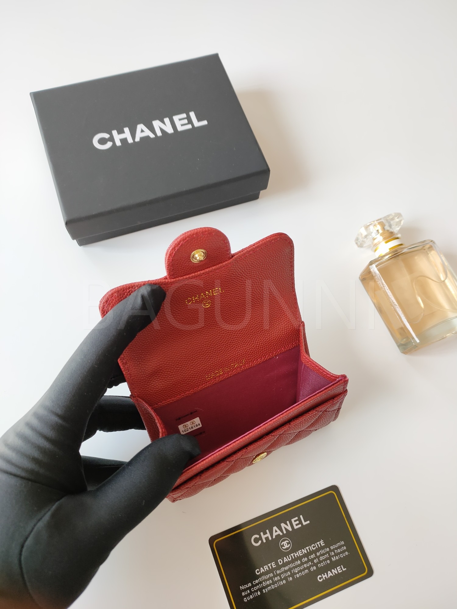 카프스킨의 질감이 돋보이는 샤넬 클래식 플랩 카드지갑입니다.