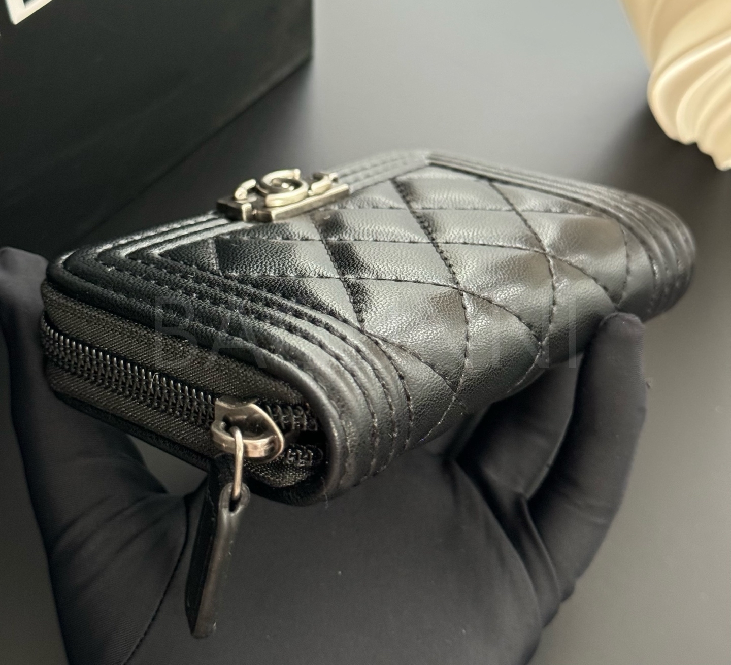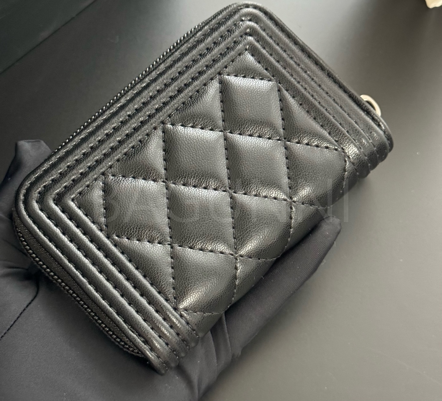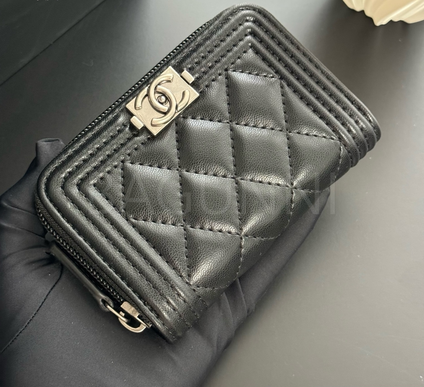 샤넬 특유의 무드가 자연스럽게 살아있는 보이 카드지갑입니다.