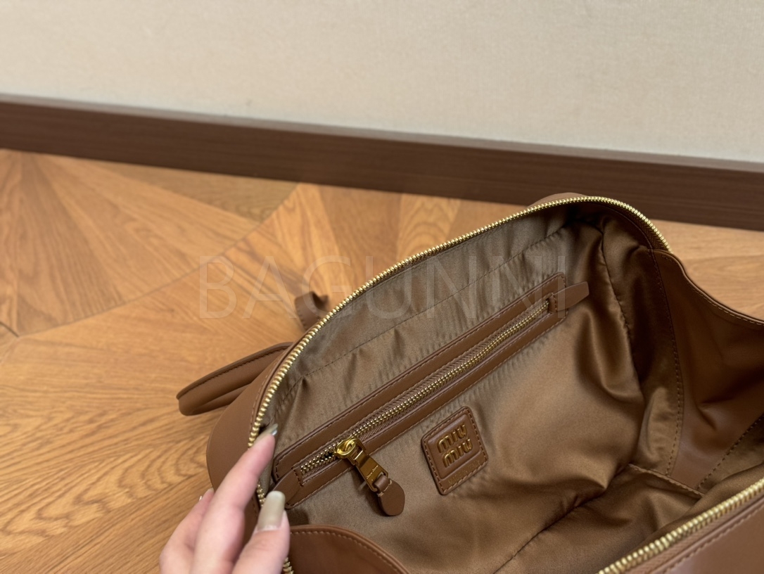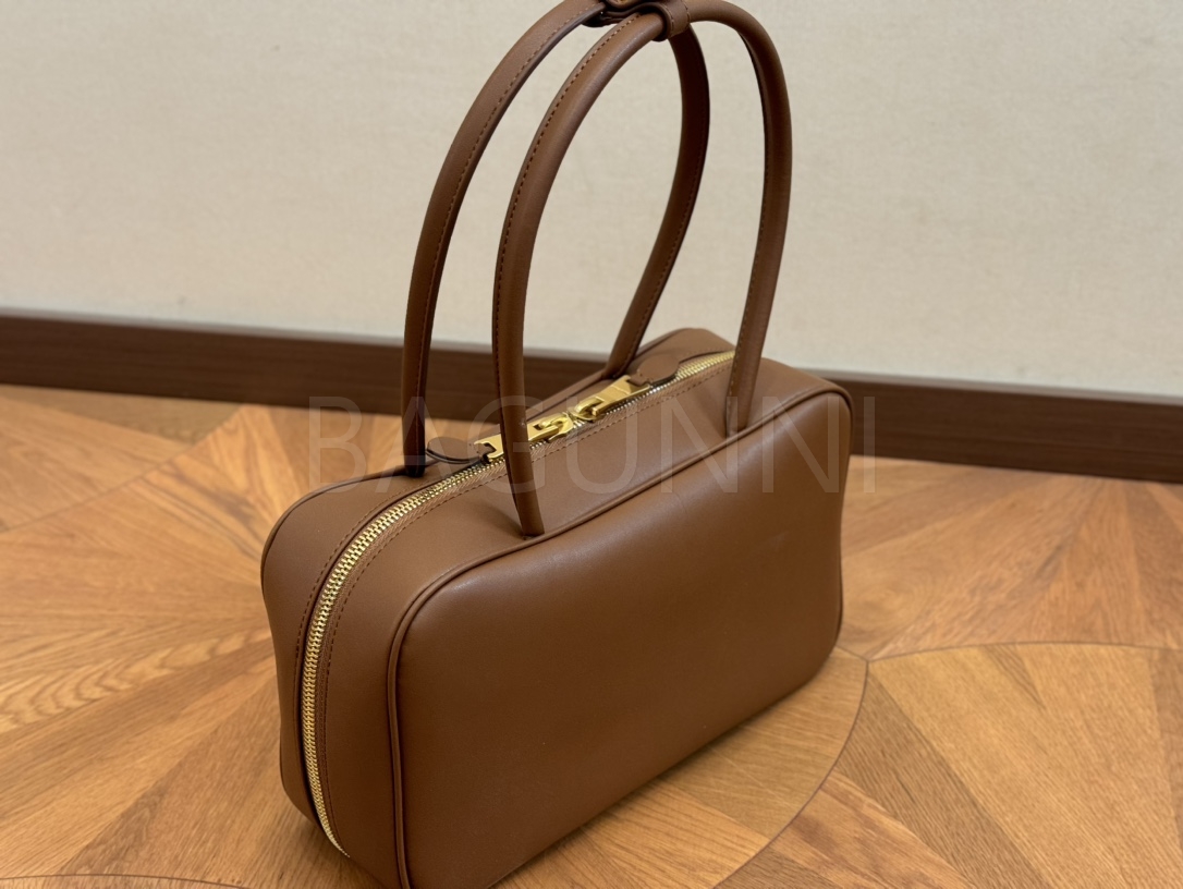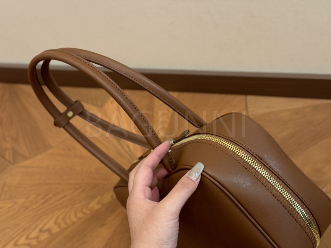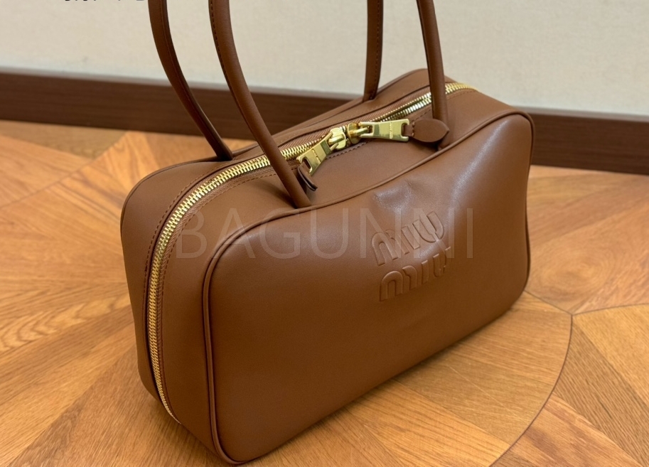 미우미우 레더 보스턴백입니다. 가죽 특유의 질감이 자연스럽게 살아 있으며 브랜드 특유의 분위기를 편하게 즐기기 좋습니다.