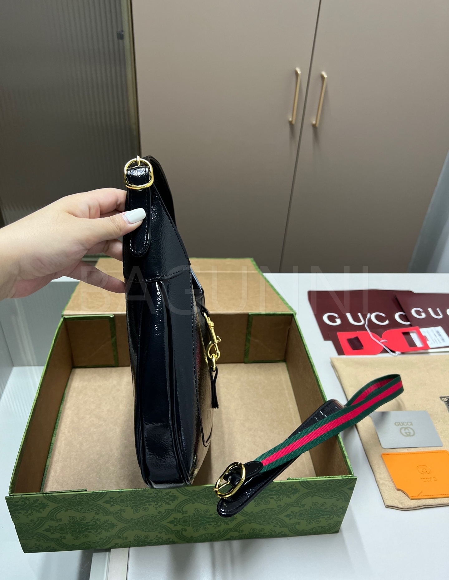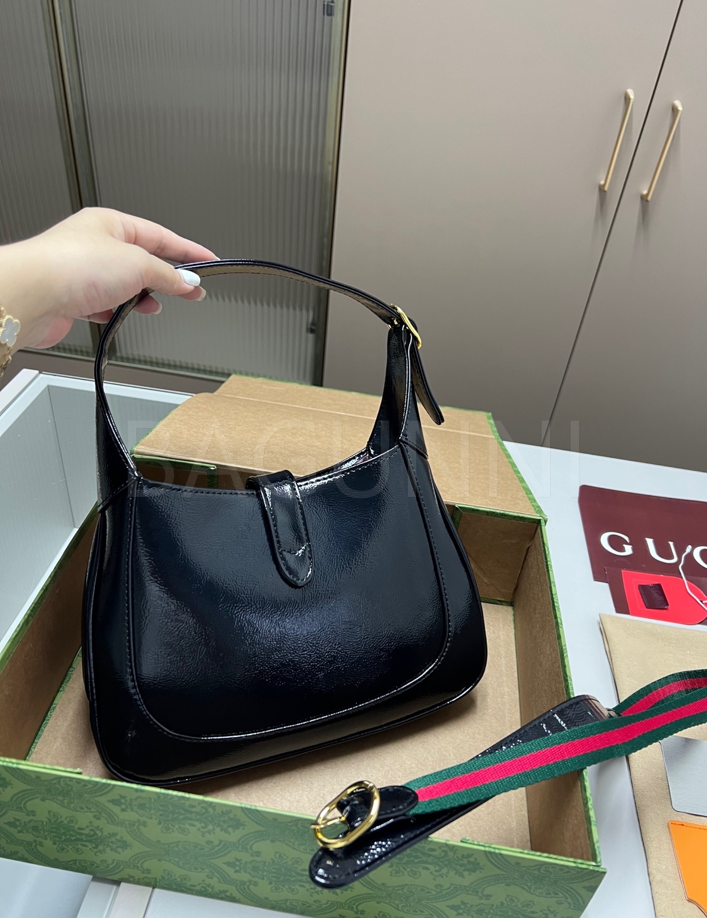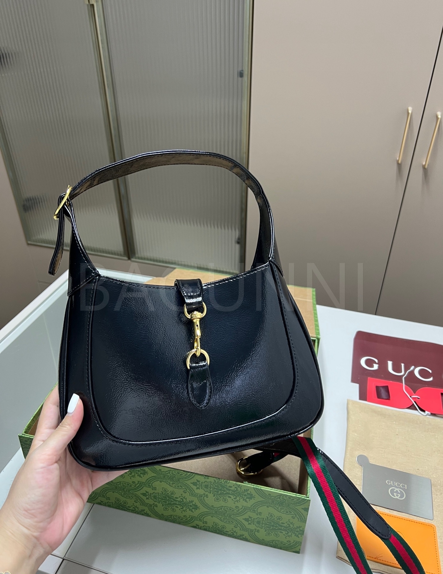 구찌 재키 숄더백입니다. 브랜드 특유의 분위기를 편하게 즐기기 좋습니다.