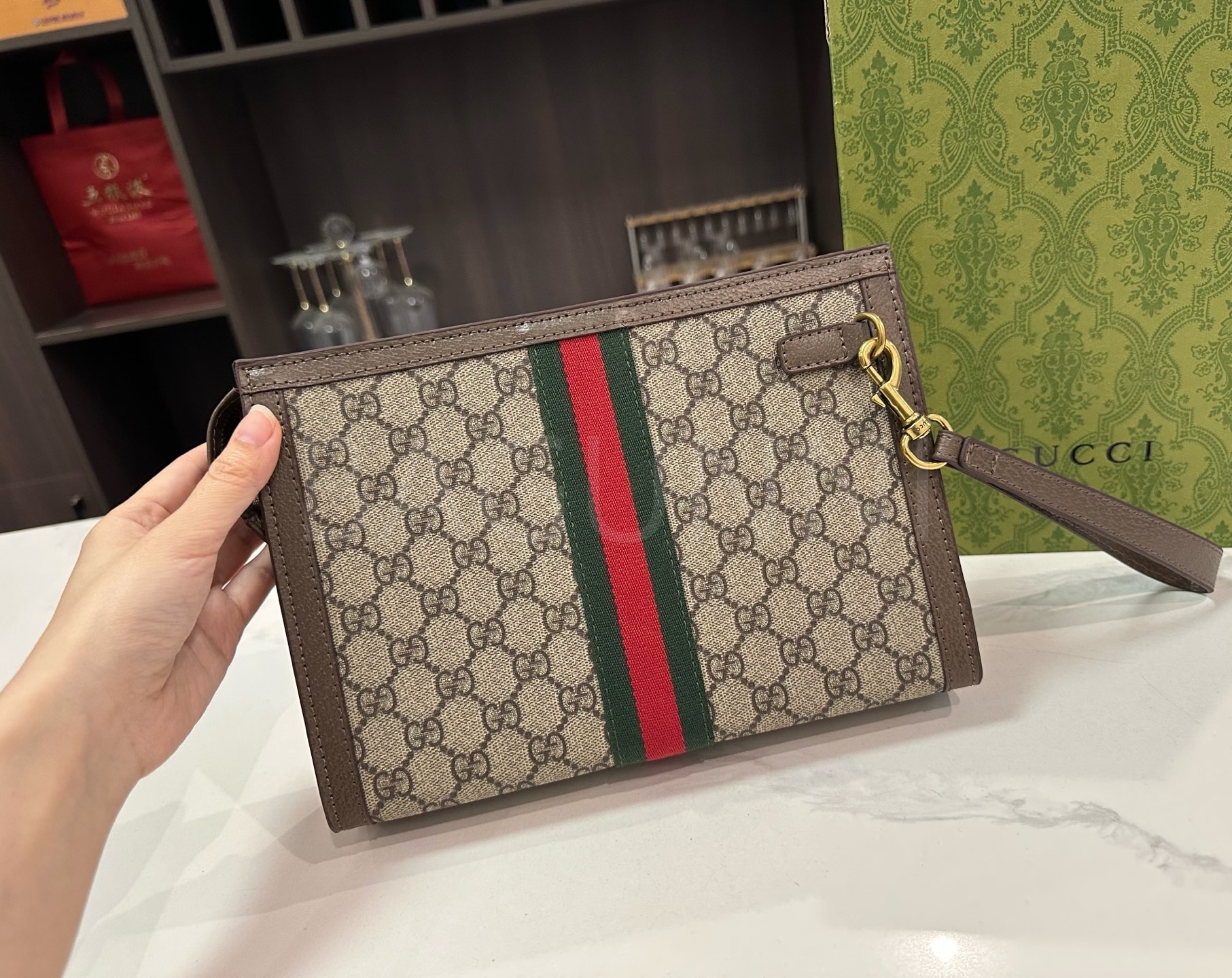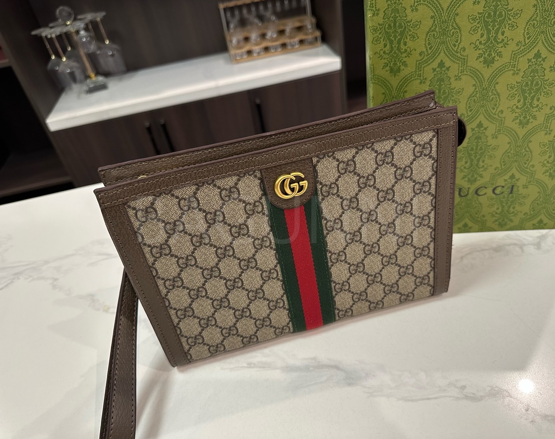 구찌 체인입니다. 가죽 특유의 질감이 자연스럽게 살아 있으며 브랜드 특유의 분위기를 편하게 즐기기 좋습니다.