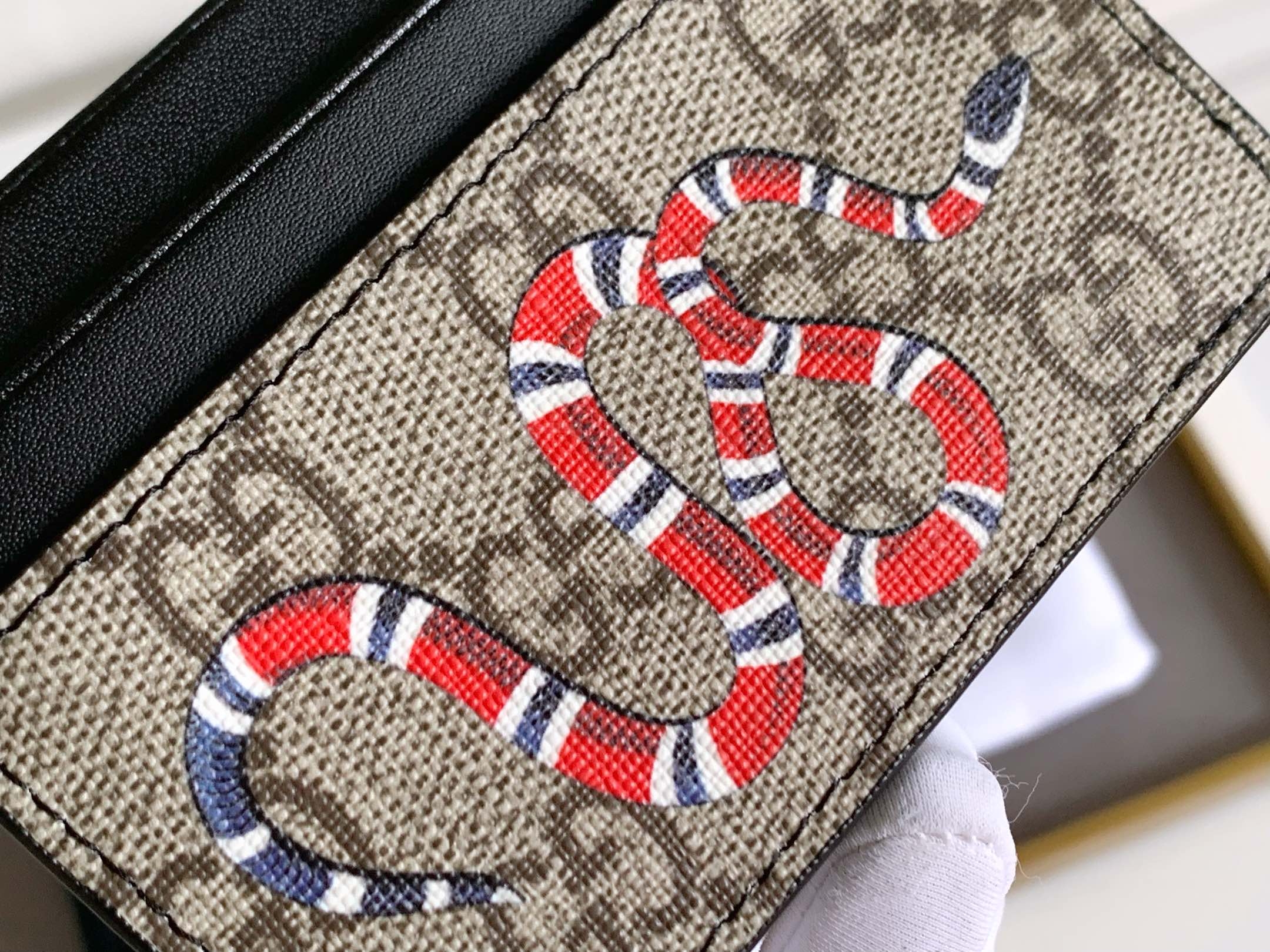 GG 수프림 캔버스의 질감이 돋보이는 구찌 카드지갑입니다.