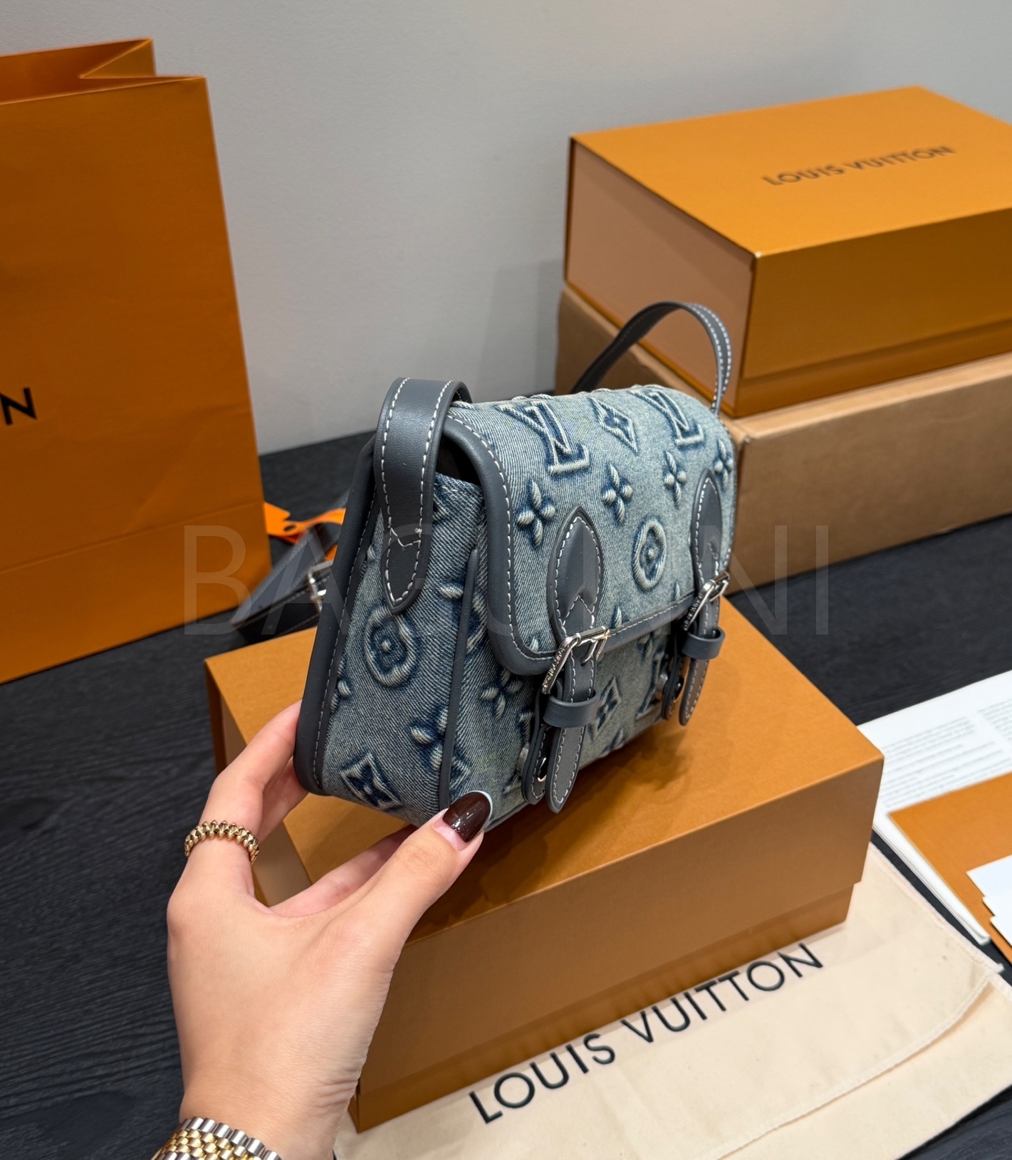 루이비통 데님 카메라백은 빈티지한 무드를 담은 아이템입니다.