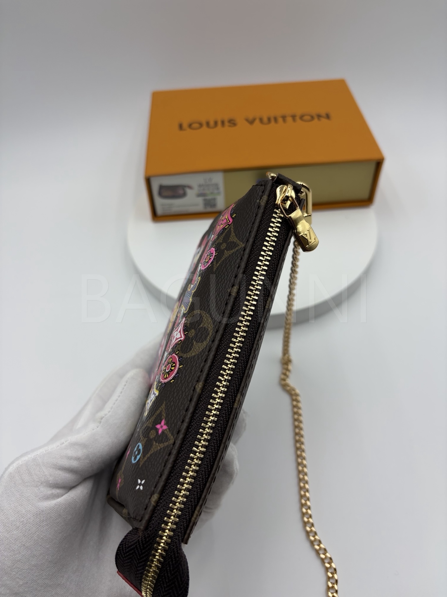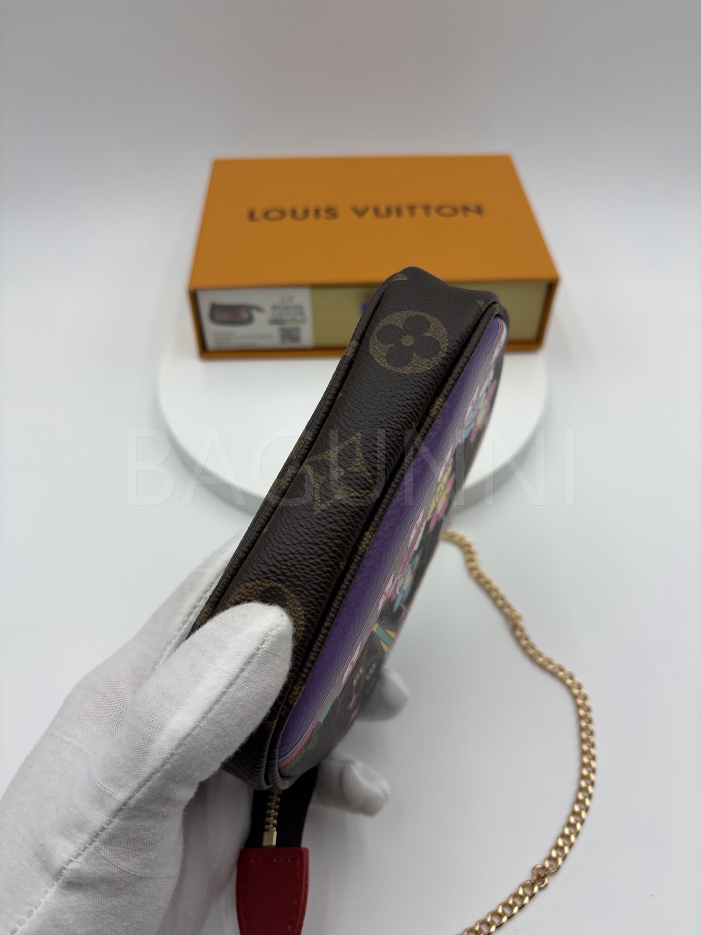 모노그램 앙프렝뜨 레더와 체인 연출 가능으로 데일리로 쓰기 좋고, 작은 소지품을 깔끔하게 정리하기 좋습니다.