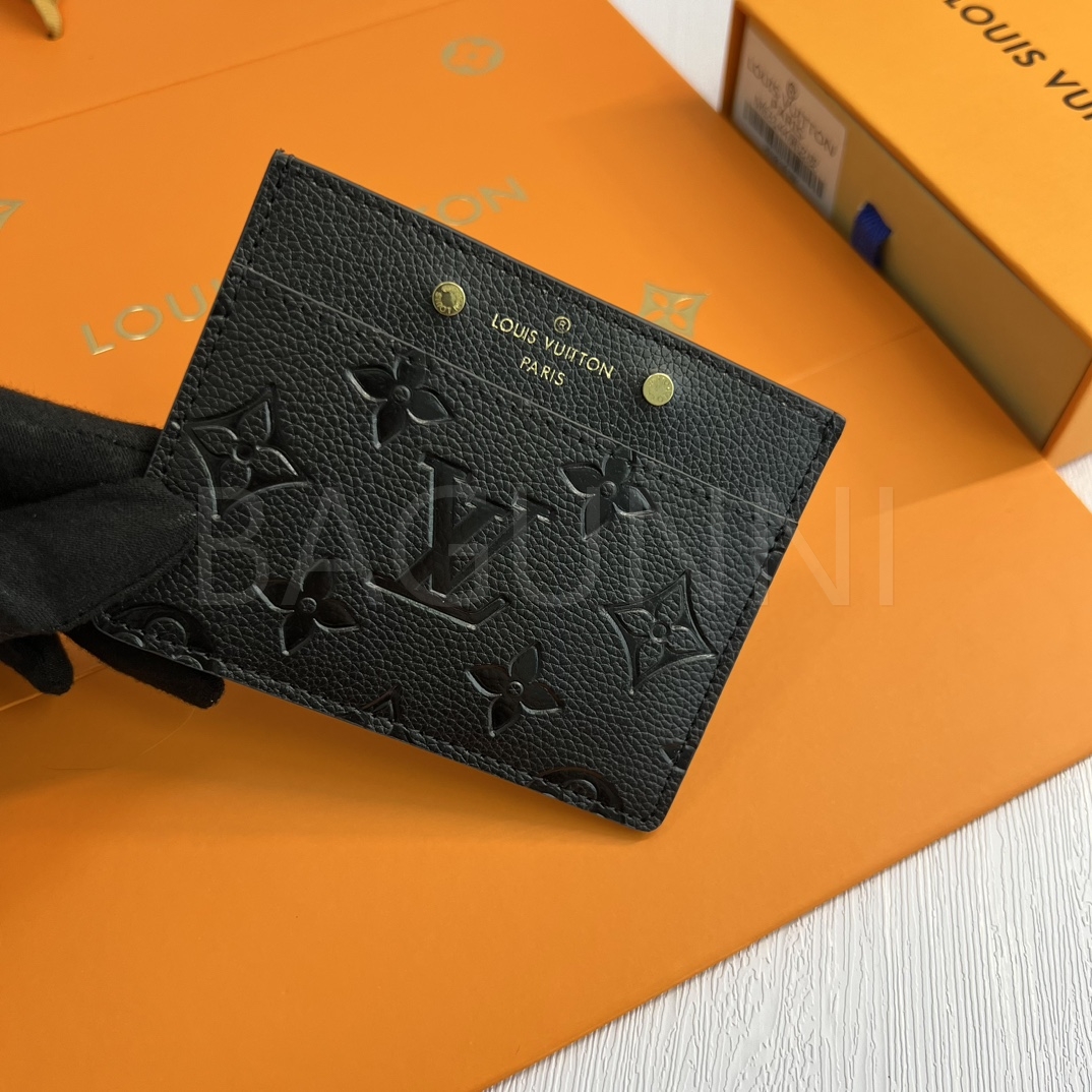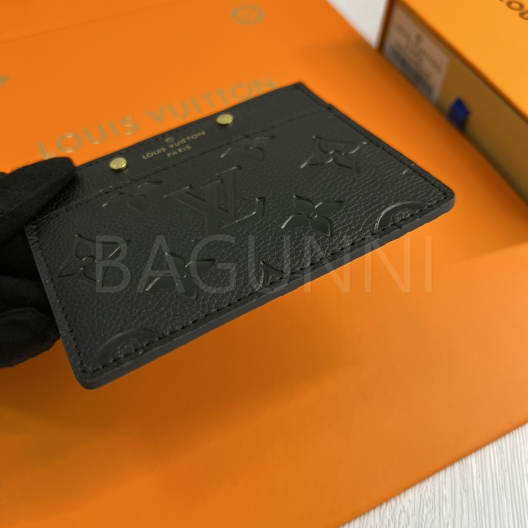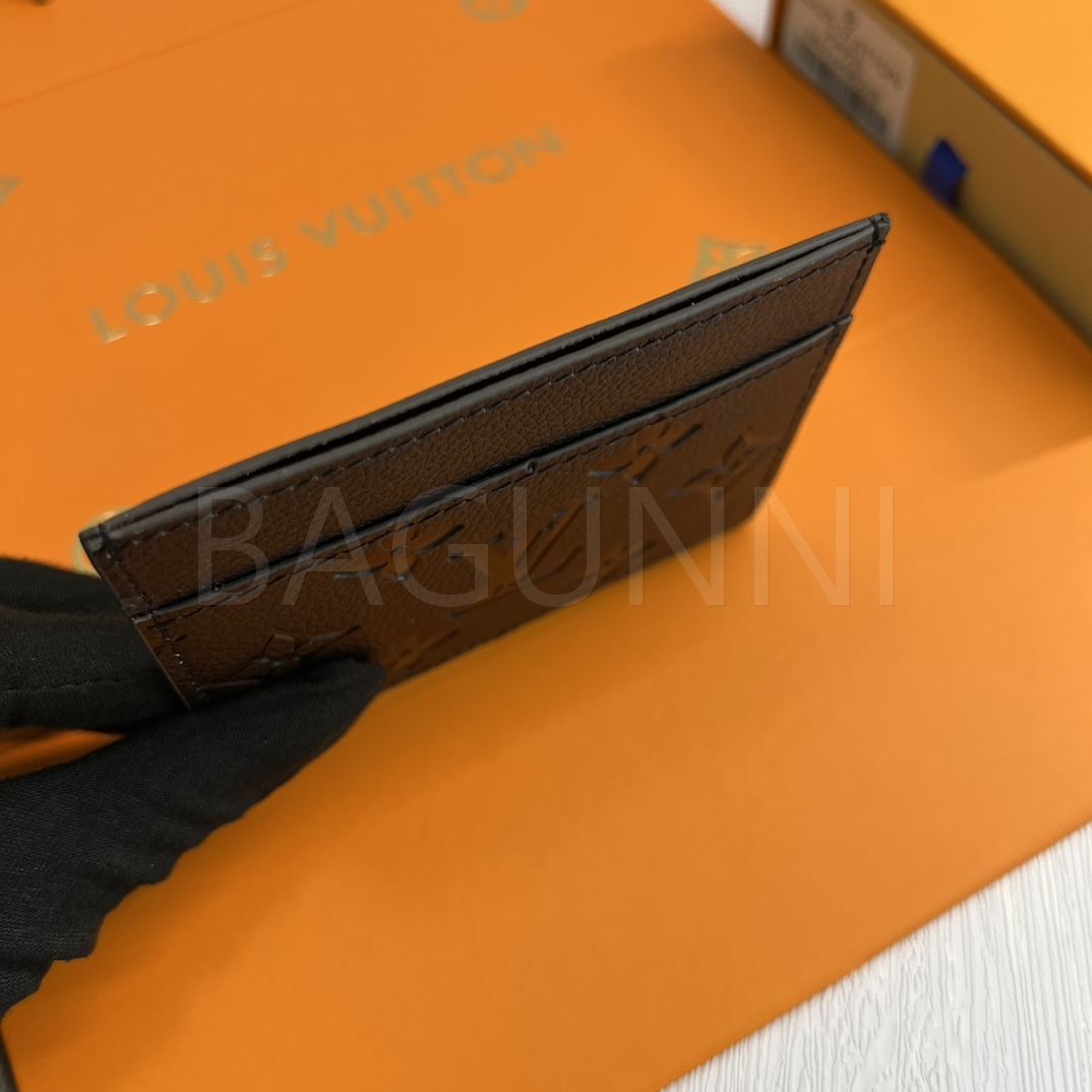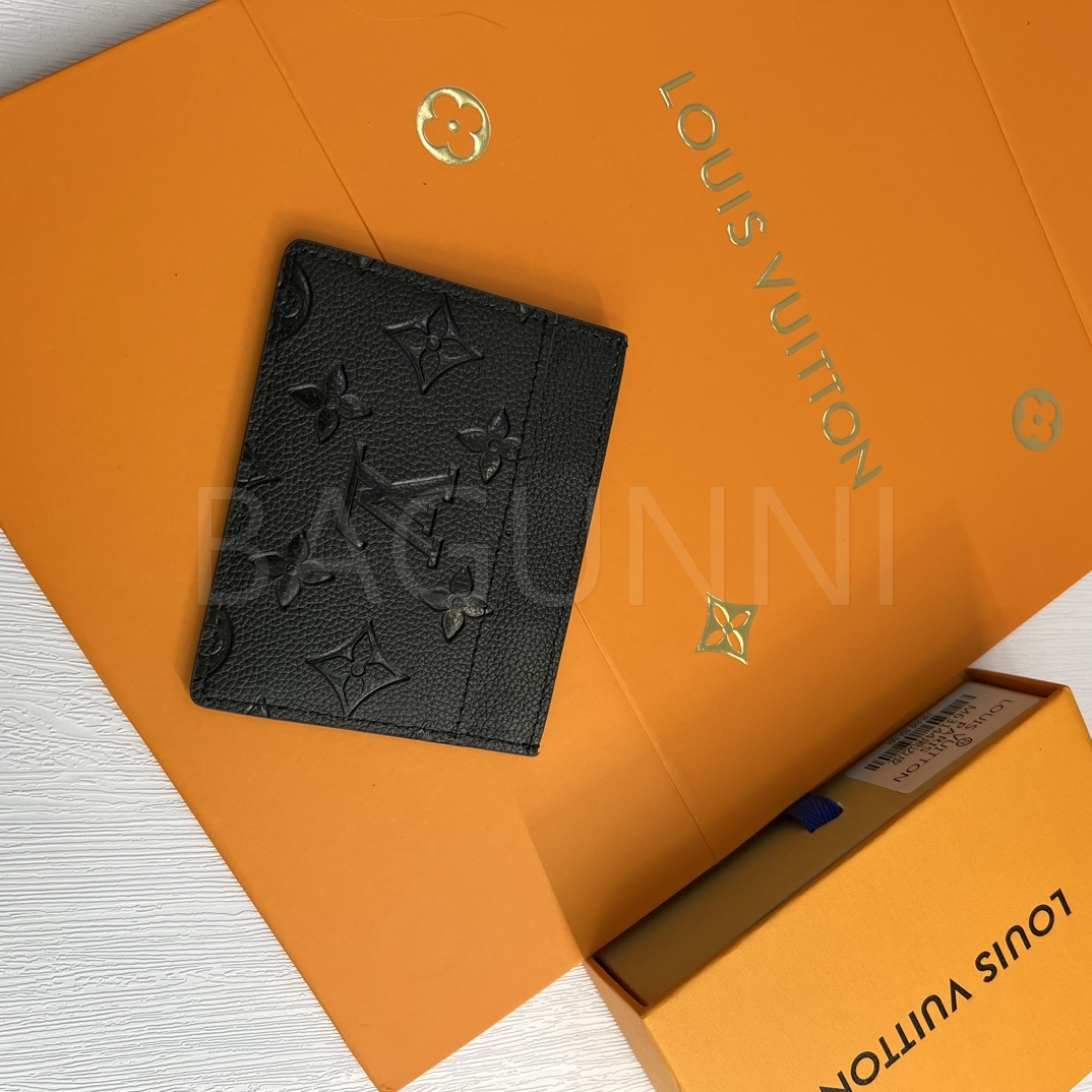 모노그램 앙프렝뜨 레더의 질감이 돋보이는 루이비통 포켓 오거나이저 카드홀더입니다.