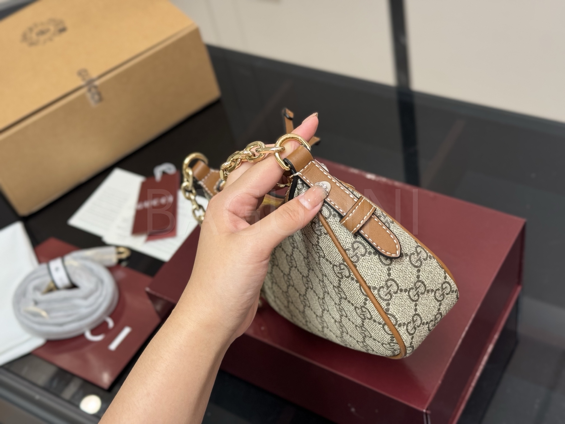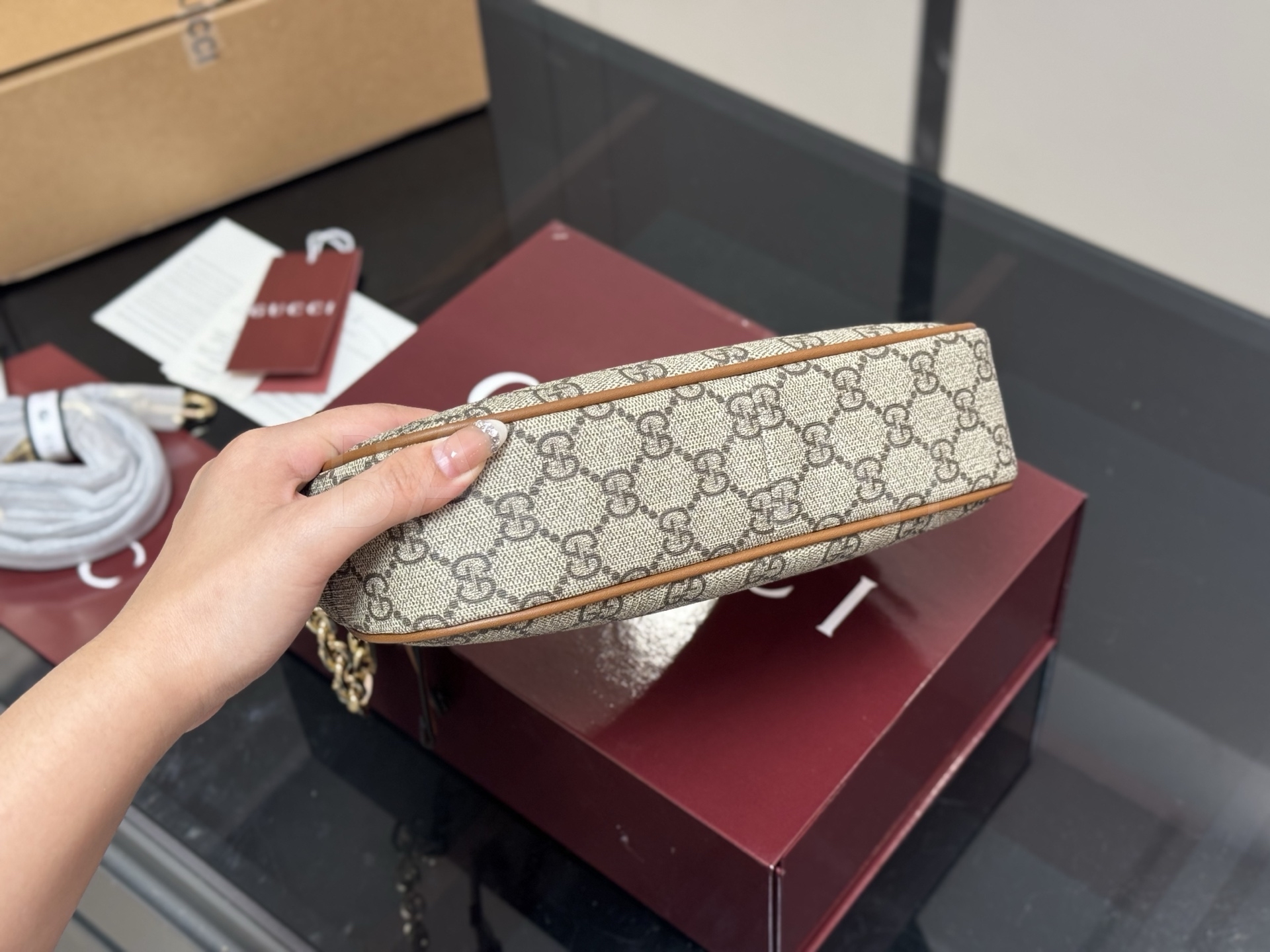 구찌 오피디아 숄더백입니다. 브랜드 특유의 분위기를 편하게 즐기기 좋습니다.