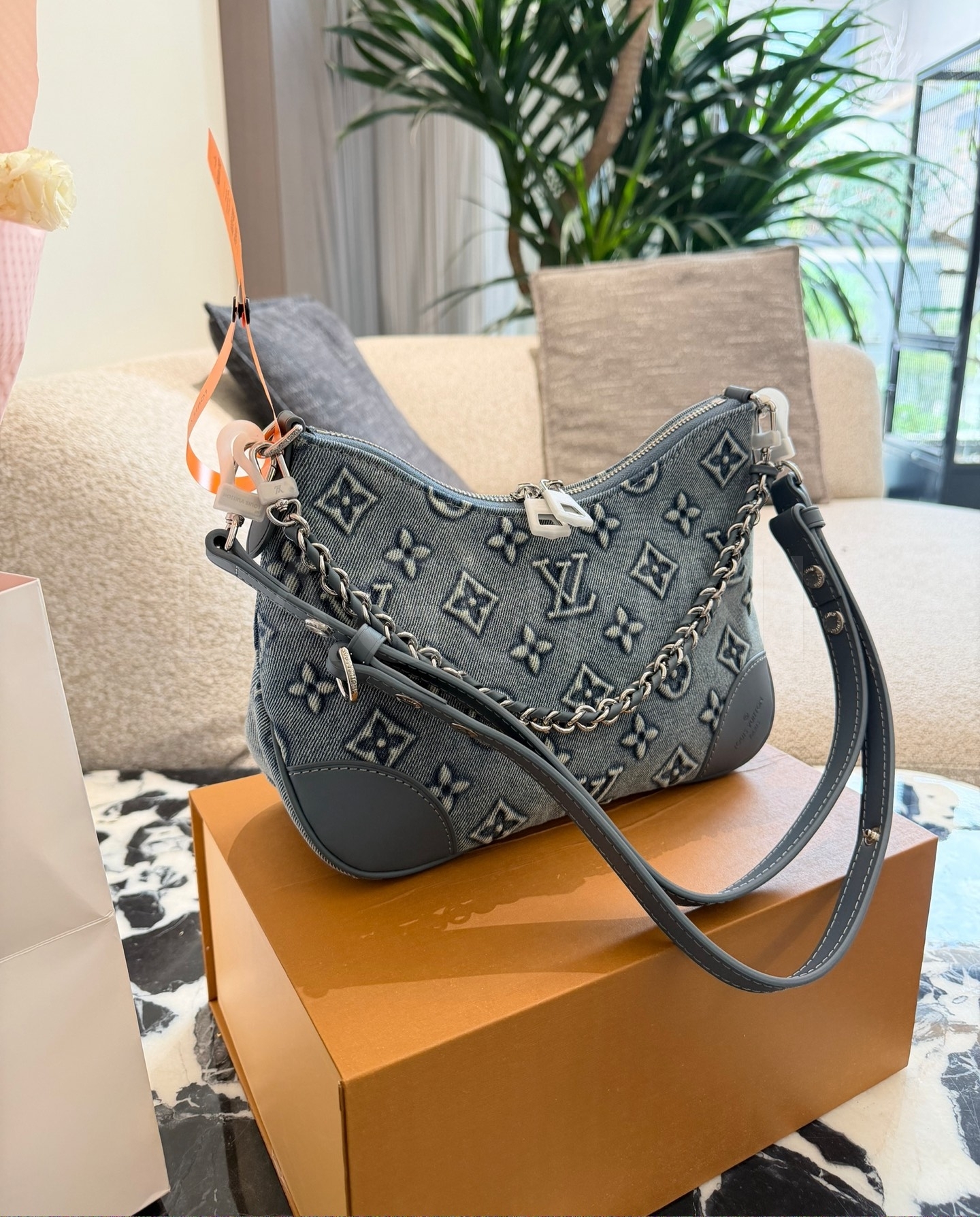 데님 특유의 캐주얼한 무드가 돋보이는 루이비통 데님 가방입니다.