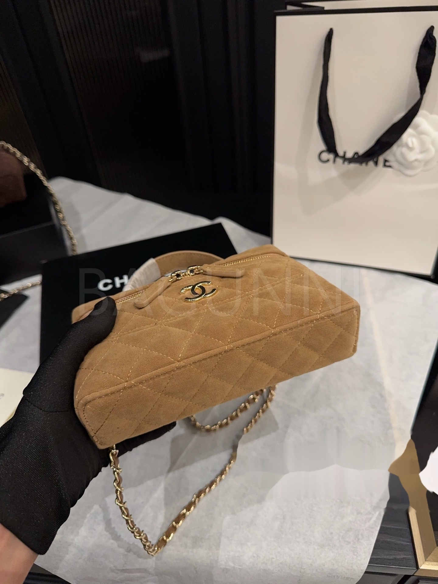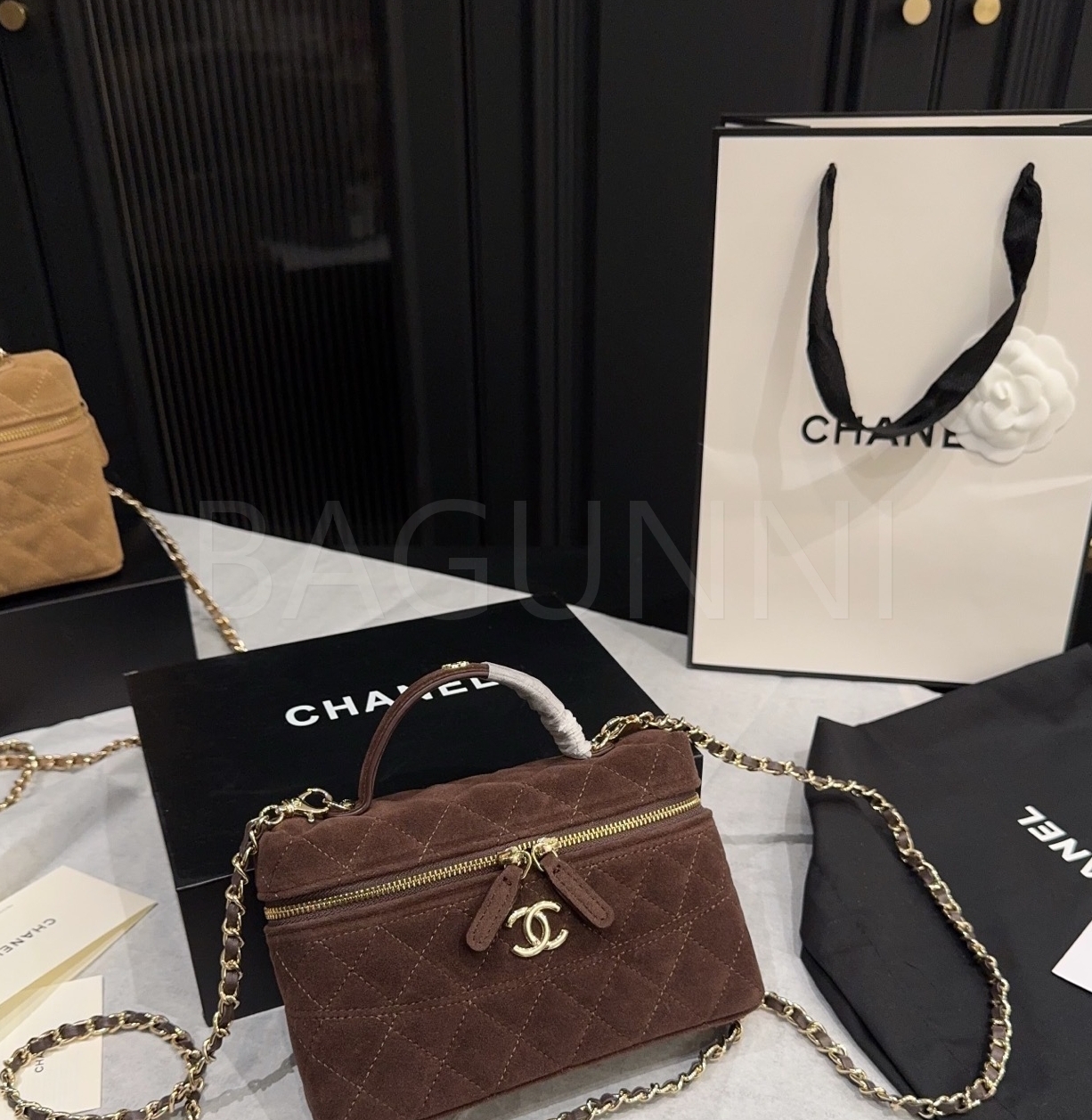 스웨이드 특유의 매력이 돋보이는 샤넬 스웨이드 런치박스 체인 백입니다.