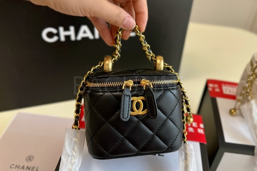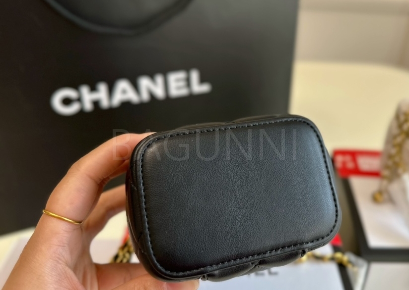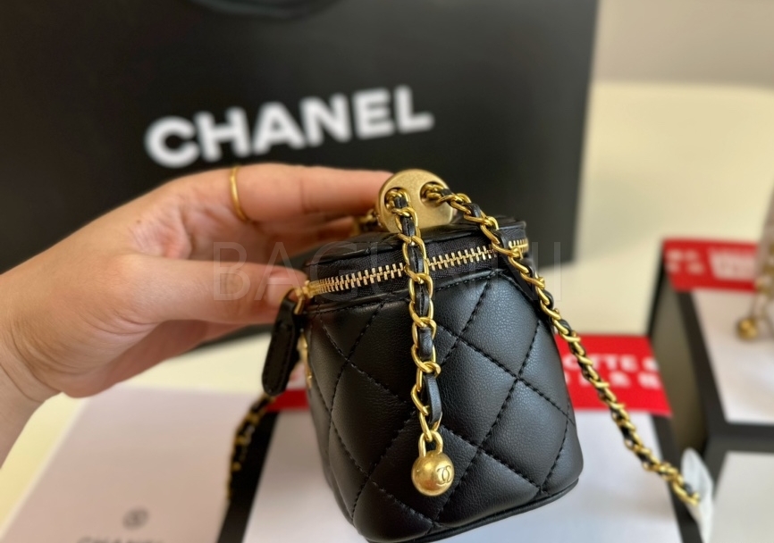 퀼팅 디테일, 체인 스트랩, 진주 장식, 박스 실루엣 디테일이 조화롭게 어우러져 완성도를 높여줍니다