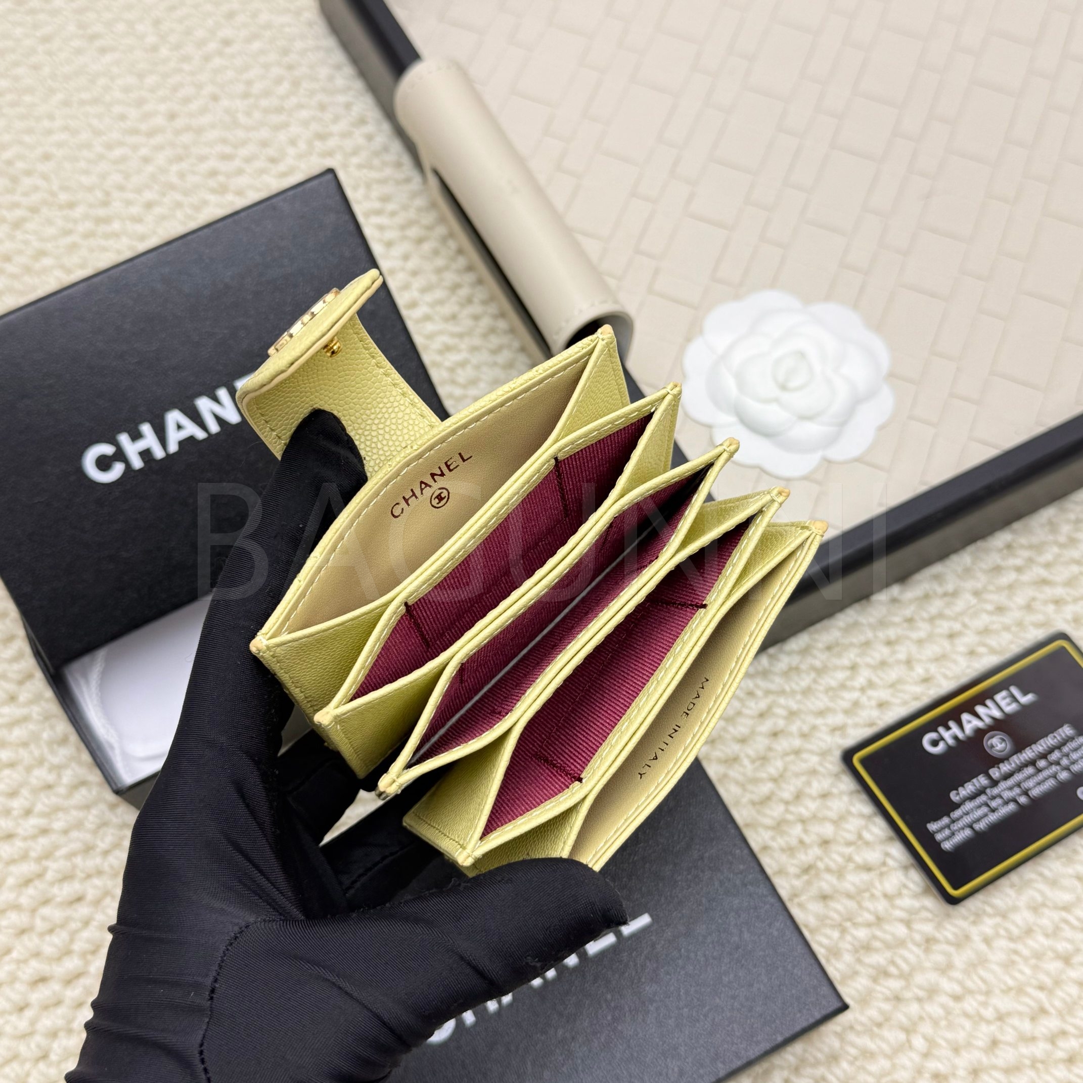 엠보싱 레더의 질감이 돋보이는 샤넬 클래식 플랩 카드지갑입니다.