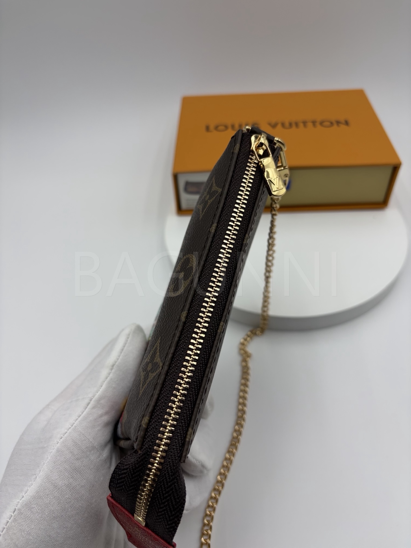 모노그램 앙프렝뜨 레더와 체인 연출 가능으로 데일리로 쓰기 좋고, 작은 소지품을 깔끔하게 정리하기 좋습니다.
