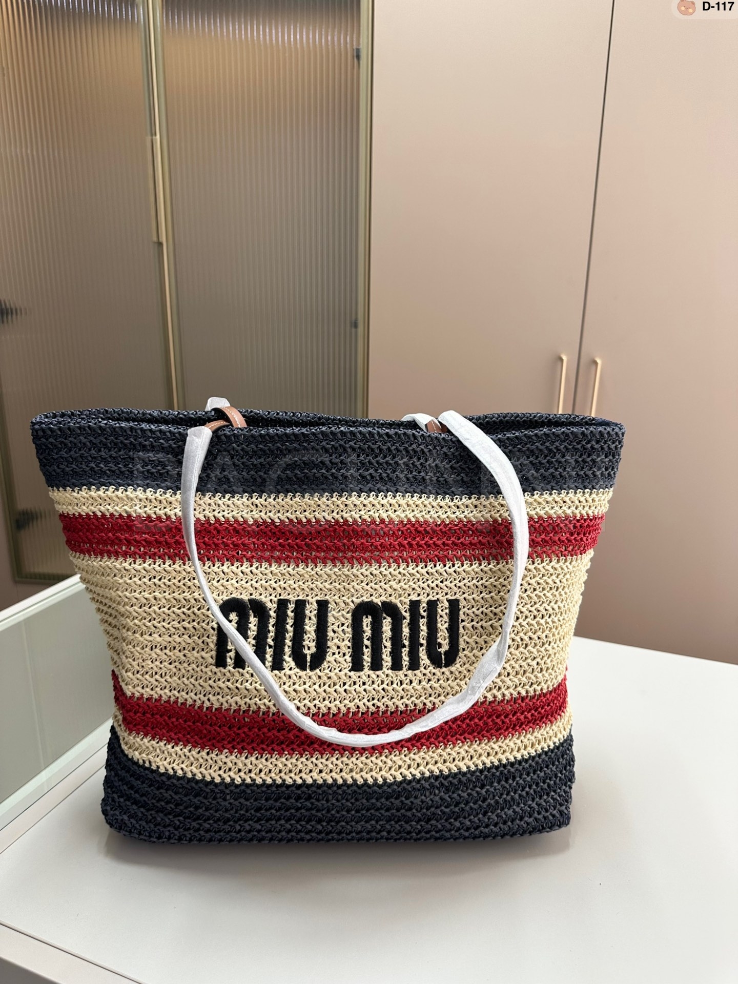 미우미우 라피아 쇼퍼백입니다. 브랜드 특유의 분위기를 편하게 즐기기 좋습니다.