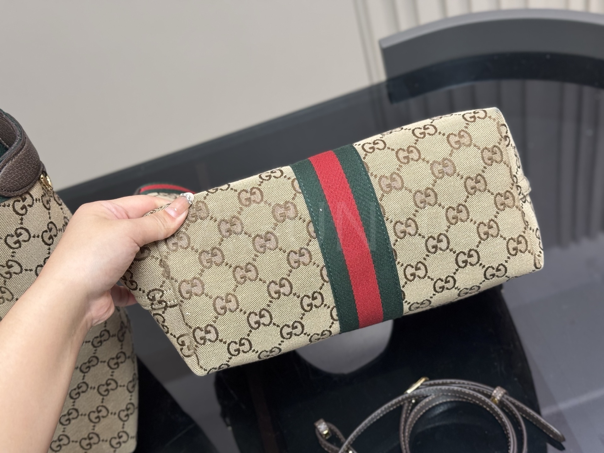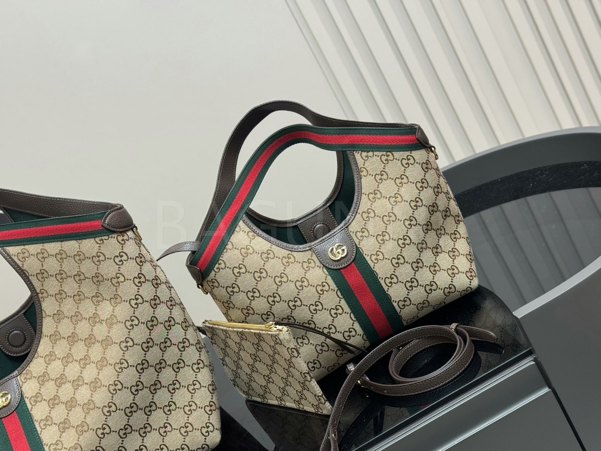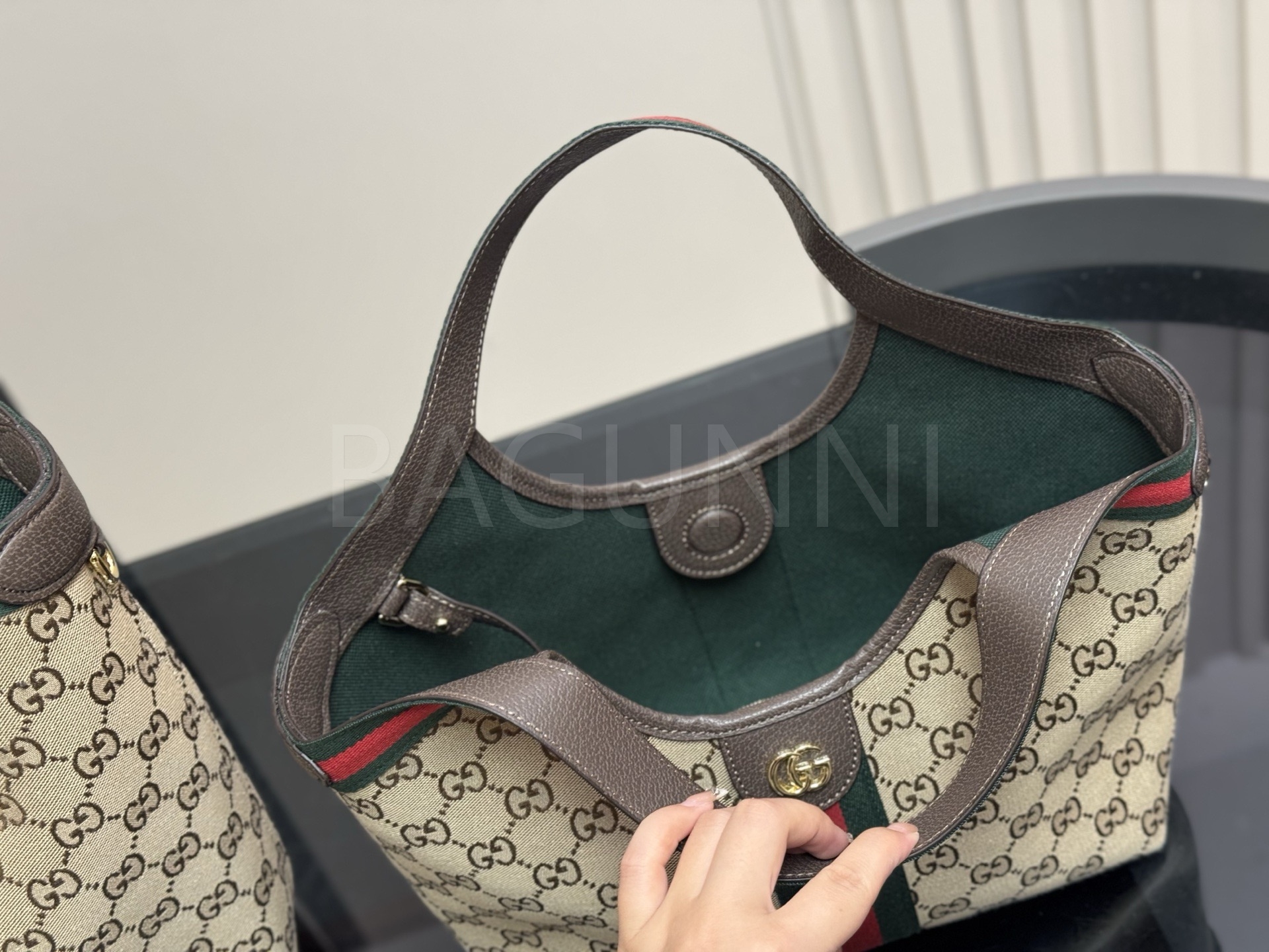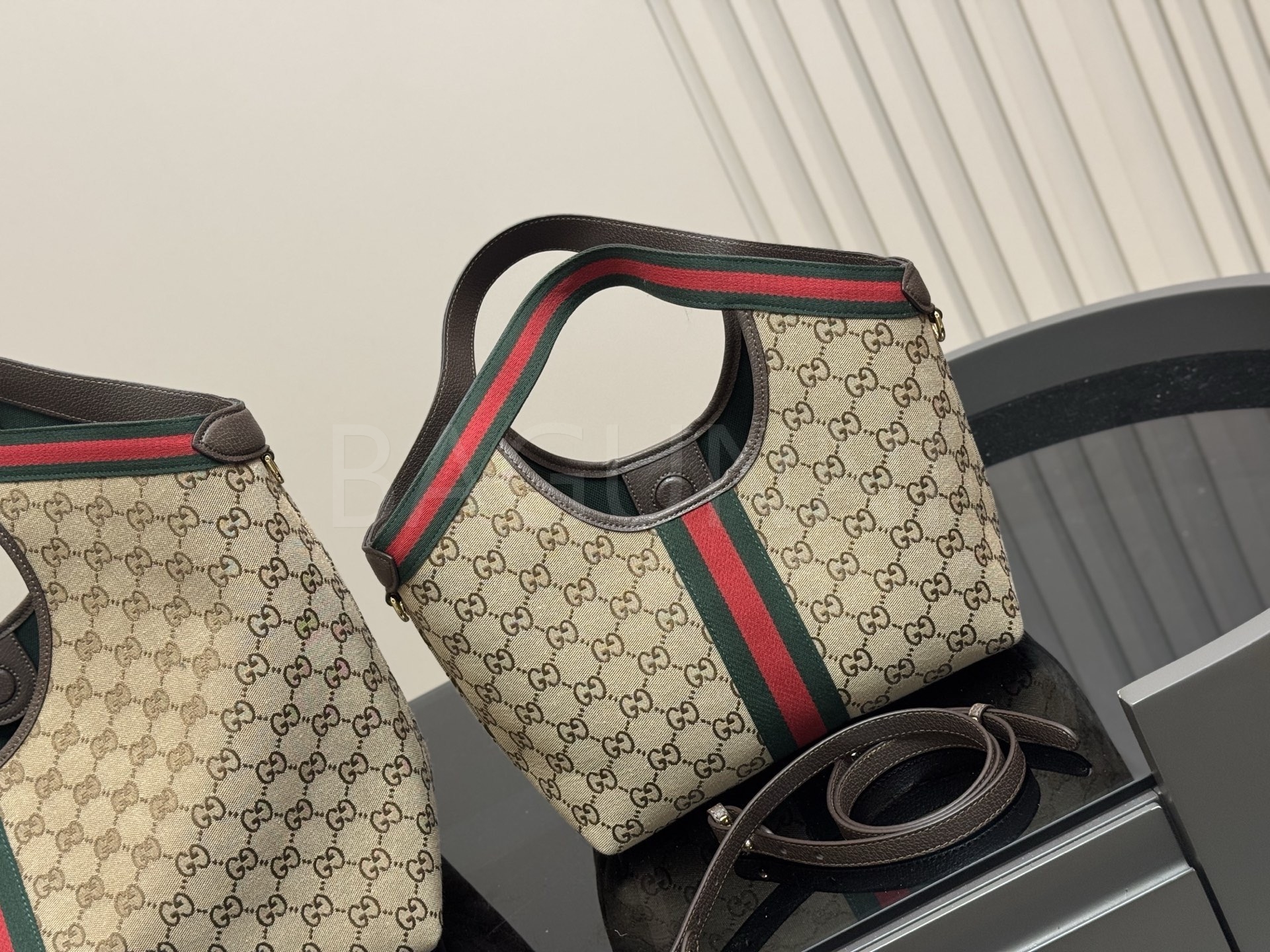 구찌 토트백은 세련된 실루엣을 담은 아이템입니다.