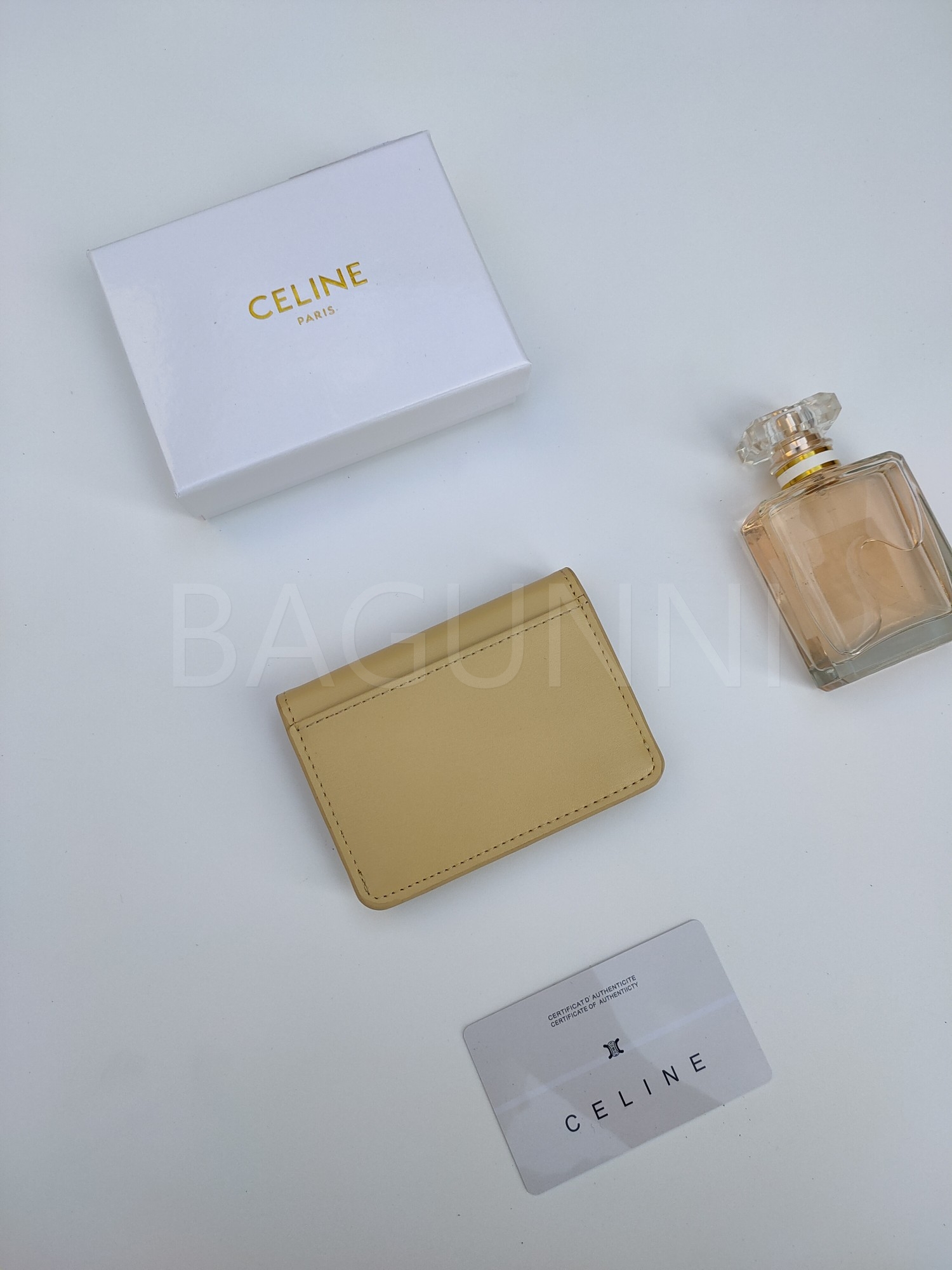 카프스킨의 질감이 돋보이는 셀린느 트리옹프 플랩 카드지갑입니다.