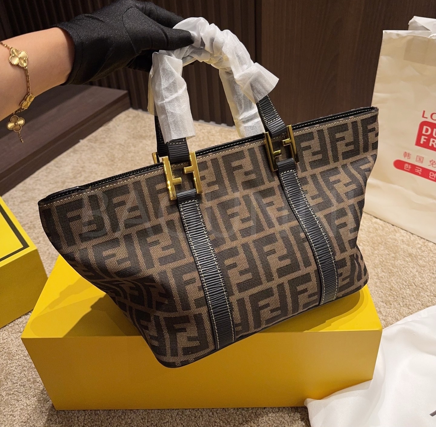 펜디 만두백입니다. 골드 톤이 어우러져 브랜드 특유의 분위기를 편하게 즐기기 좋습니다.