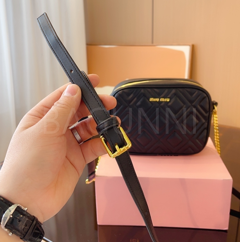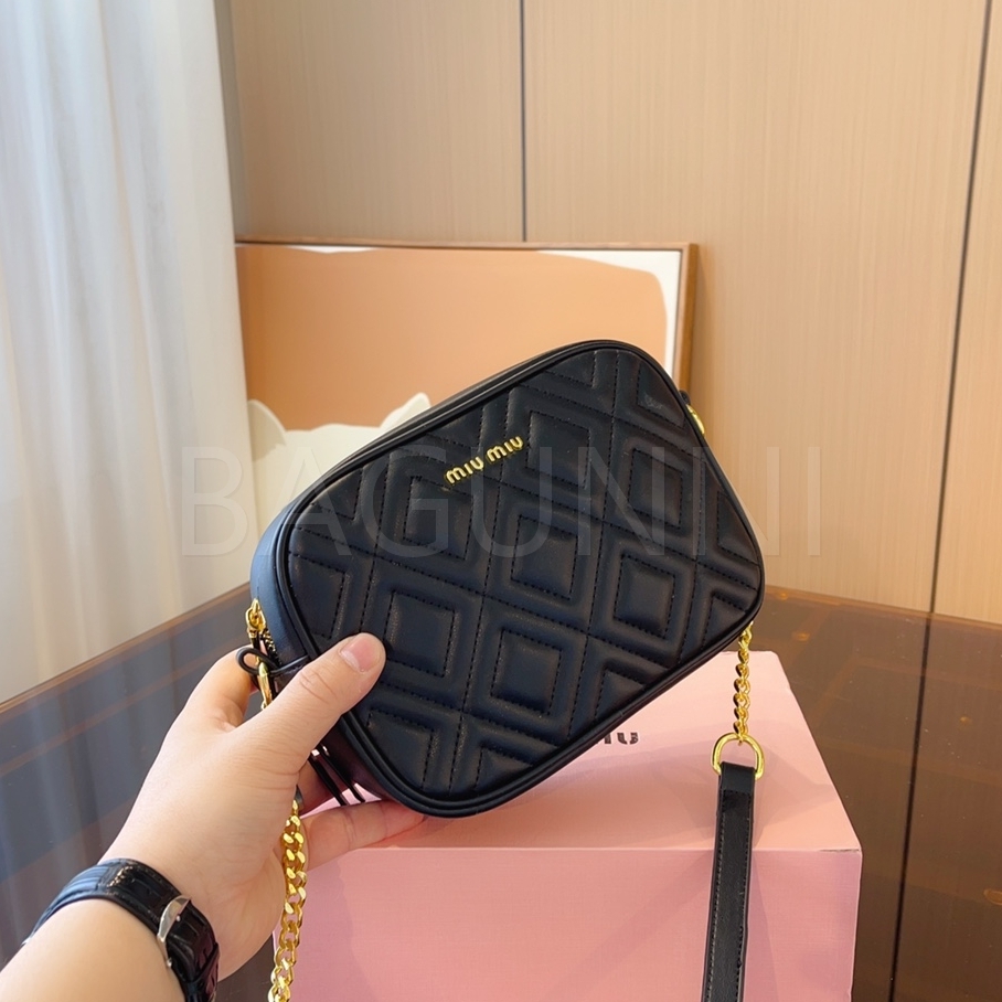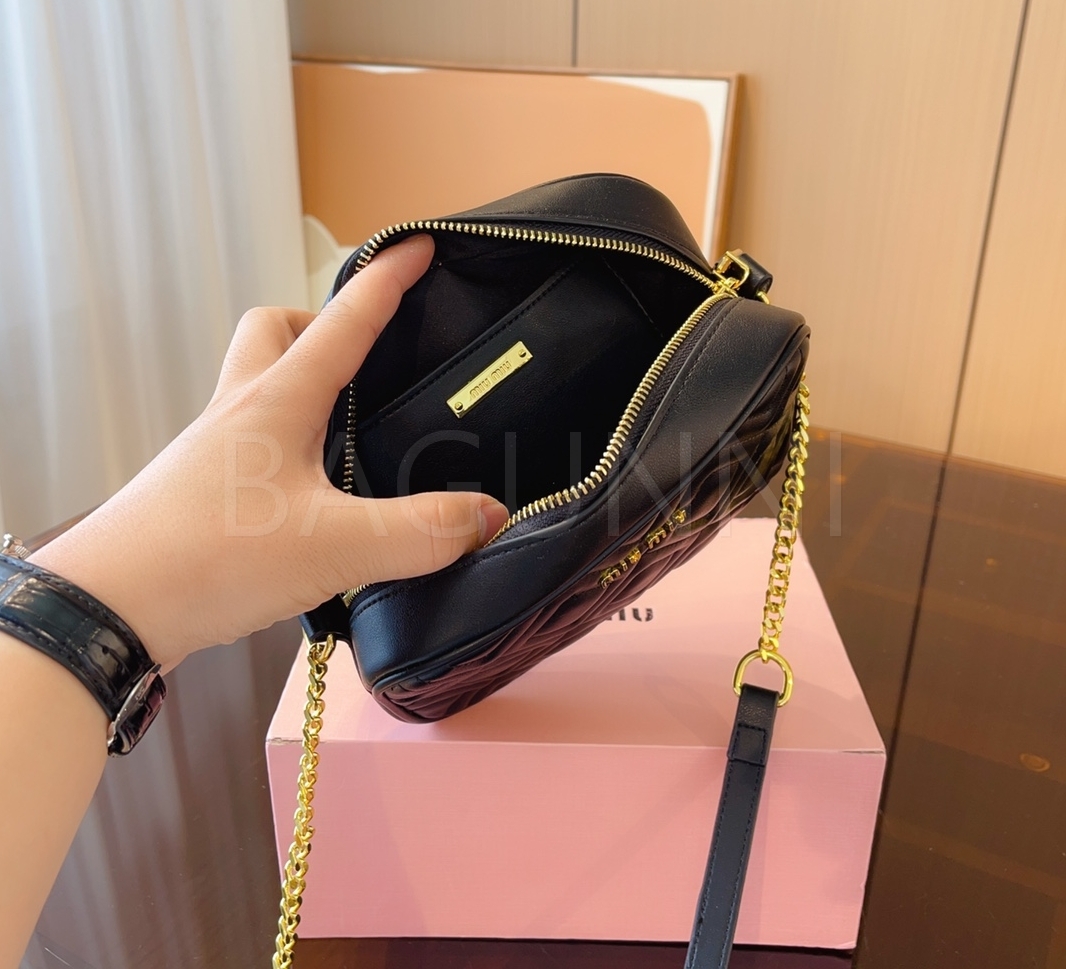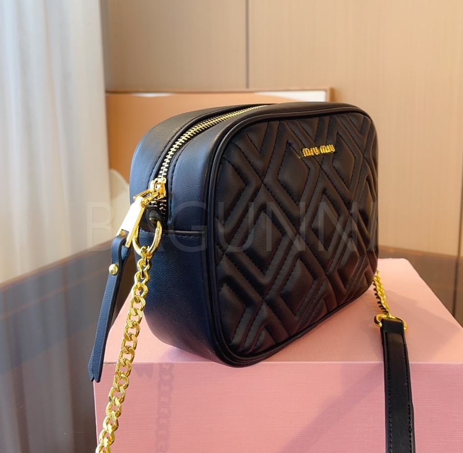 미우미우 마테라쎄 카메라백입니다. 가죽 특유의 질감이 자연스럽게 살아 있으며 브랜드 특유의 분위기를 편하게 즐기기 좋습니다.