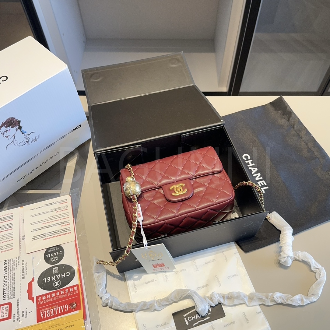 램스킨 특유의 매력이 돋보이는 샤넬 금볼 스퀘어 플랩 백입니다.