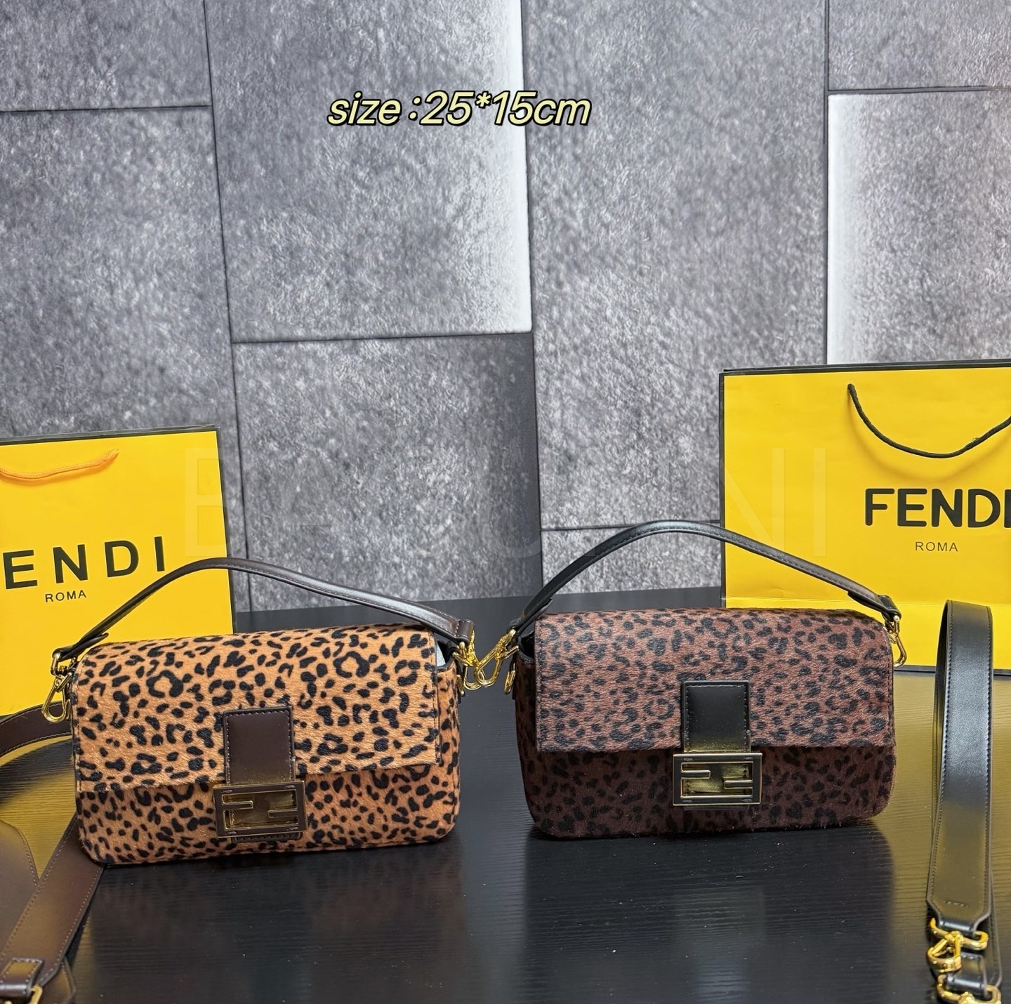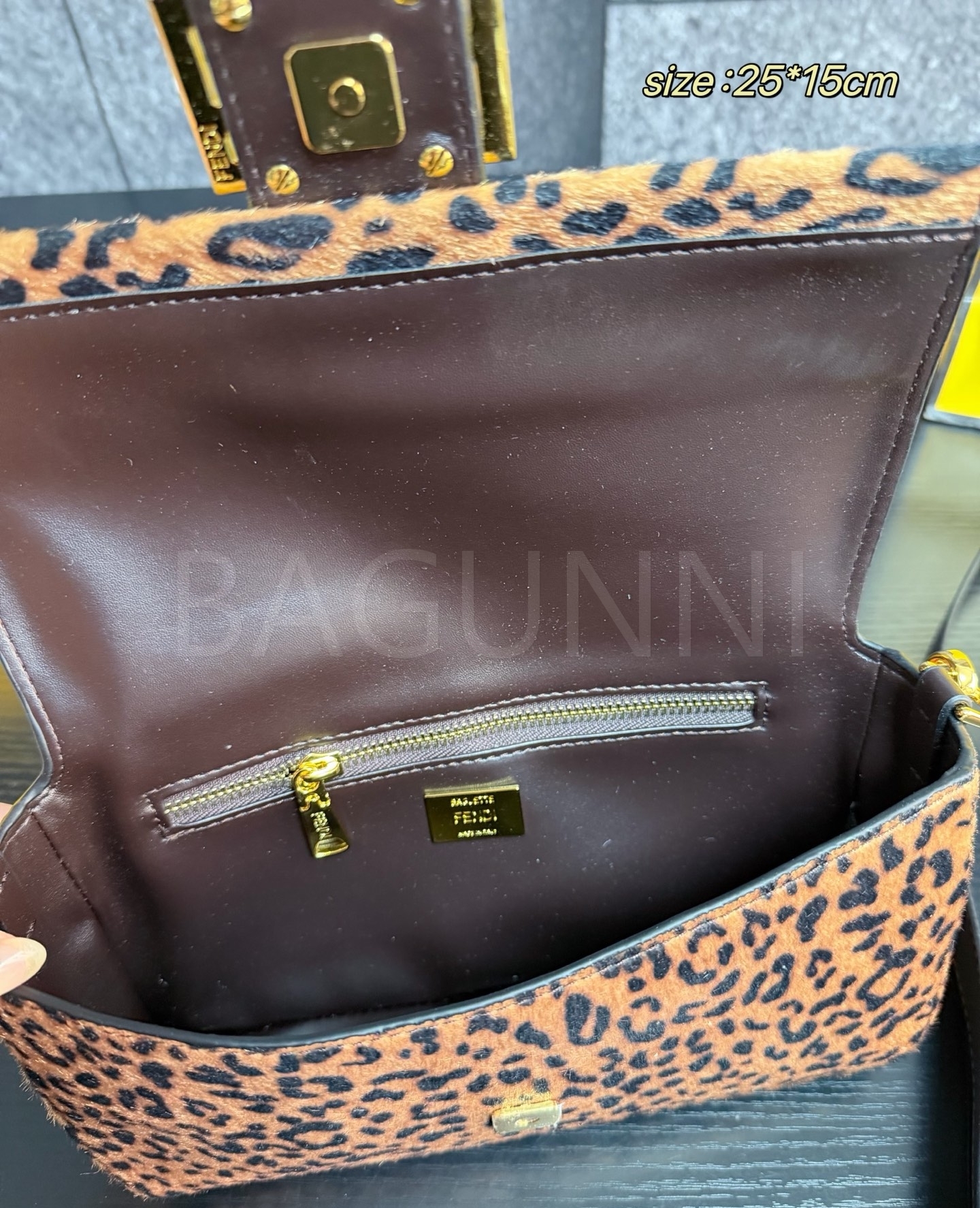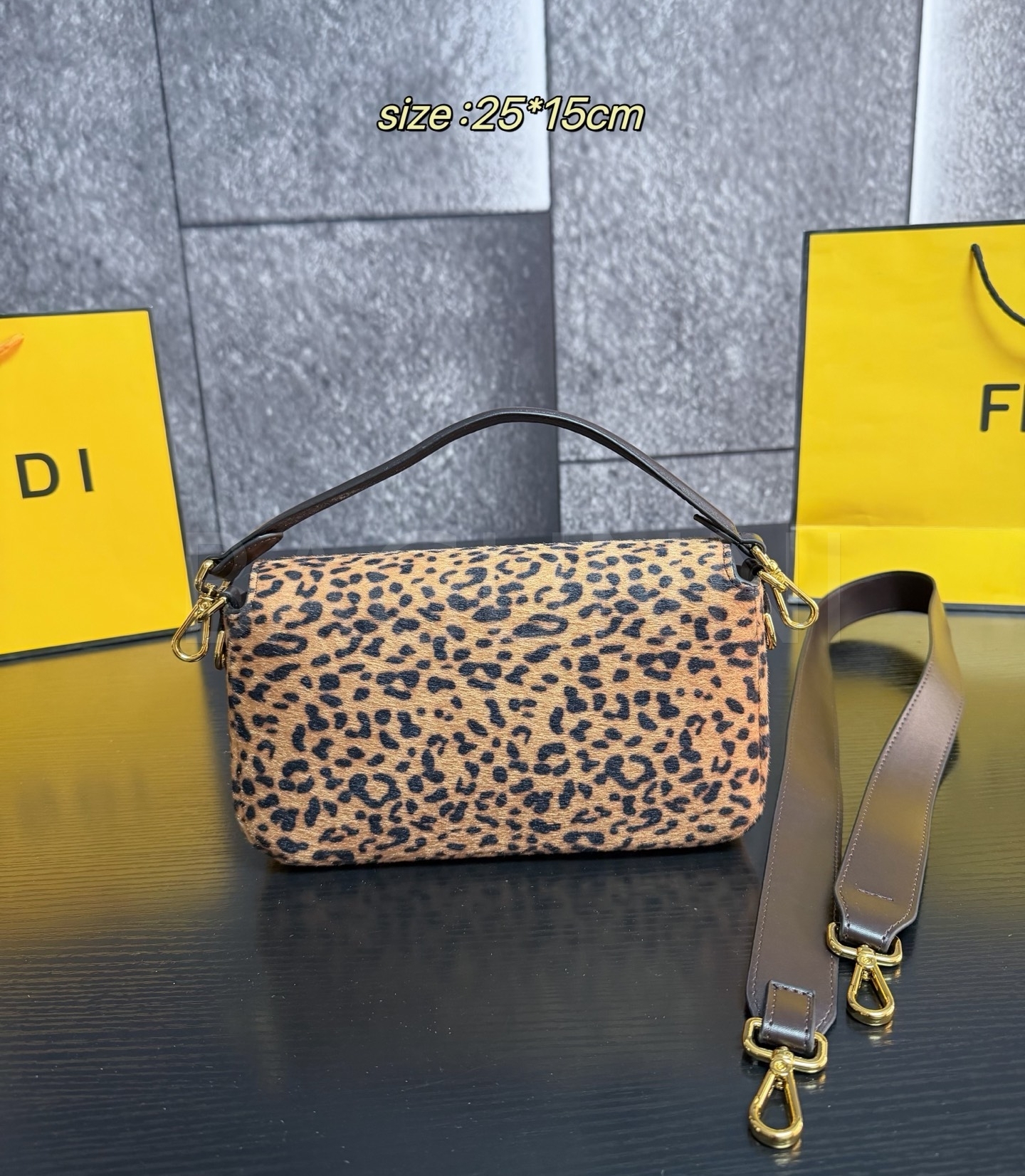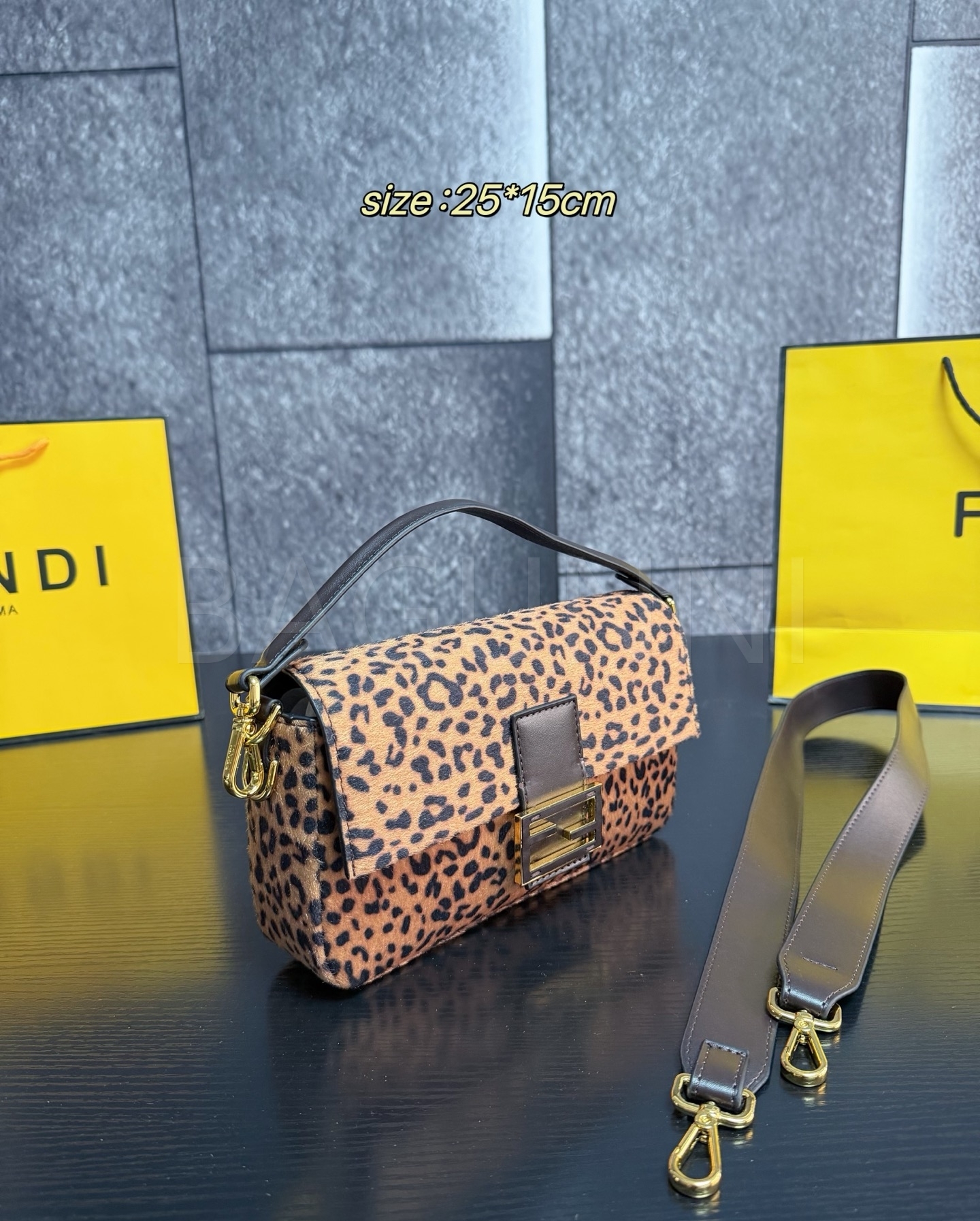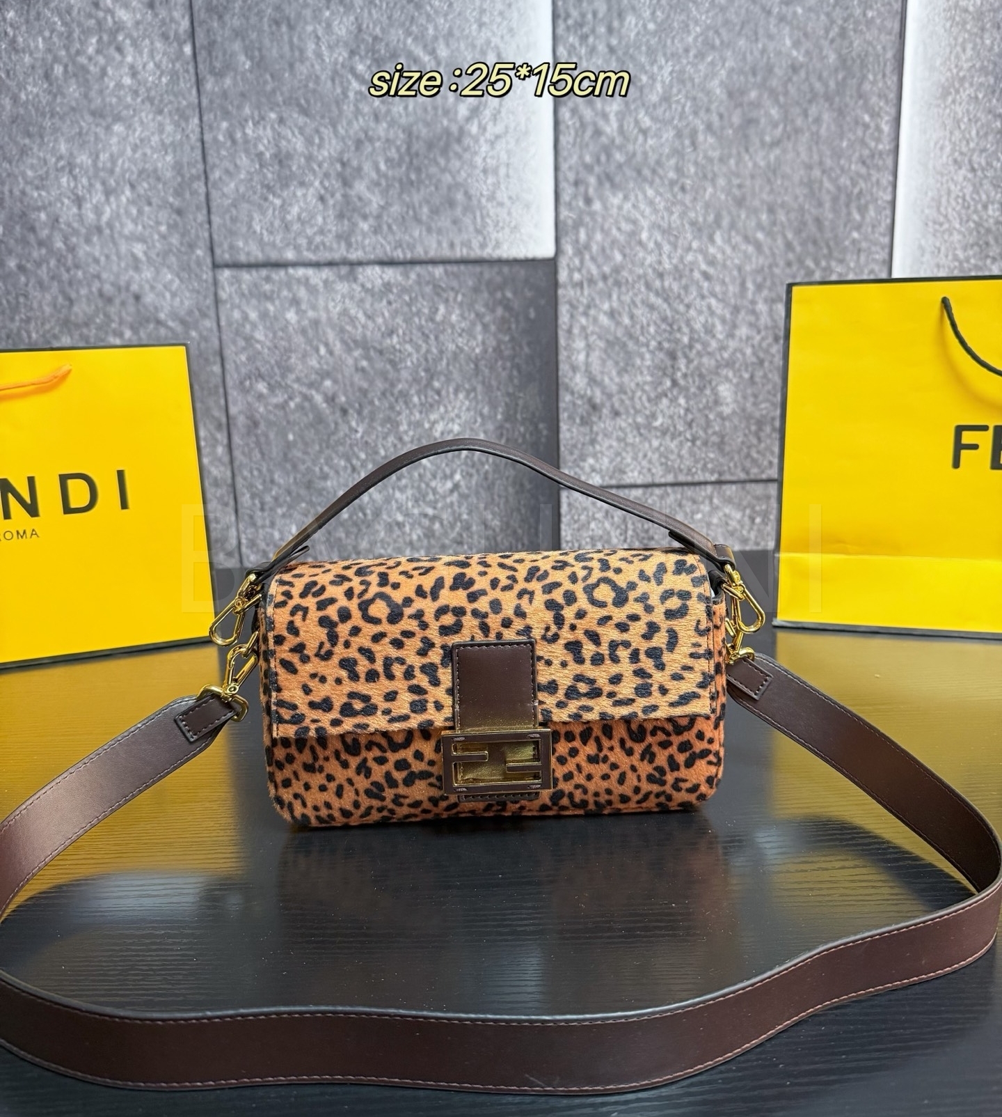 펜디 레오파드 미니 바게트백