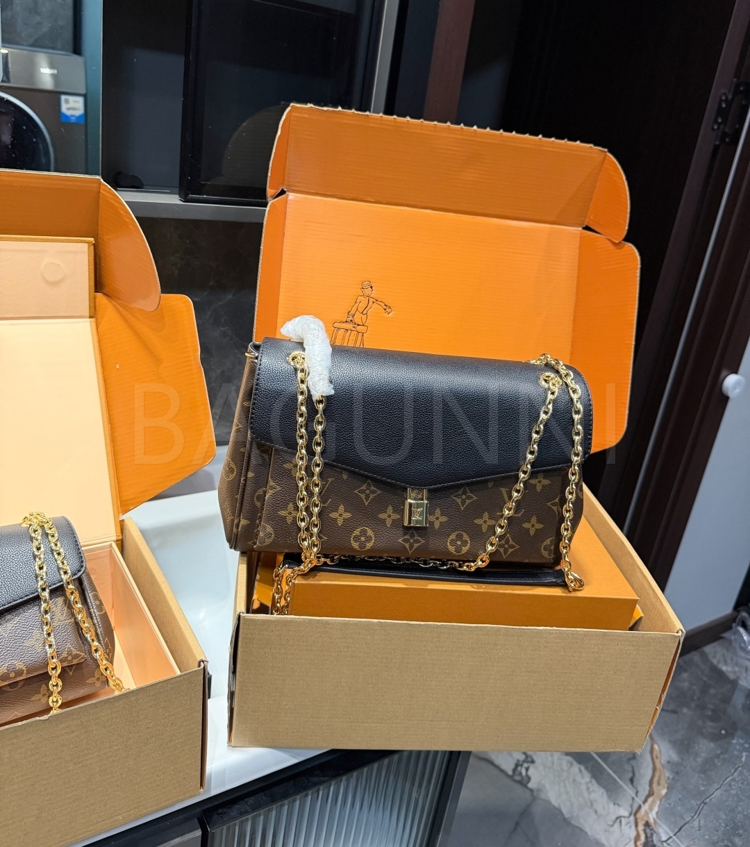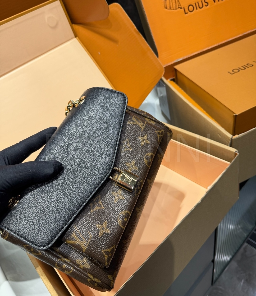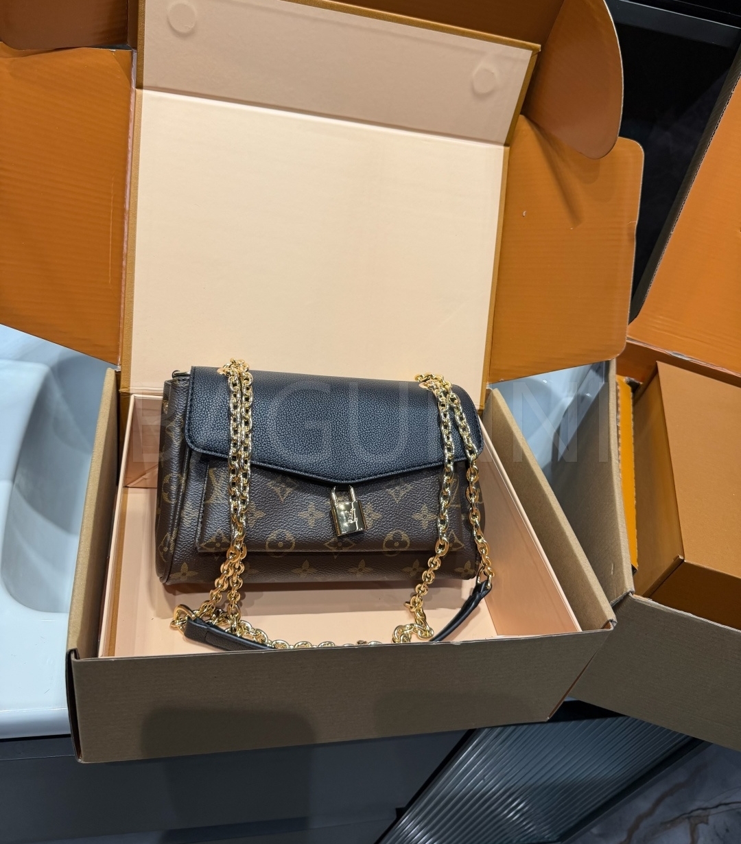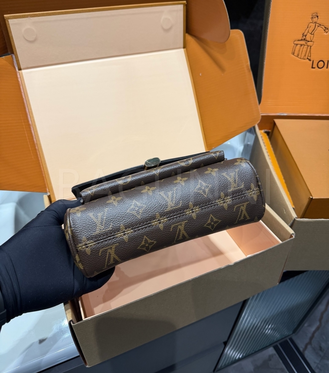 모노그램 패턴, 탑핸들 디테일이 조화롭게 어우러져 완성도를 높여줍니다