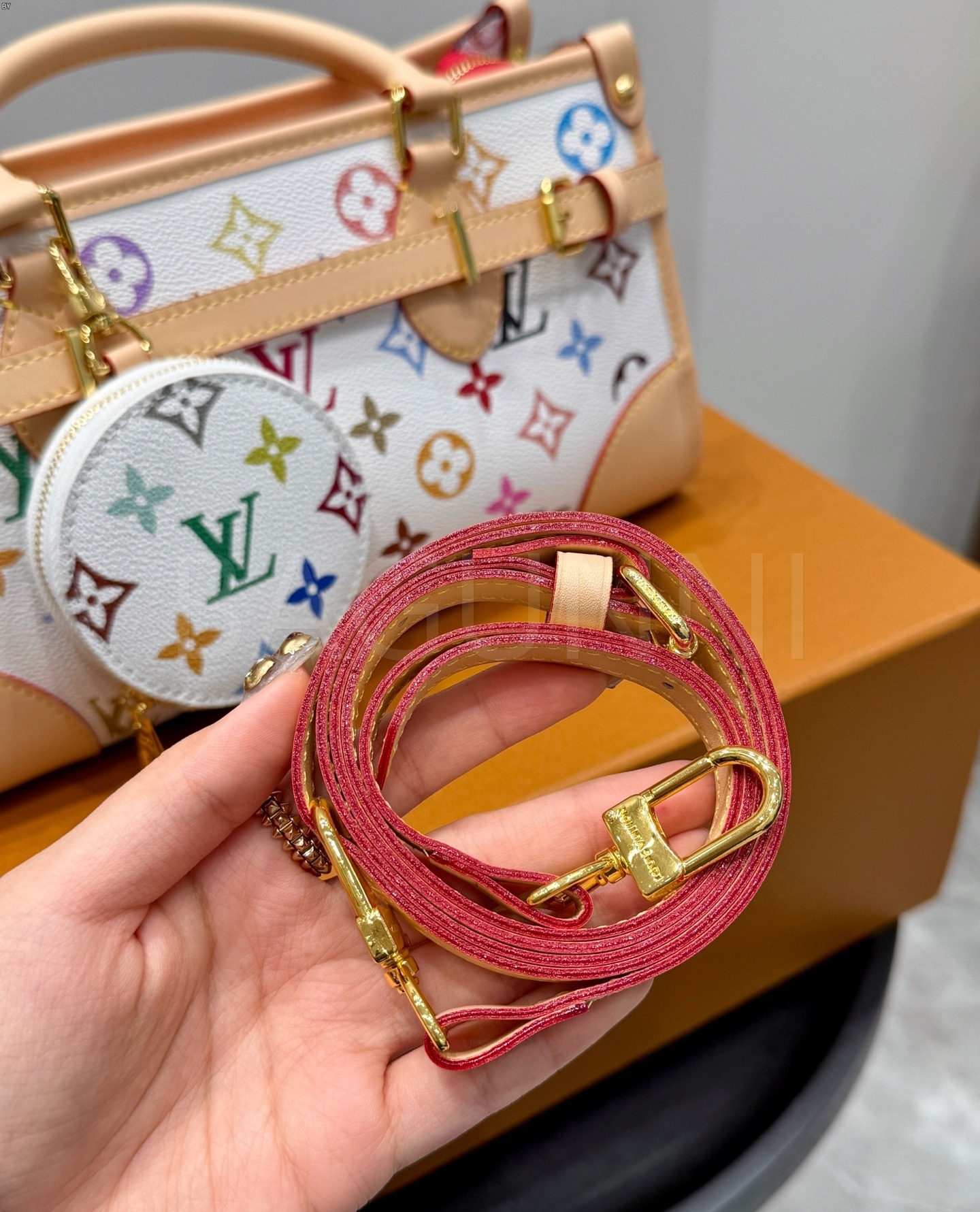 루이비통 특유의 세련된 분위기가 돋보이는 루이비통 멀티컬러 탑핸들 숄더백입니다.