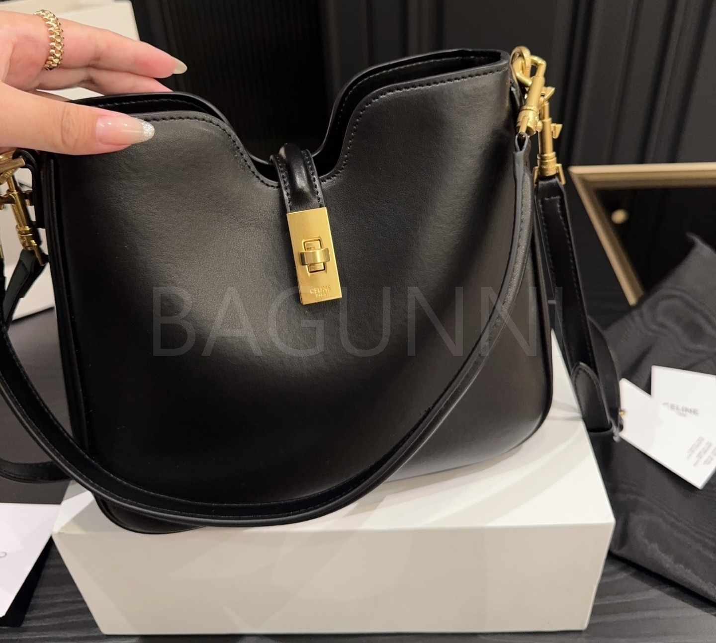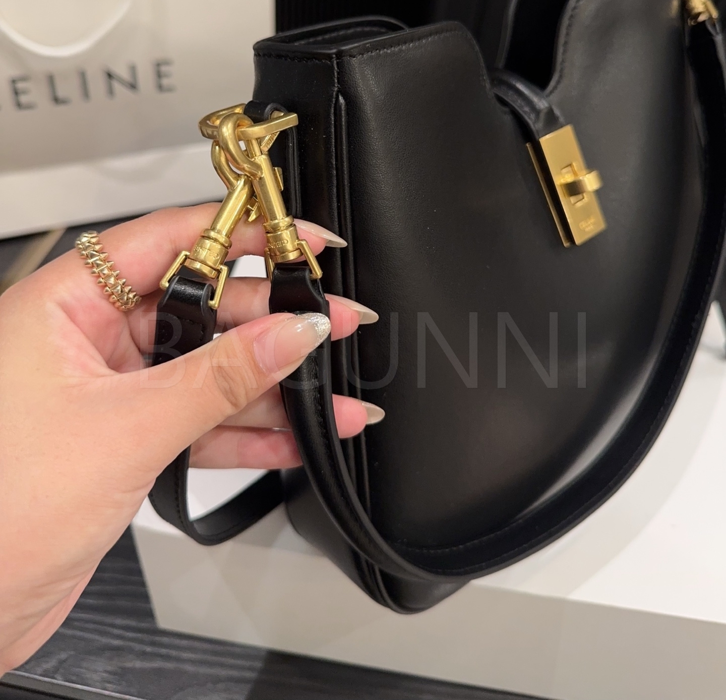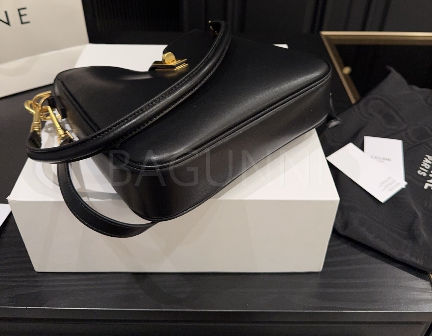 셀린느 카밀 숄더백입니다. 가죽 특유의 질감이 자연스럽게 살아 있으며 브랜드 특유의 분위기를 편하게 즐기기 좋습니다.