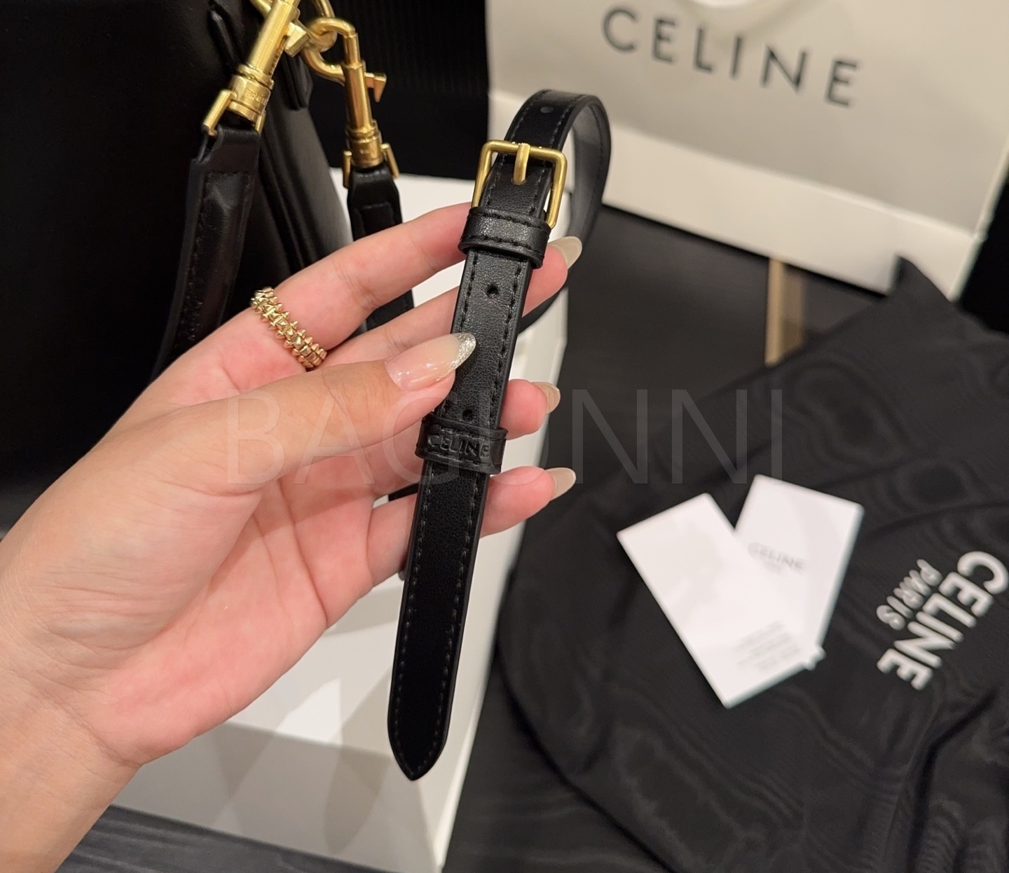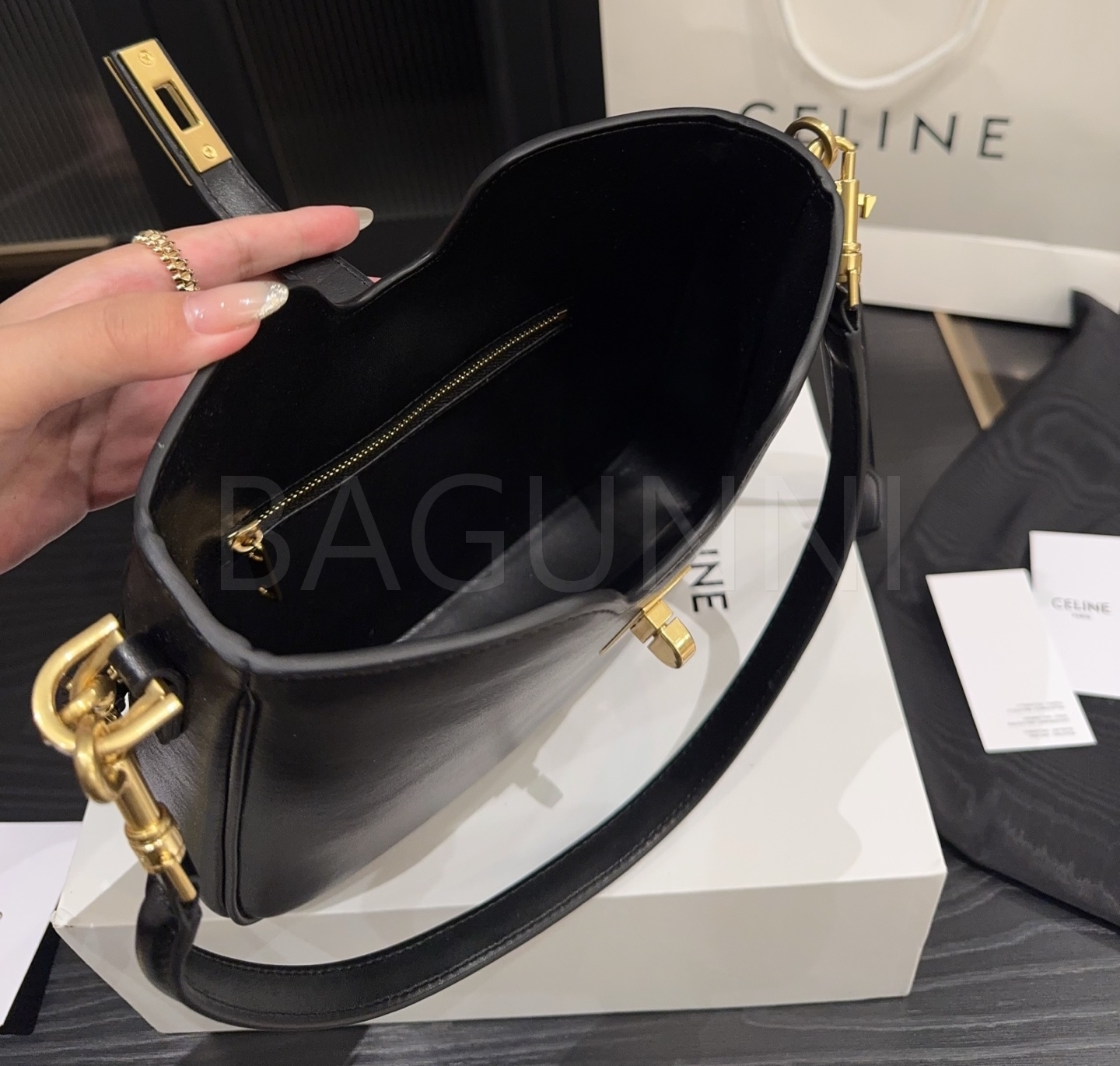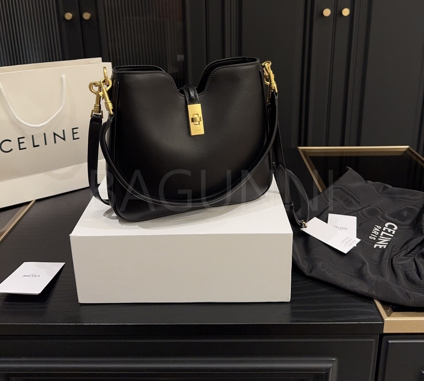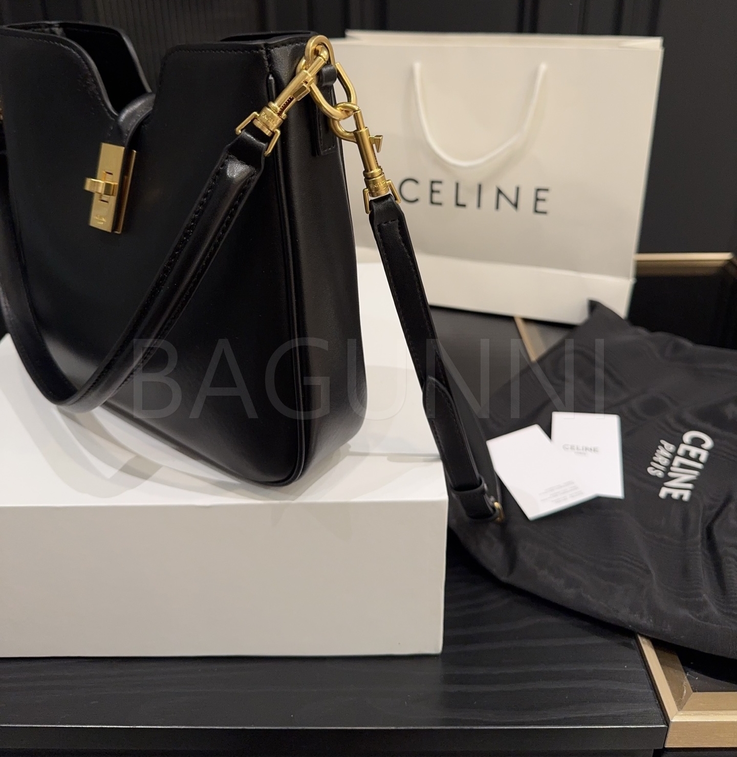 셀린느 카밀 숄더백입니다. 가죽 특유의 질감이 자연스럽게 살아 있으며 브랜드 특유의 분위기를 편하게 즐기기 좋습니다.