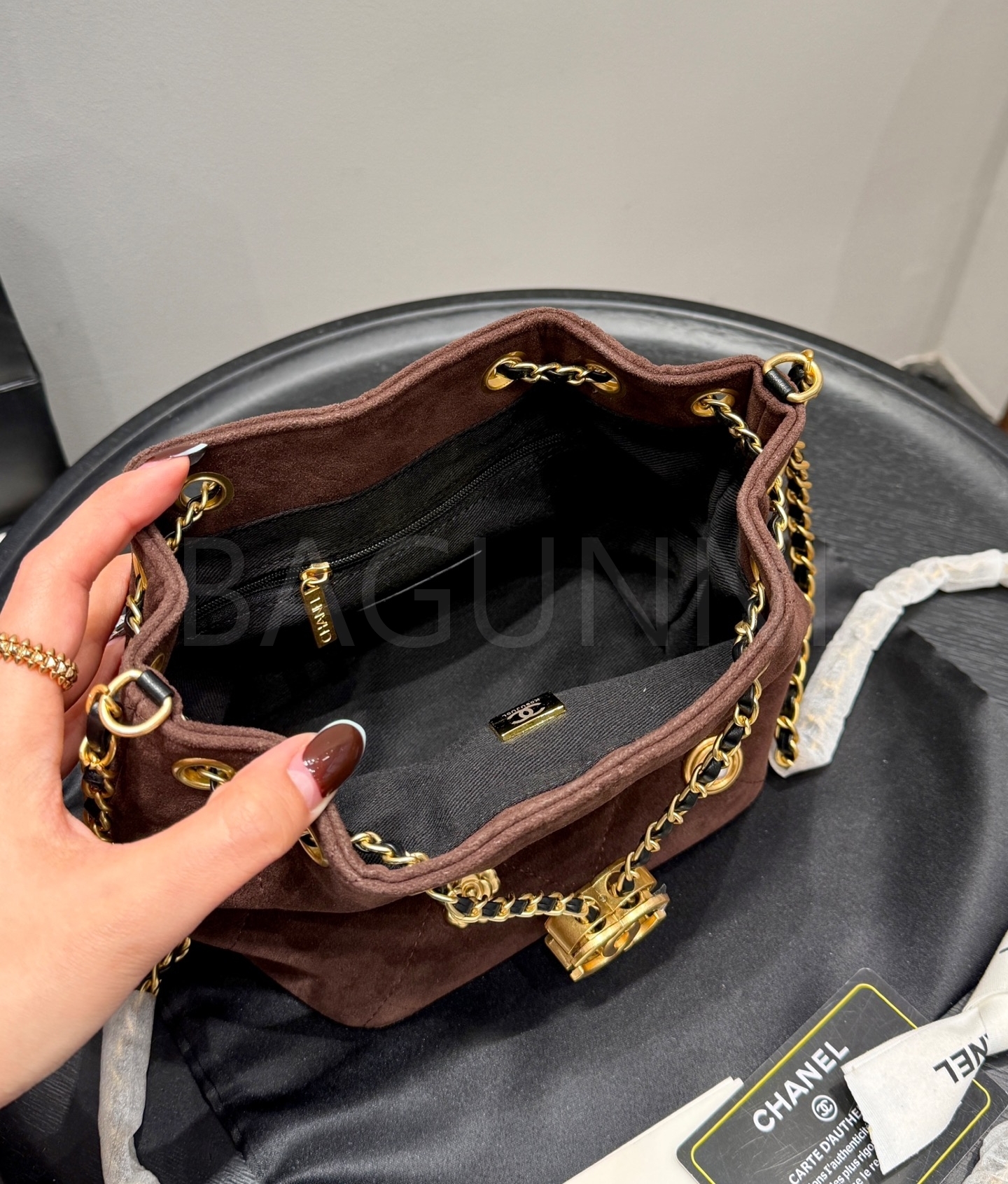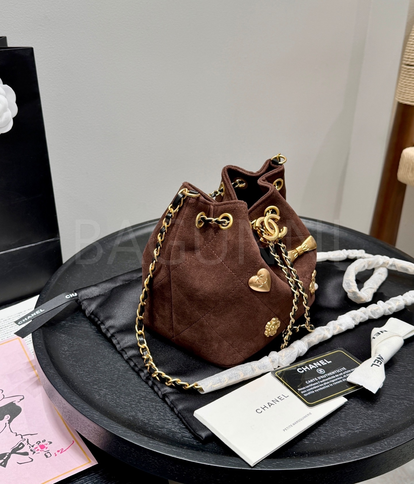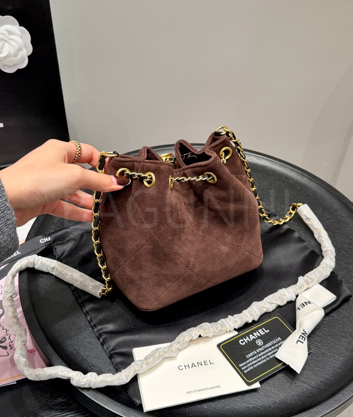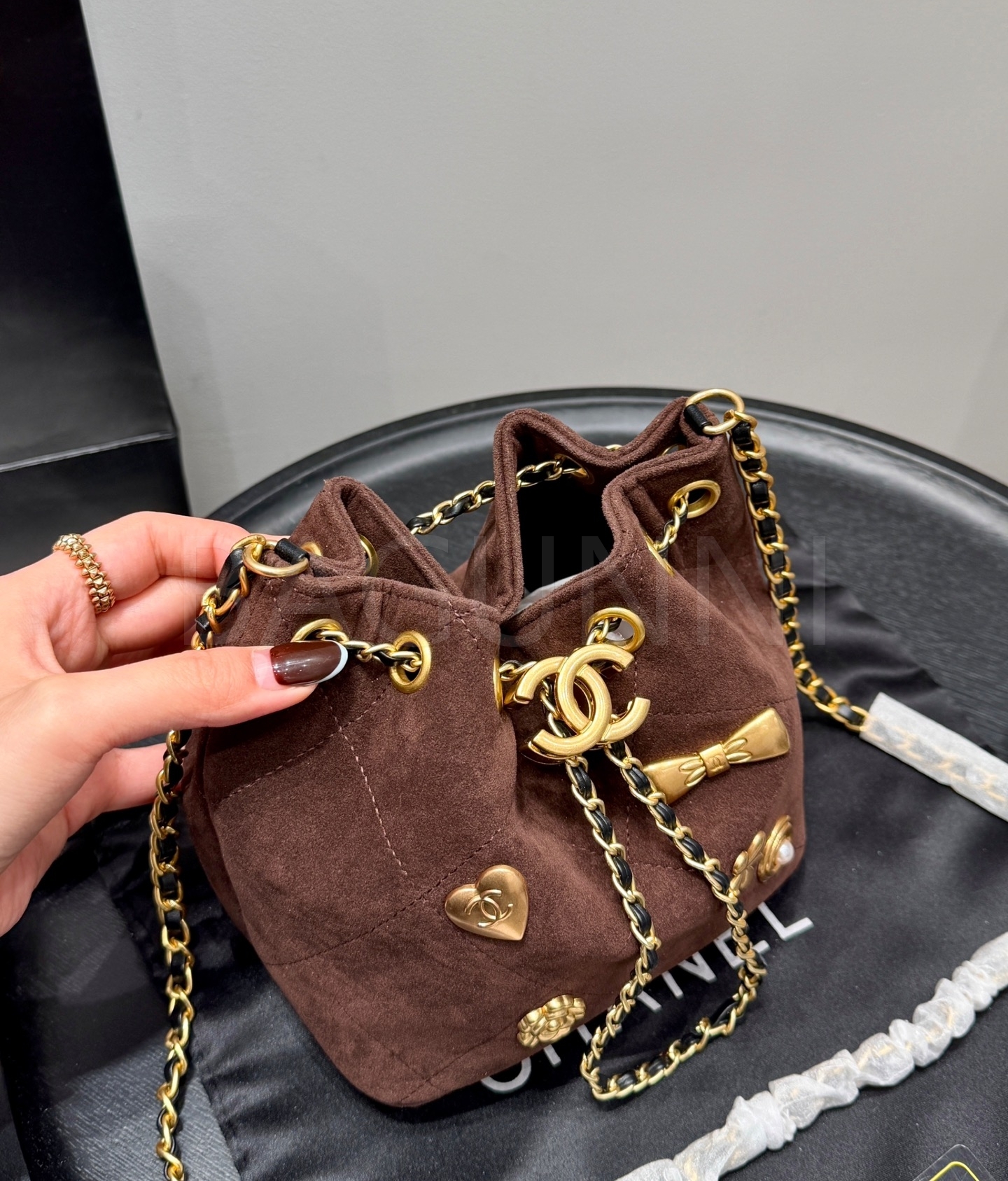샤넬 보우 드로스트링 버킷 백은 세련된 실루엣을 담은 아이템입니다.