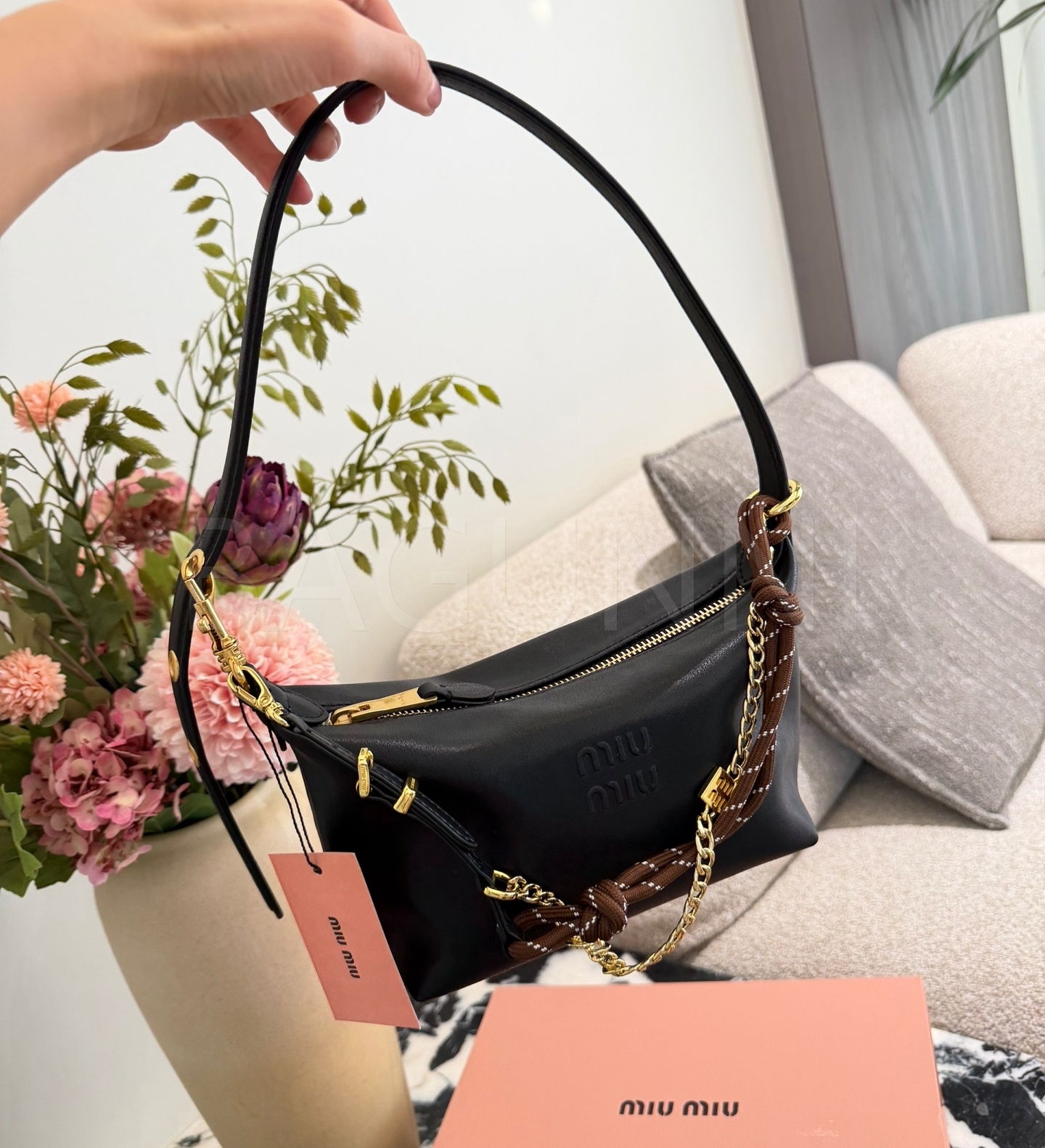 미우미우 나파 레더 박스 숄더백