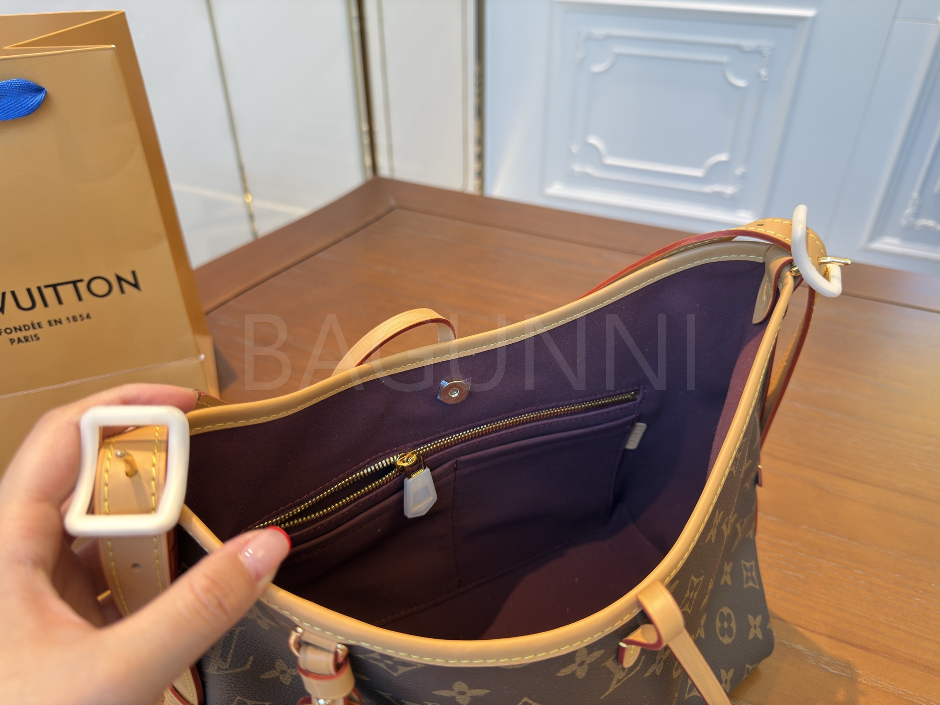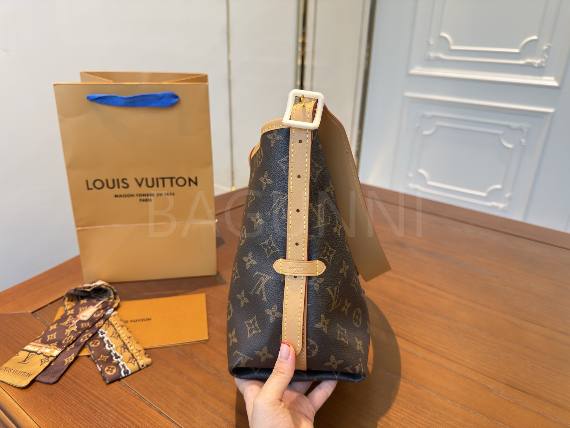 루이비통 특유의 세련된 분위기가 돋보이는 루이비통 캐리올 숄더백입니다.