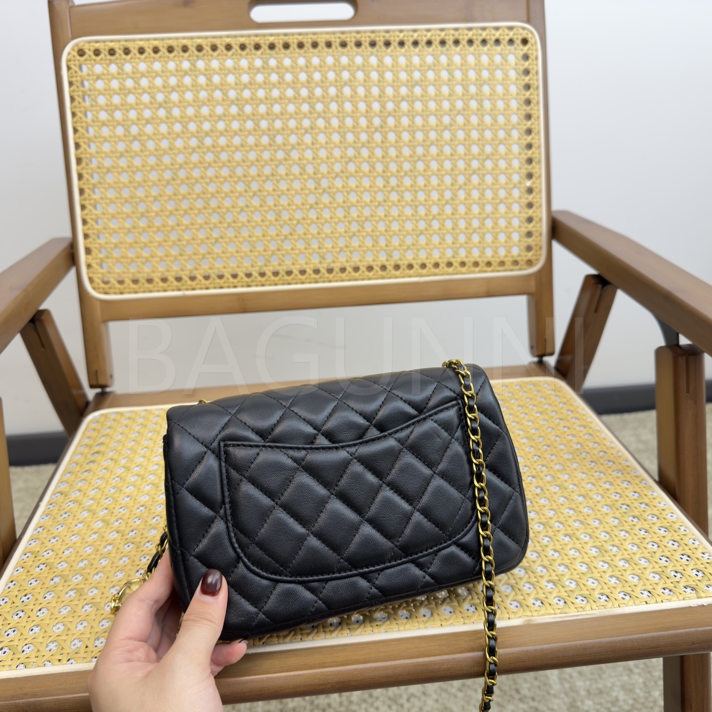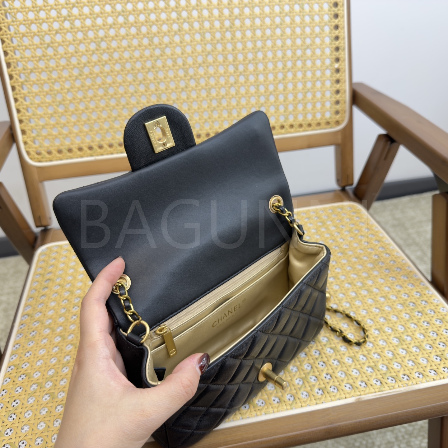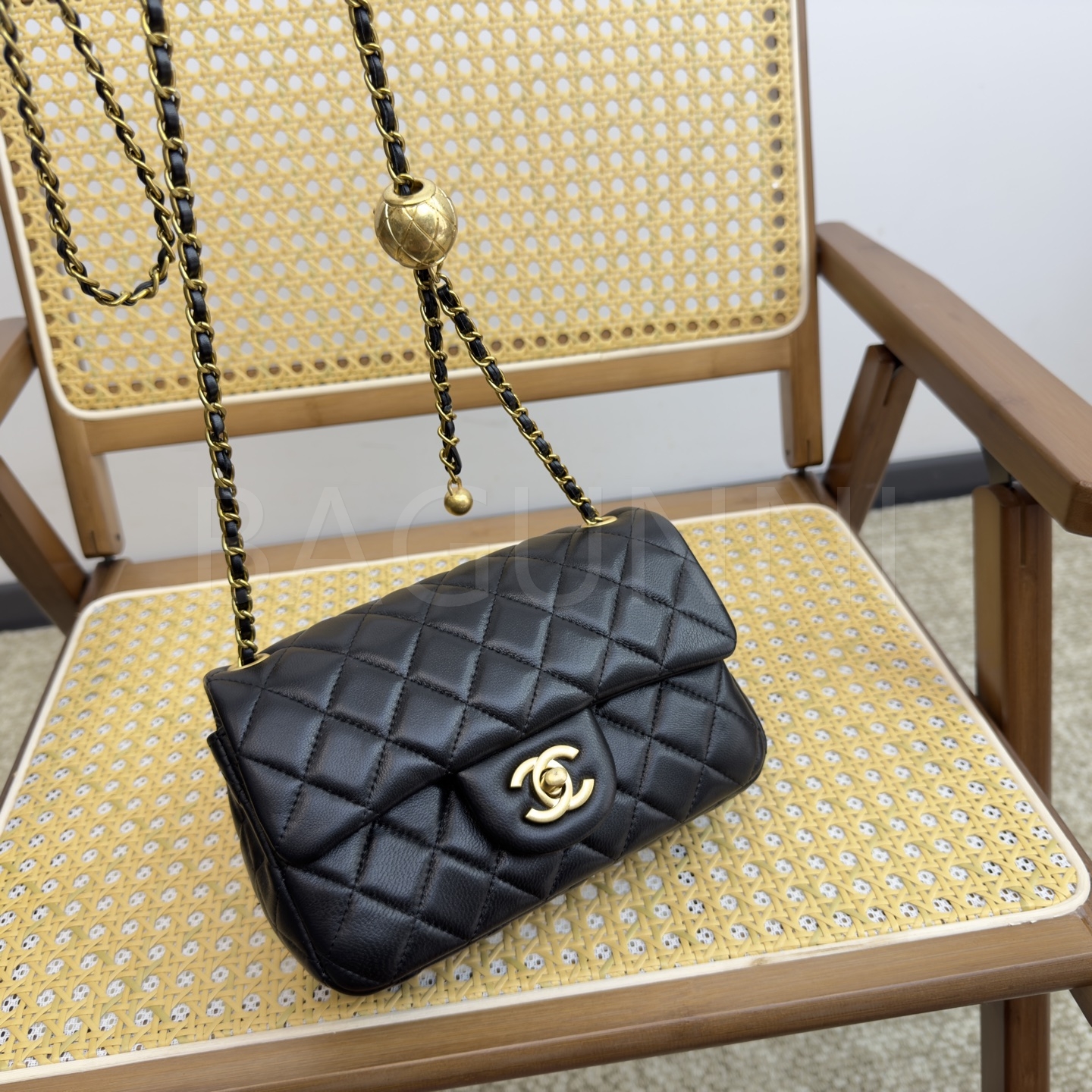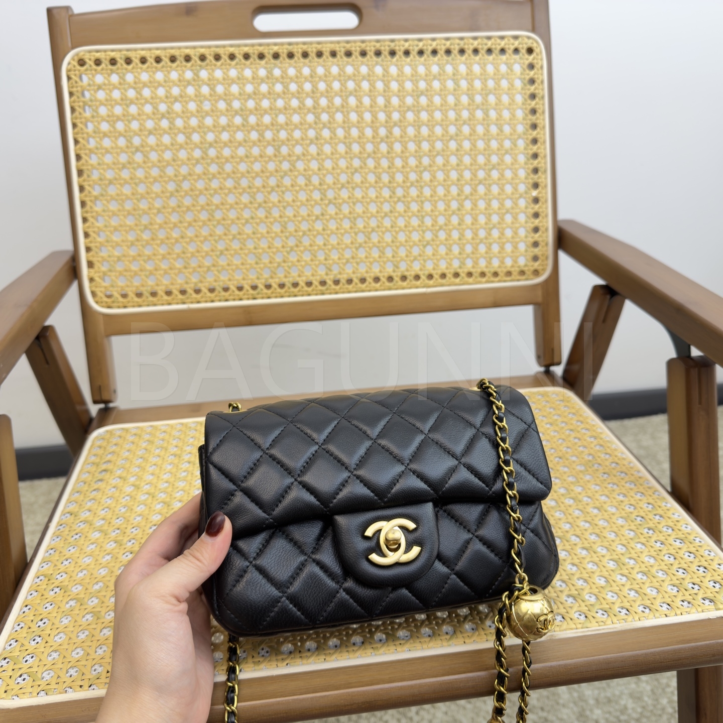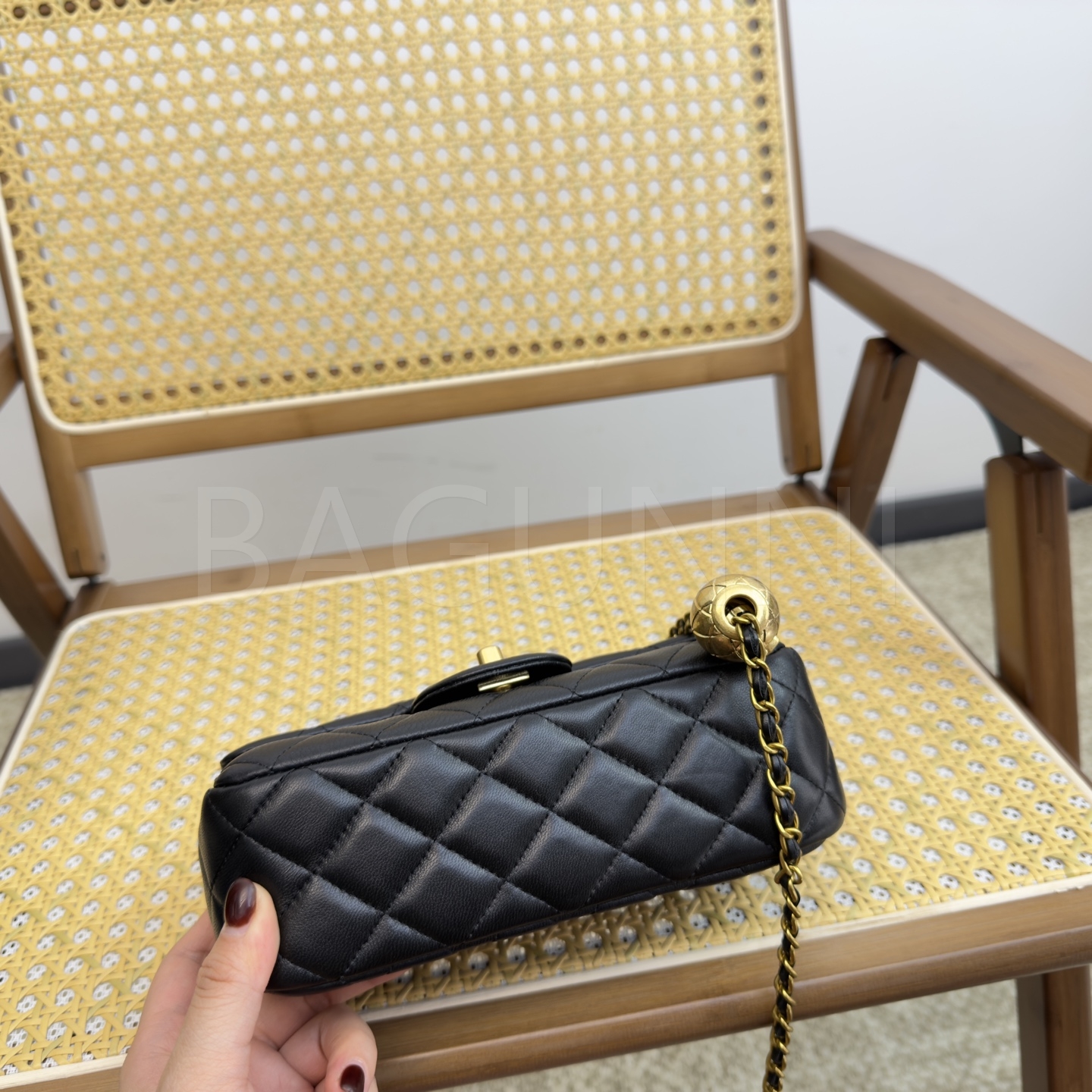 램스킨 특유의 매력이 돋보이는 샤넬 금볼 스퀘어 플랩 백입니다.