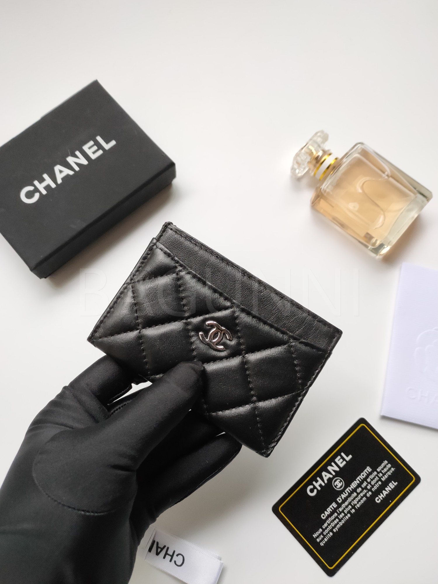 샤넬 특유의 무드가 자연스럽게 살아있는 클래식 플랩 카드지갑입니다.