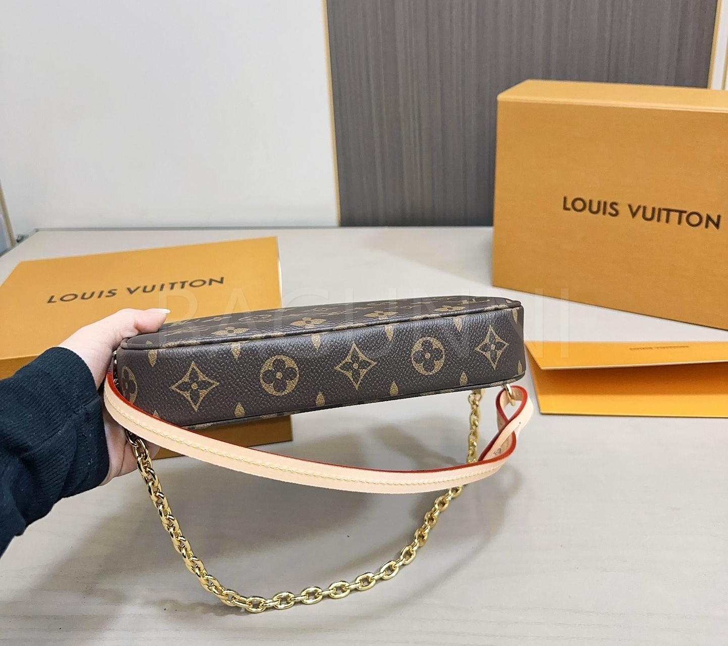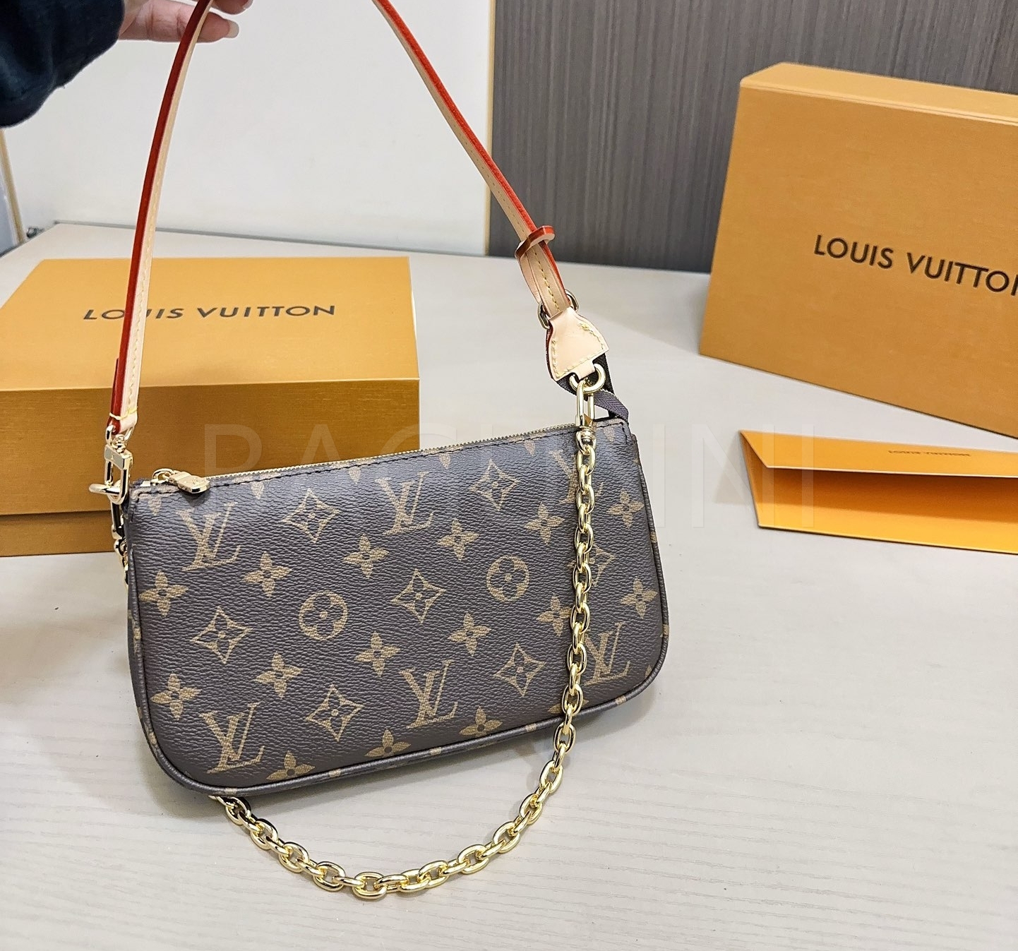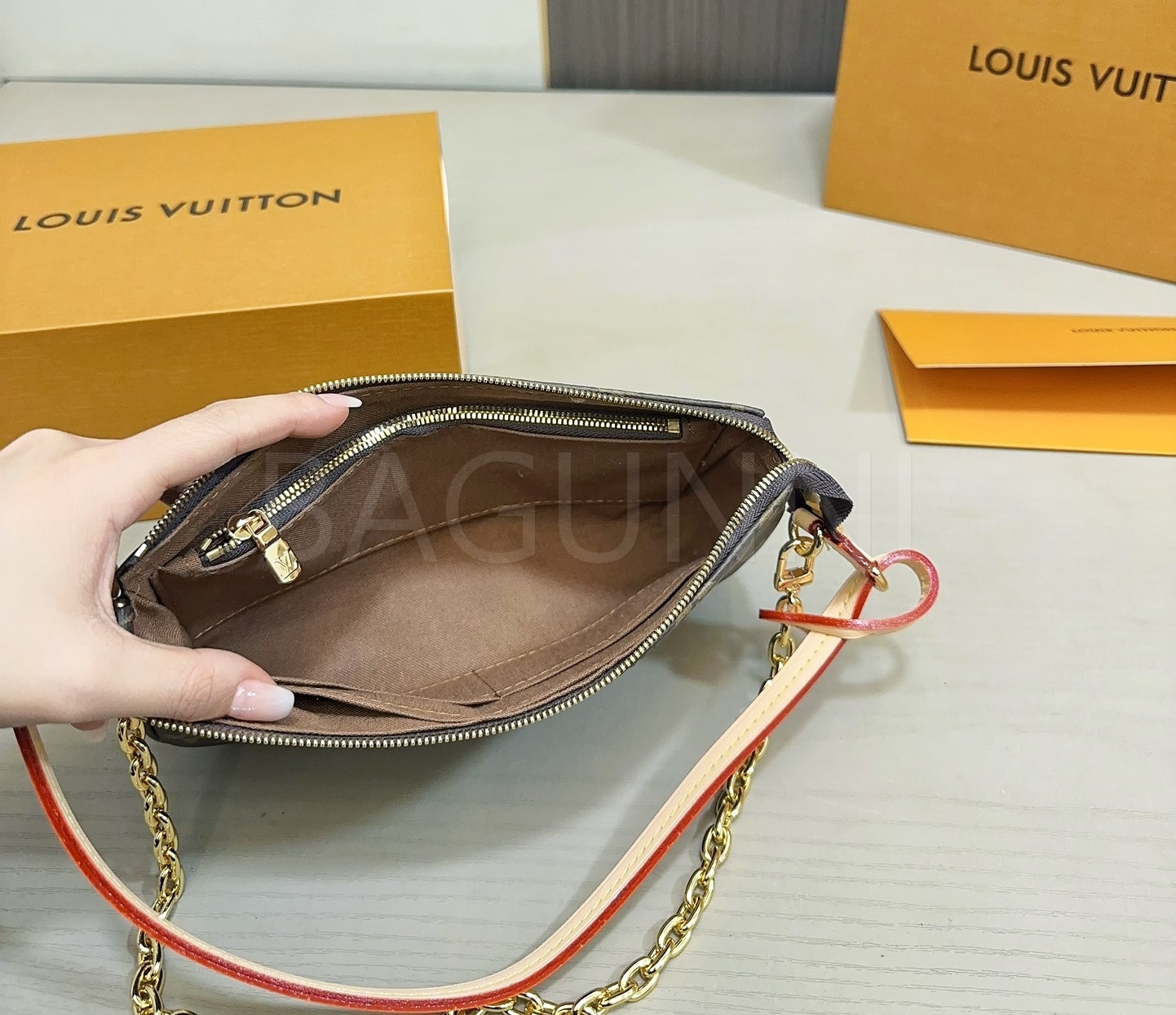 클래식한 캔버스 무드가 돋보이는 루이비통 숄더 파우치입니다.