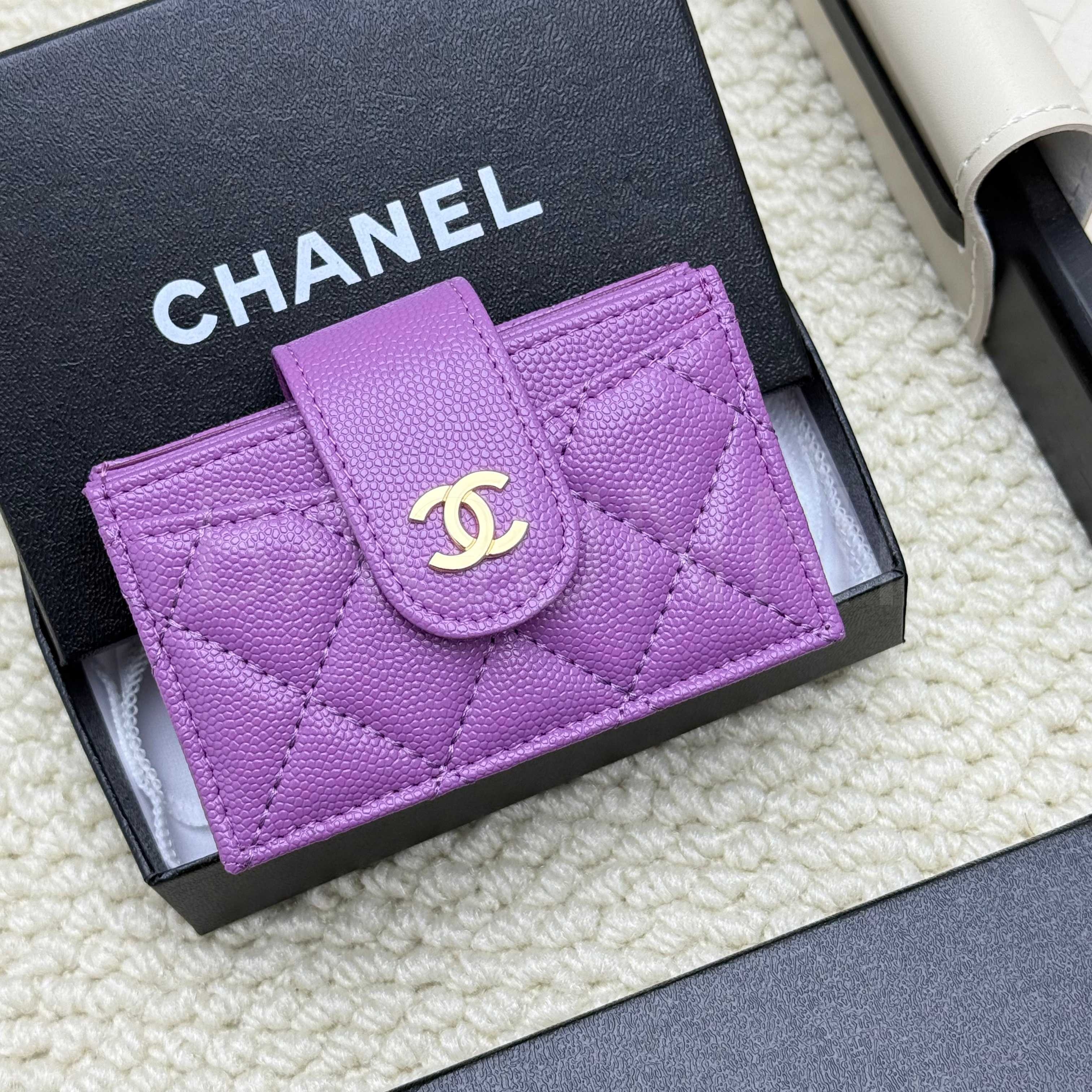 엠보싱 레더의 질감이 돋보이는 샤넬 클래식 플랩 카드지갑입니다.