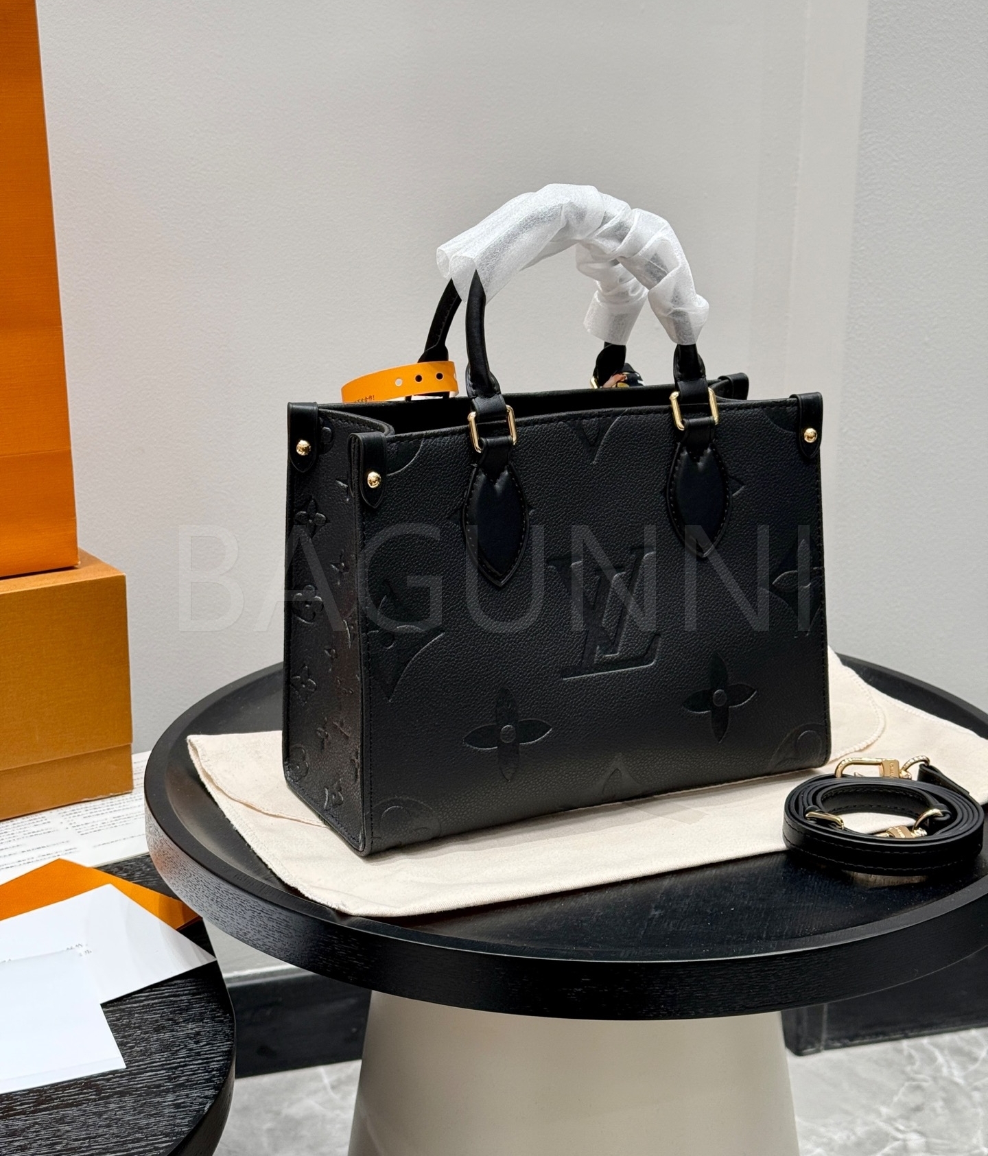 입체적인 엠보싱 가죽 질감이 매력적인 루이비통 앙프렝뜨 온더고 토트백입니다.