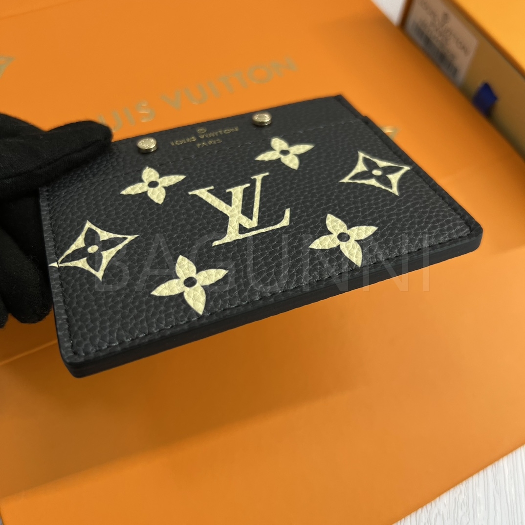 모노그램 앙프렝뜨 레더의 질감이 돋보이는 루이비통 포켓 오거나이저 카드홀더입니다.