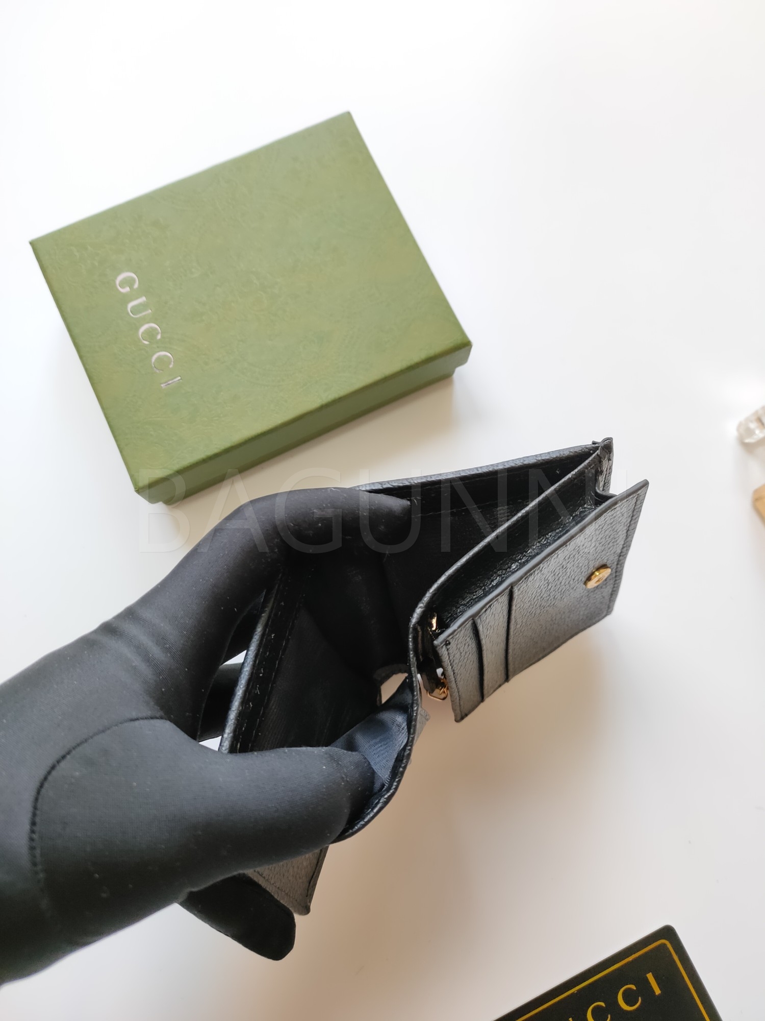 카프스킨의 질감이 돋보이는 구찌 카드지갑입니다.