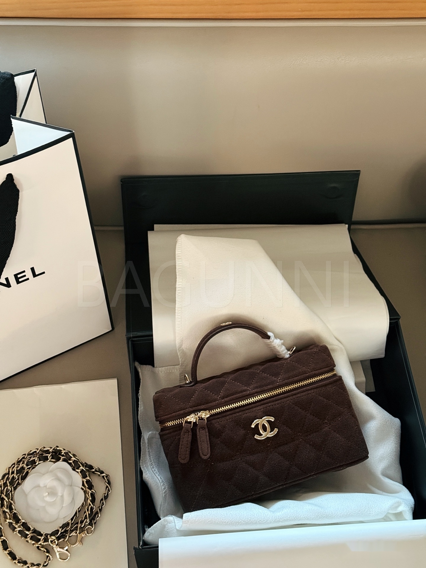 샤넬 스웨이드 탑핸들 베니티 백