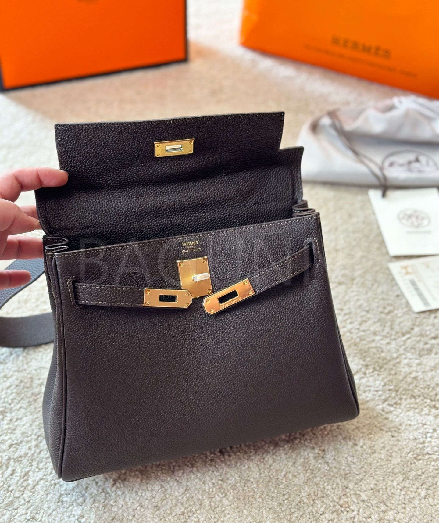 에르메스 버킨 토트백입니다. 가죽 특유의 질감이 자연스럽게 살아 있으며 브랜드 특유의 분위기를 편하게 즐기기 좋습니다.