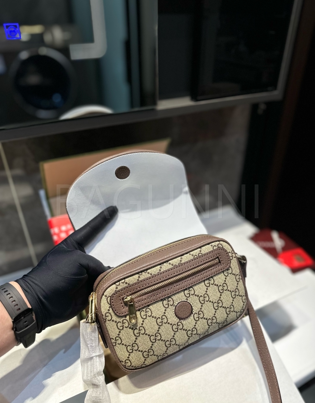 구찌 오피디아 메신저백입니다. 가죽 특유의 질감이 자연스럽게 살아 있으며 브랜드 특유의 분위기를 편하게 즐기기 좋습니다.