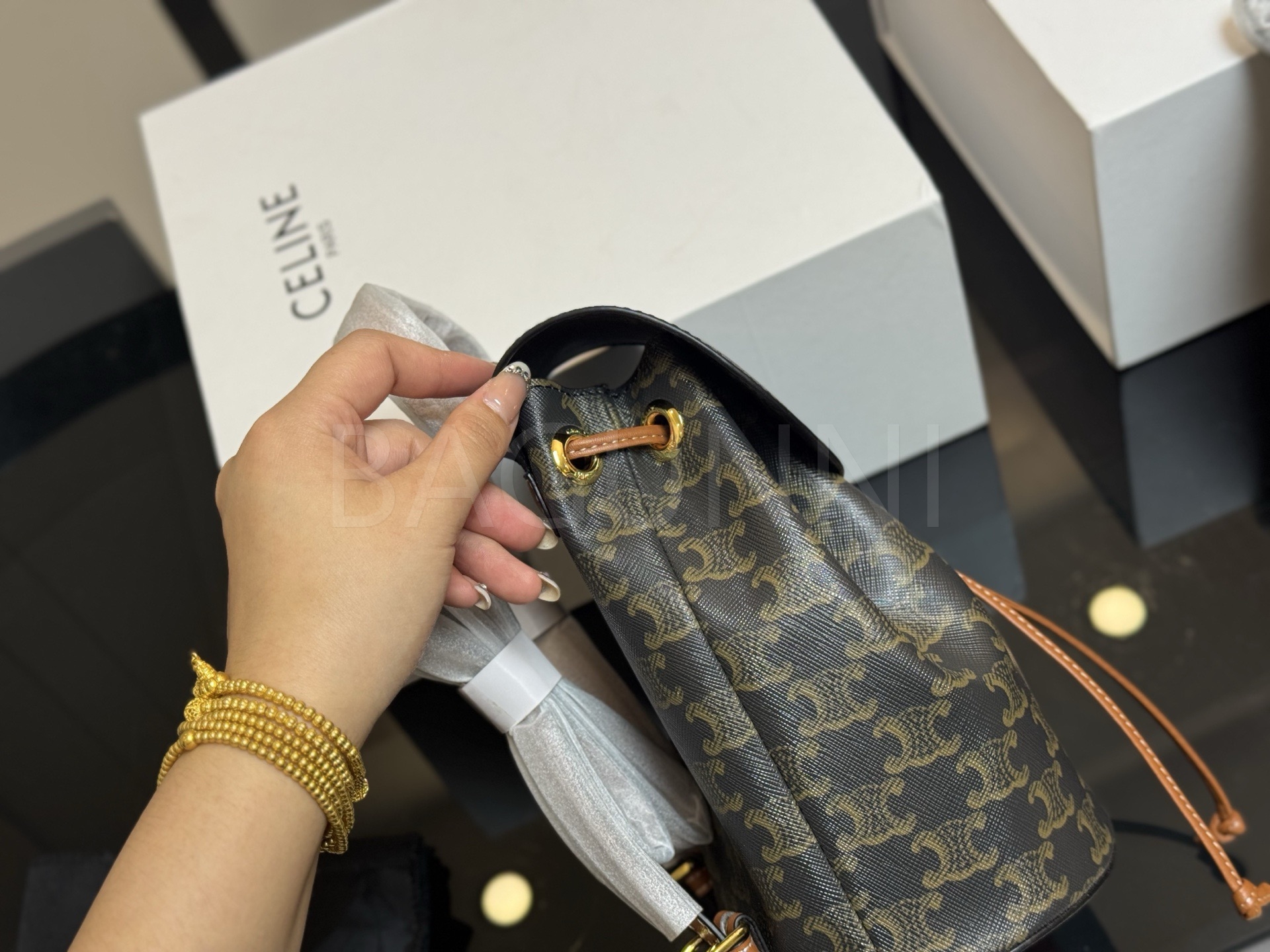 셀린느 트리옹프 드로스트링 백팩은 세련된 실루엣을 담은 아이템입니다.