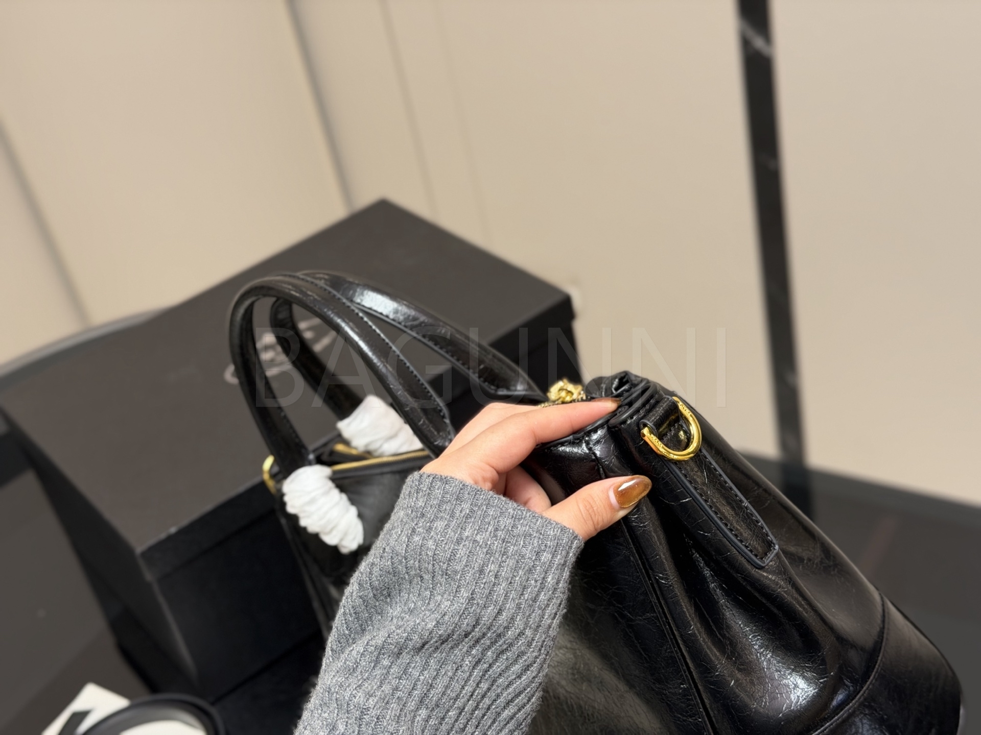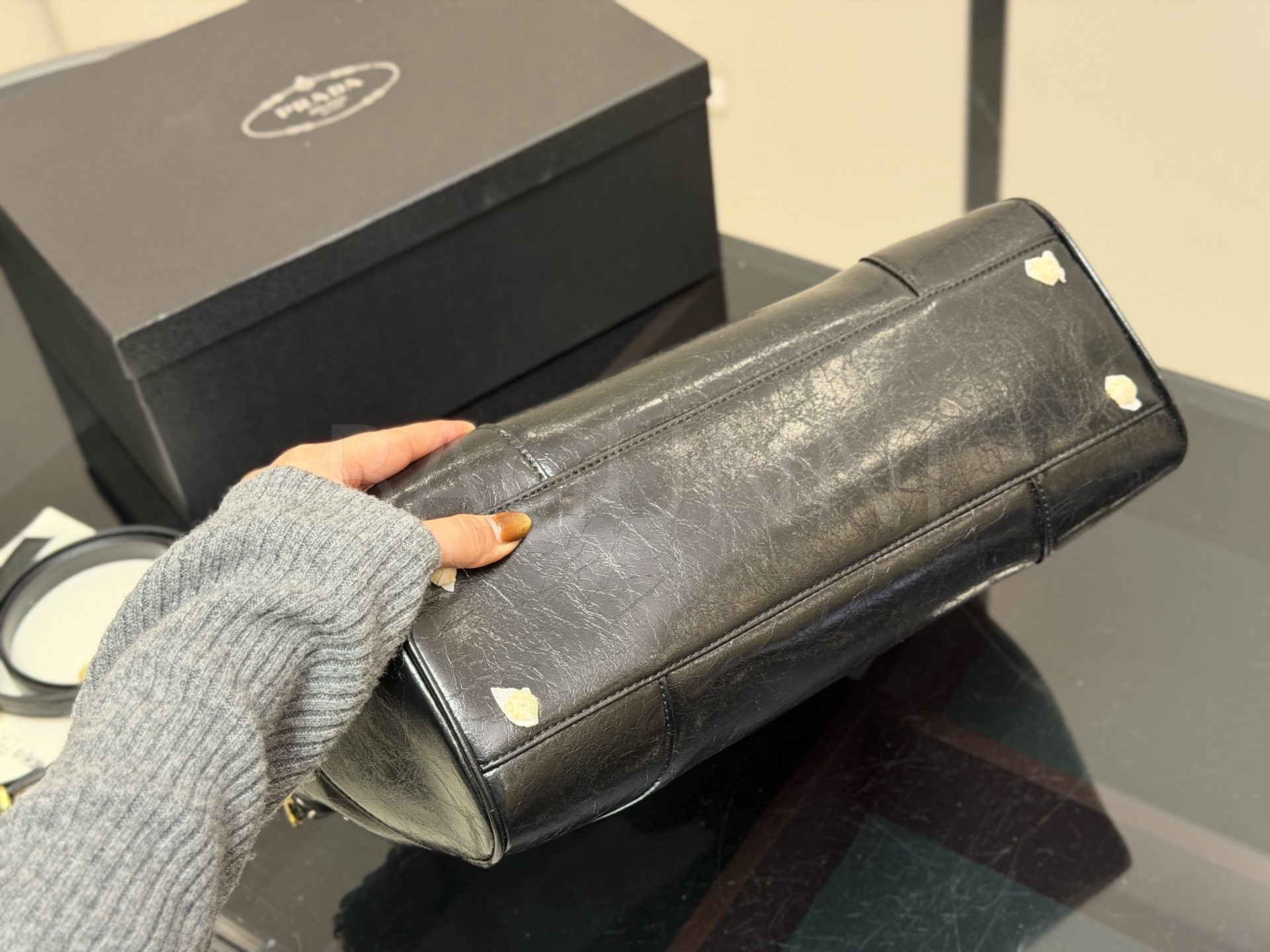 프라다 갤러리아백입니다. 캔버스 특유의 질감이 자연스럽게 살아 있으며 브랜드 특유의 분위기를 편하게 즐기기 좋습니다.